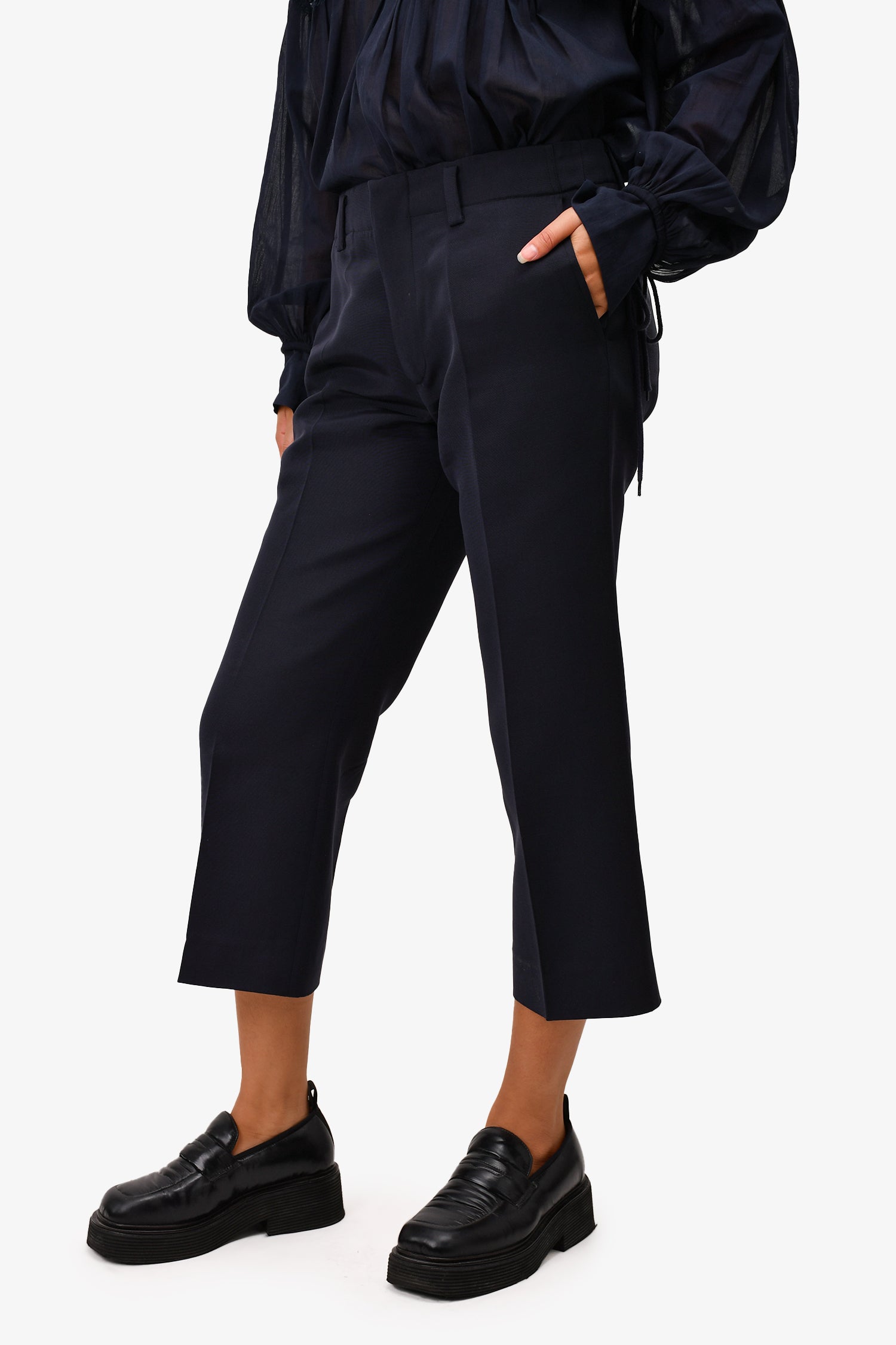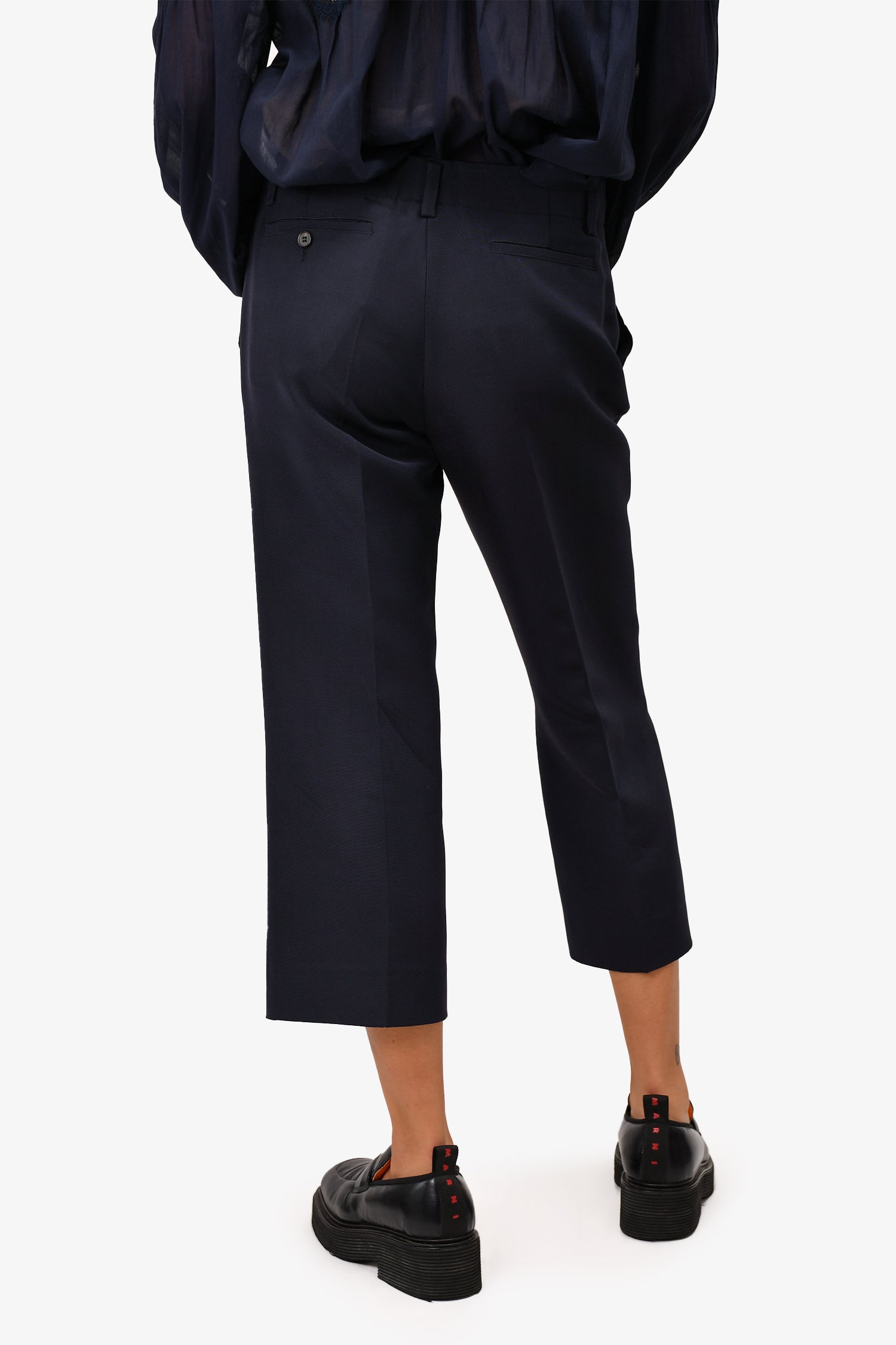 Marni Navy Blue Pleated Virgin Wool/Silk Cropped Trousers Size 40