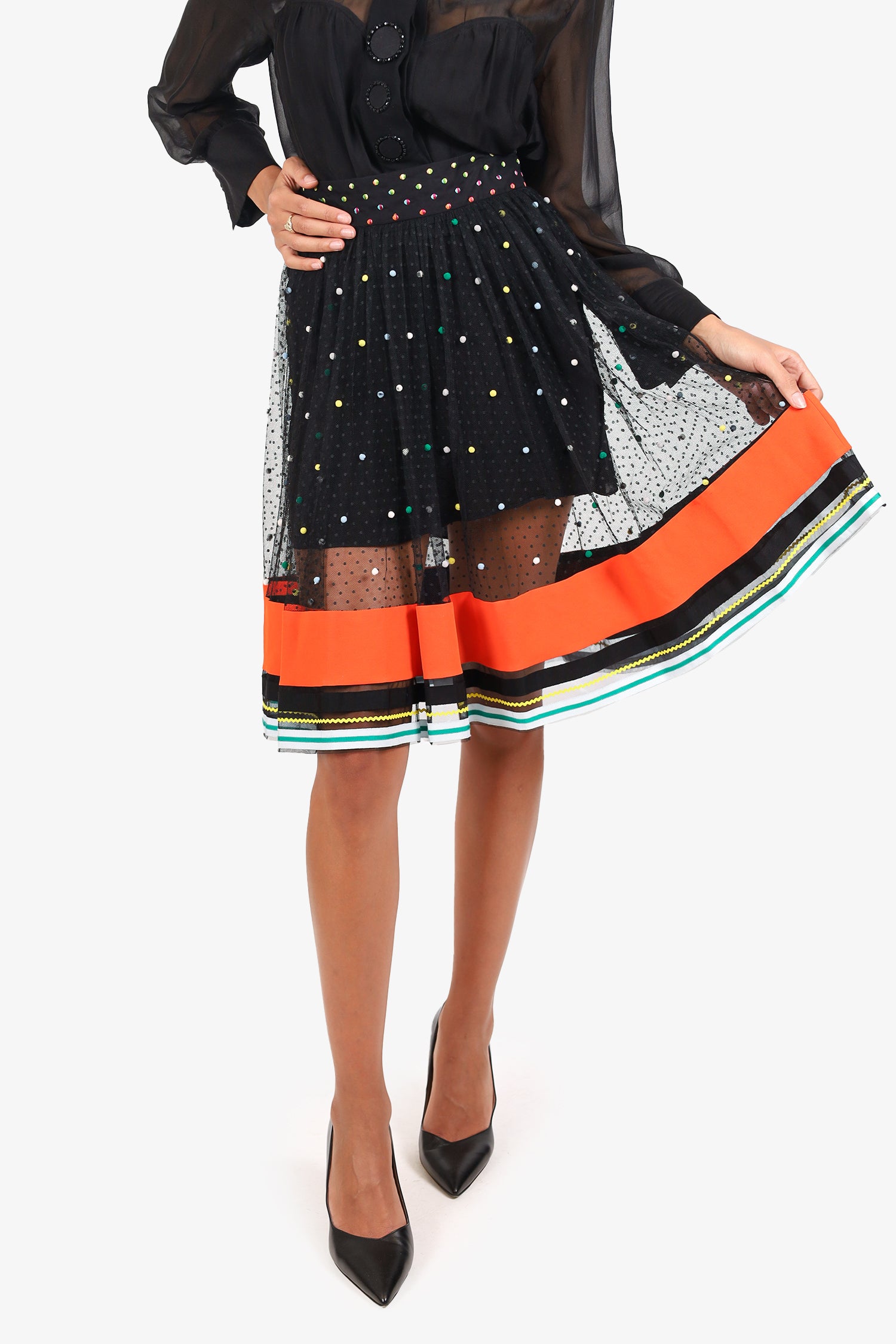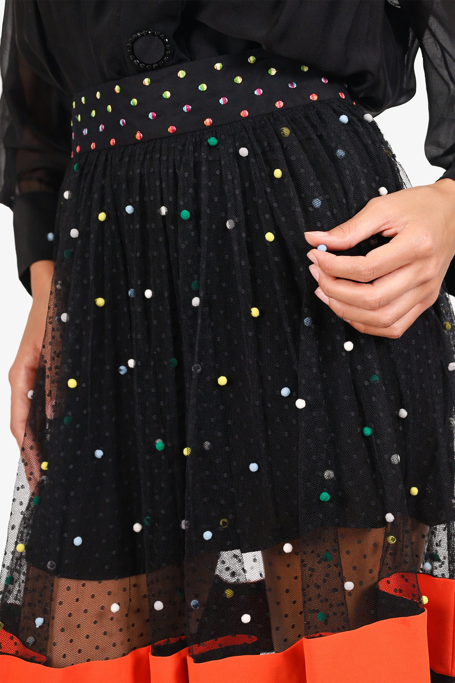Refresh availabilityMary Katrantzou Black/Multicolour Polka Dot Pom Pom Mini Skirt. Slip-on. Rear zip and hook closure. Lined interior. Tonal stitching.