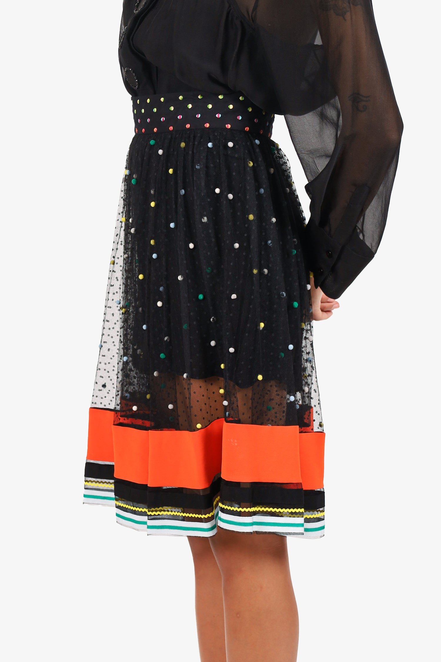 Mary Katrantzou Black/Multicolour Polka Dot Pom Pom Mini Skirt Size 4