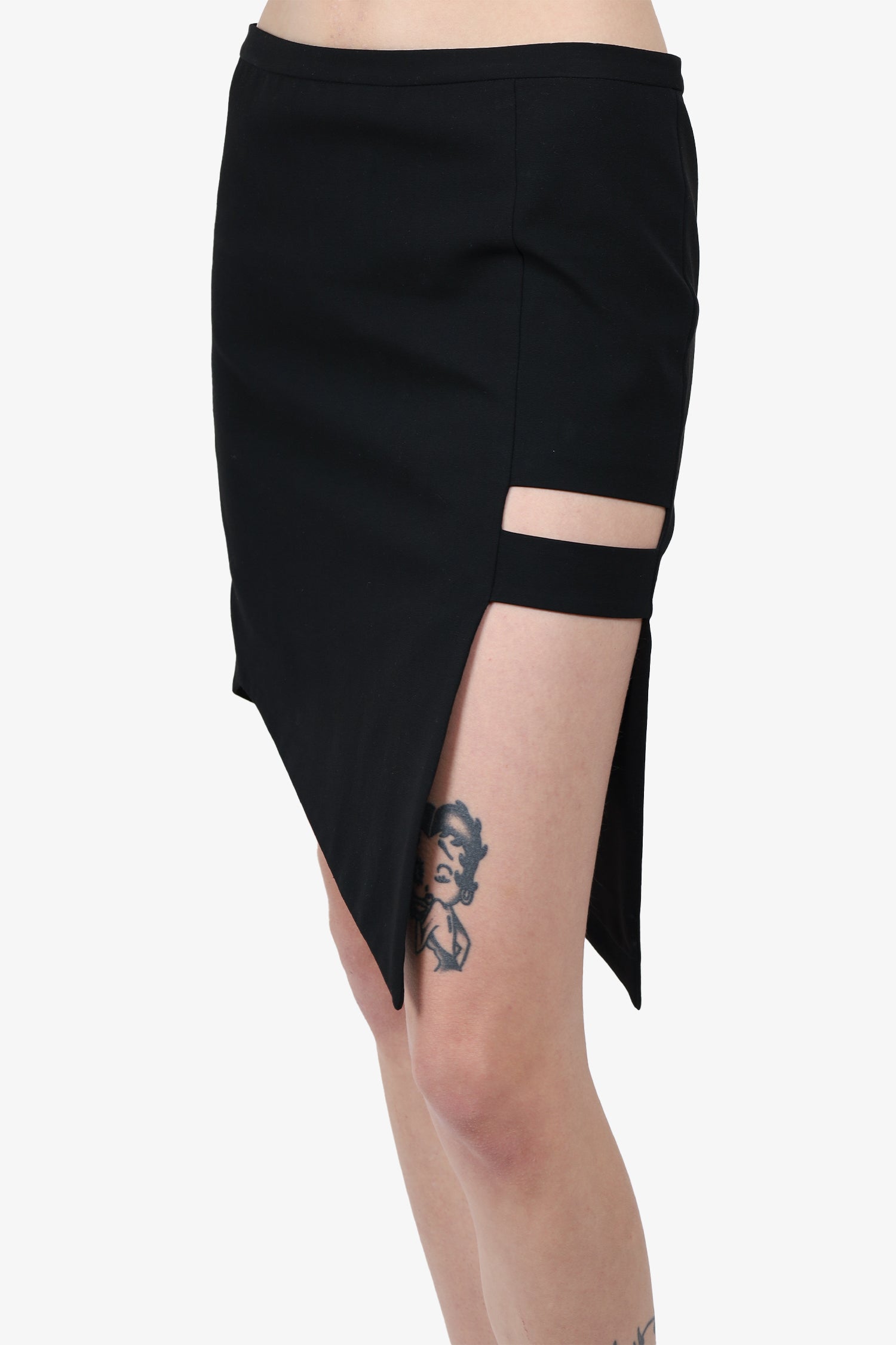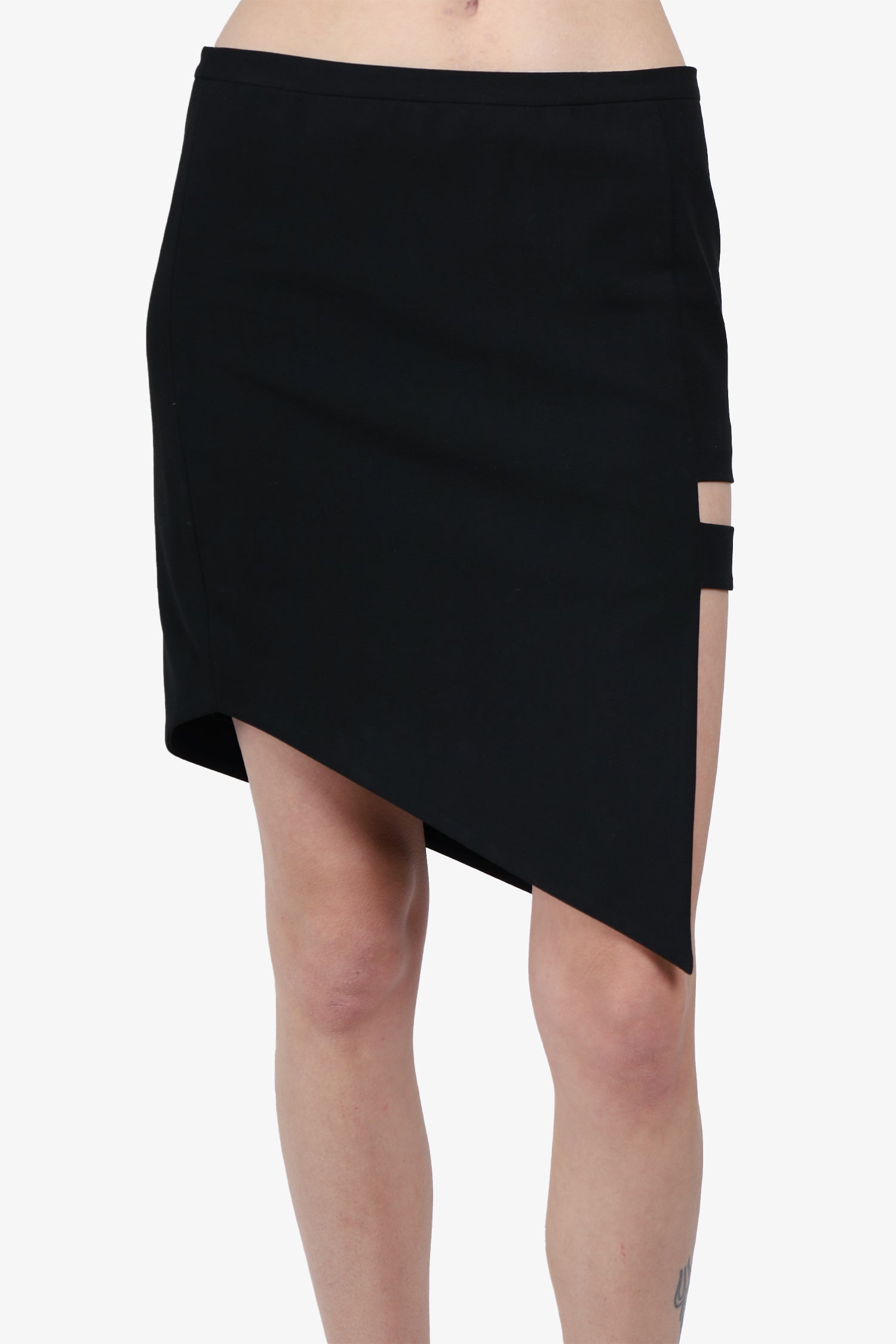 Refresh availabilityMason Black Asymmetrical Mini Skirt. Rear zip closure. Lined. Tonal stitching.
