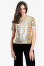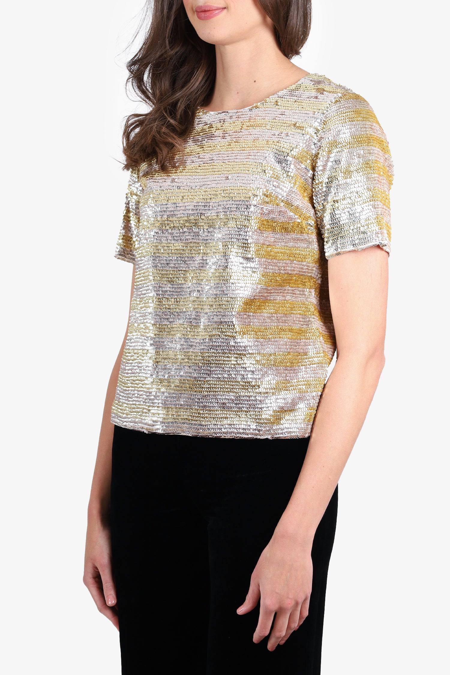 Massimo Alba Yellow/Pink Gold Stripes Sequin Short Sleeves Size M (As Is)