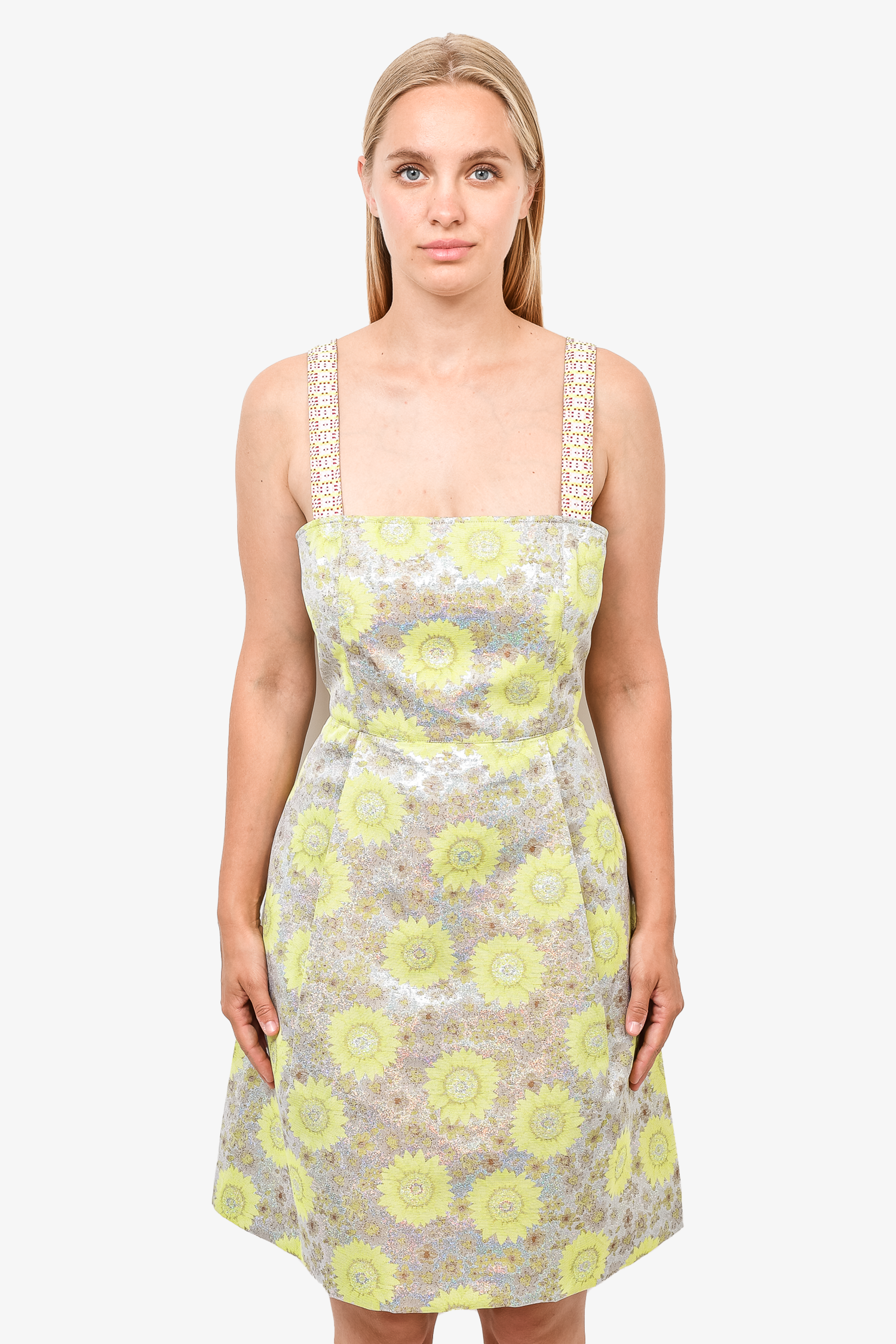 Refresh availabilityMax & Co. Green/Silver Metallic Floral Tank Dress. Square neck. Sleeveless. Rear zip closure. Lined. Tonal stitching.