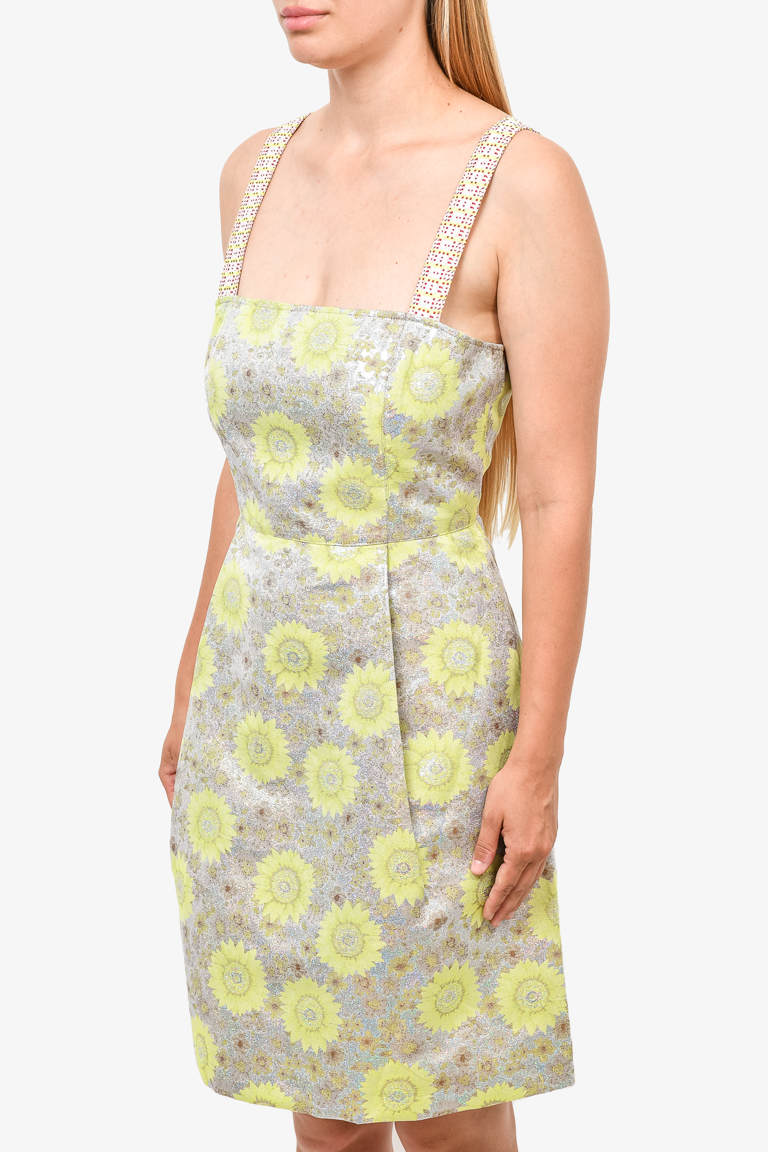 Max & Co. Green/Silver Metallic Floral Tank Dress Size 8