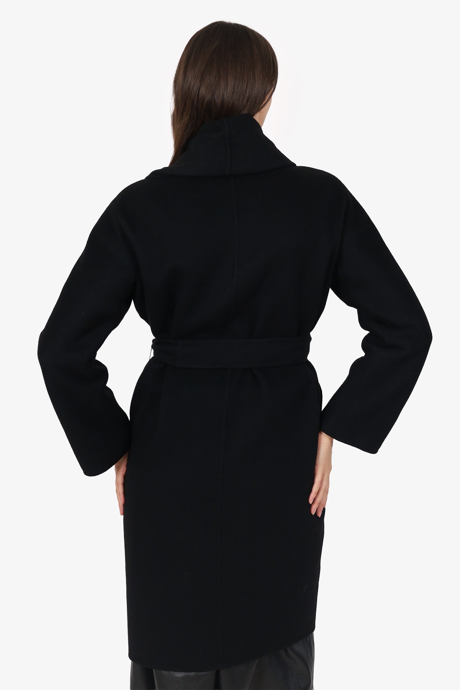 Max Mara Black Cashmere Long Belted Coat Size 12