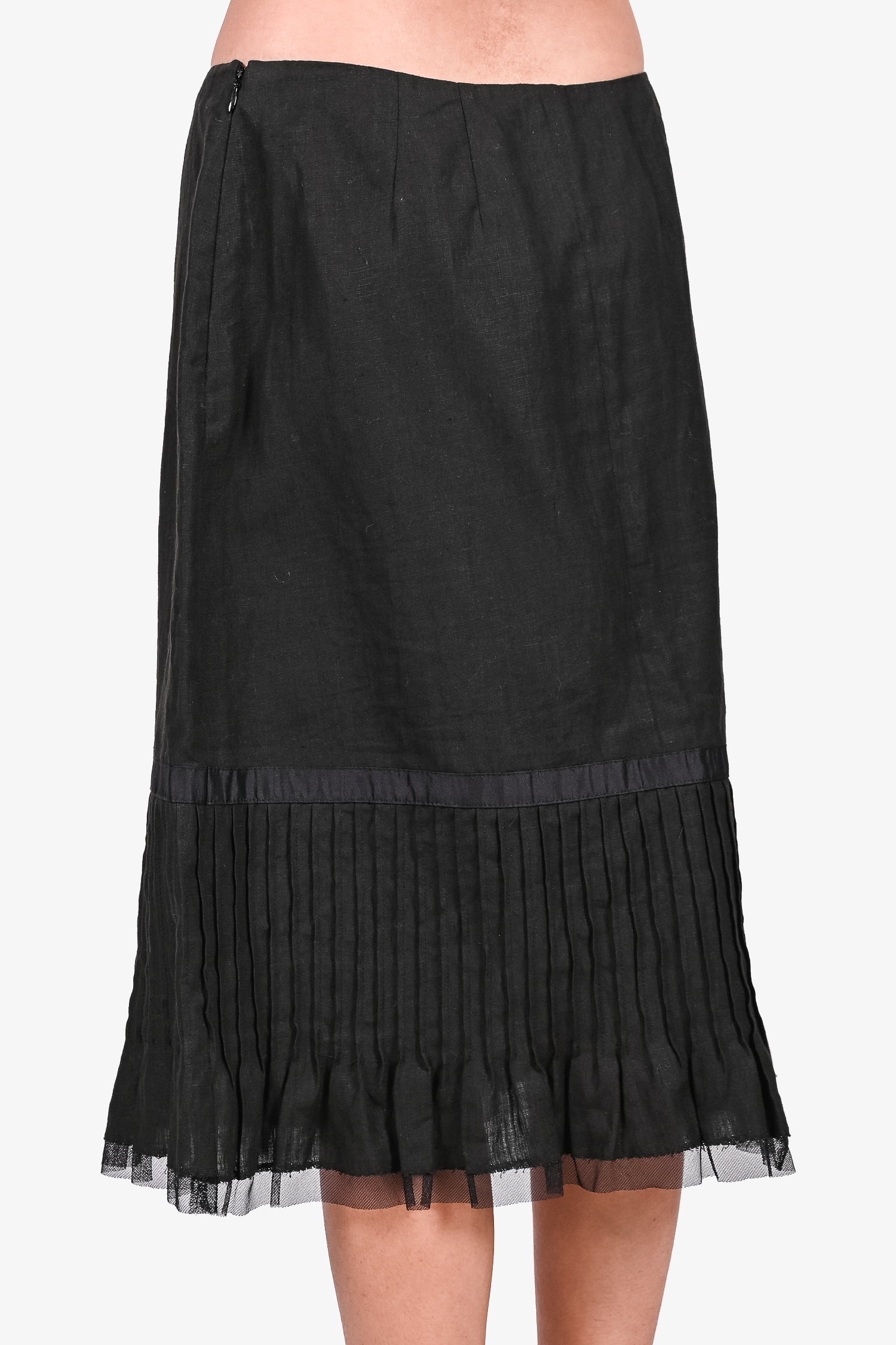 Refresh availabilityMax Mara Black Linen Pleated Skirt. Side zip and hook closure. Unlined. Tonal stitching.