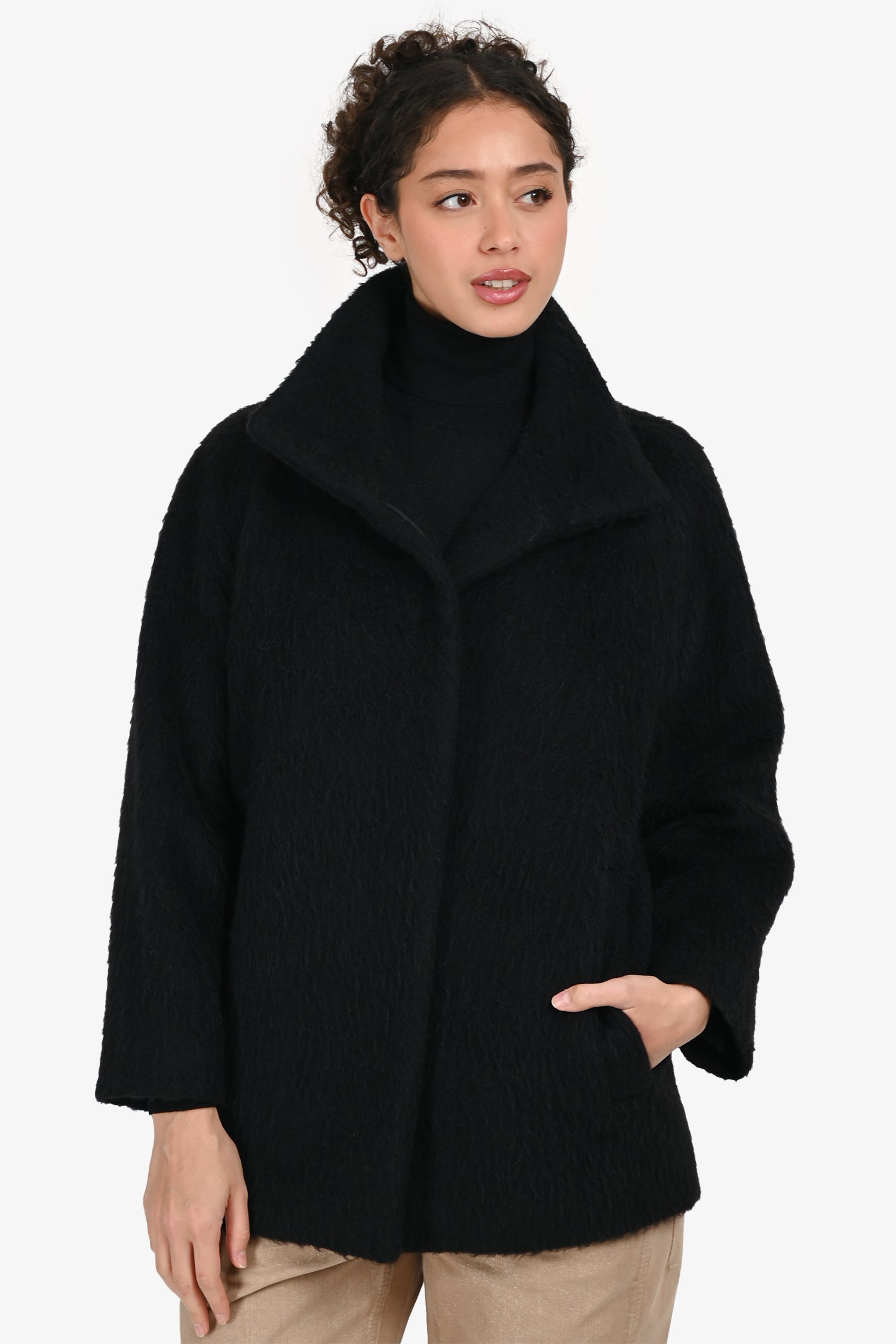 Refresh availabilityMax Mara Black Single-Breasted Coat. Front button closure. Stand collar. 2 exterior slip pockets. Fully lined. Tonal stitching.