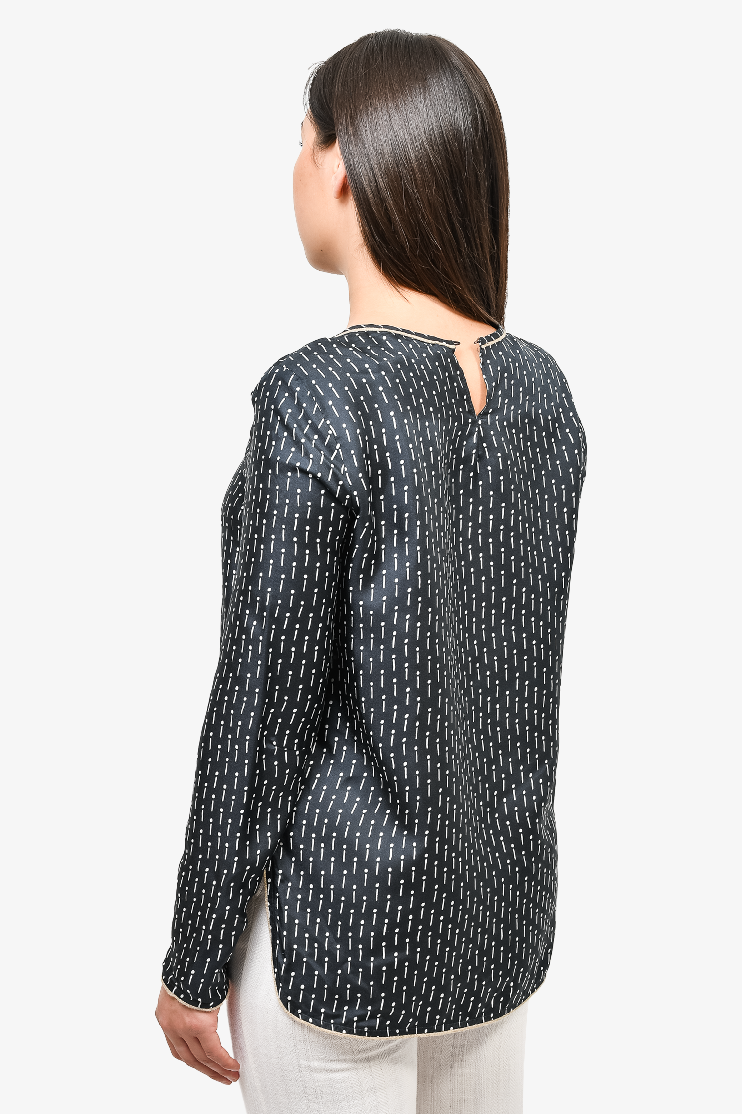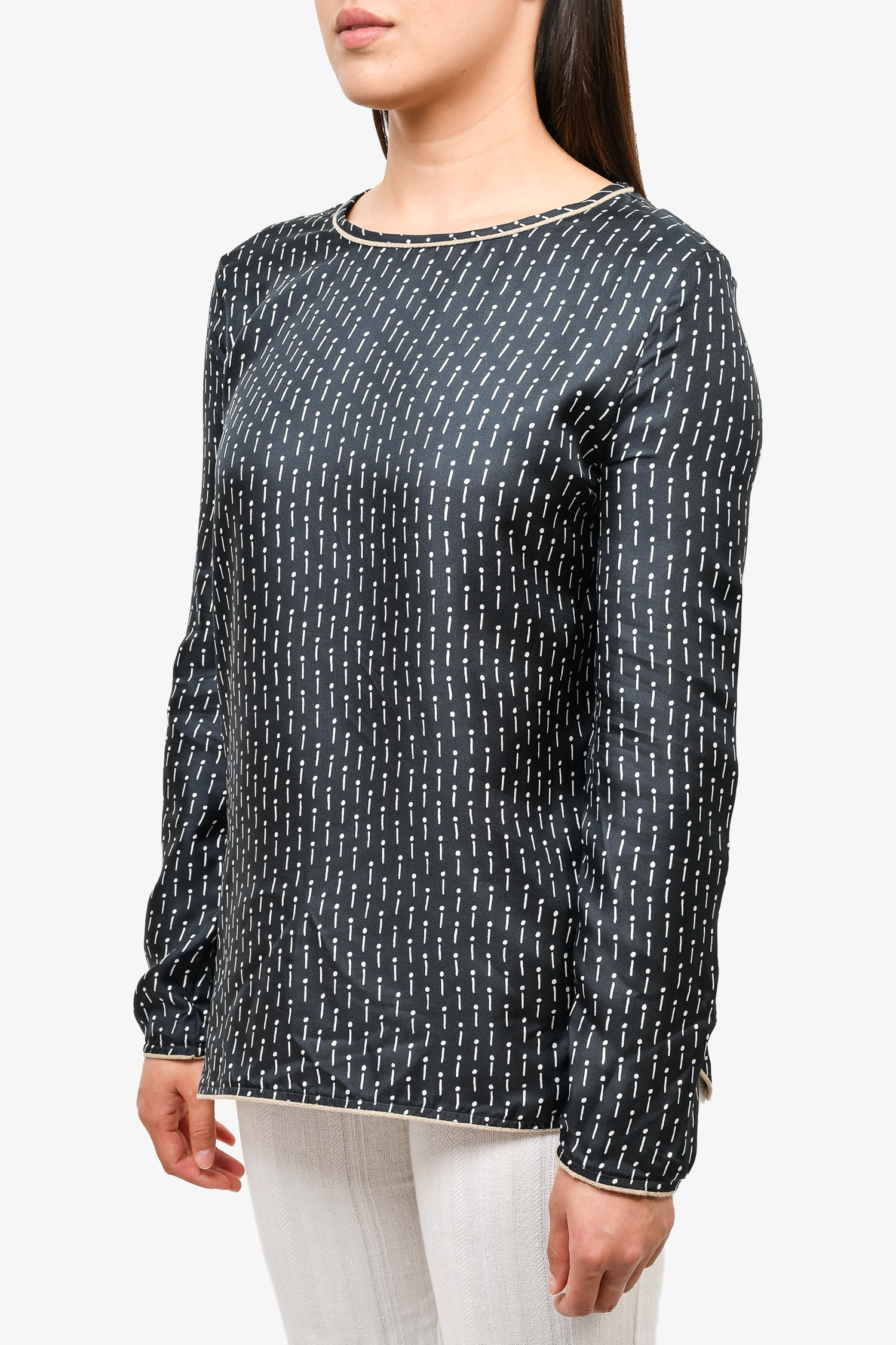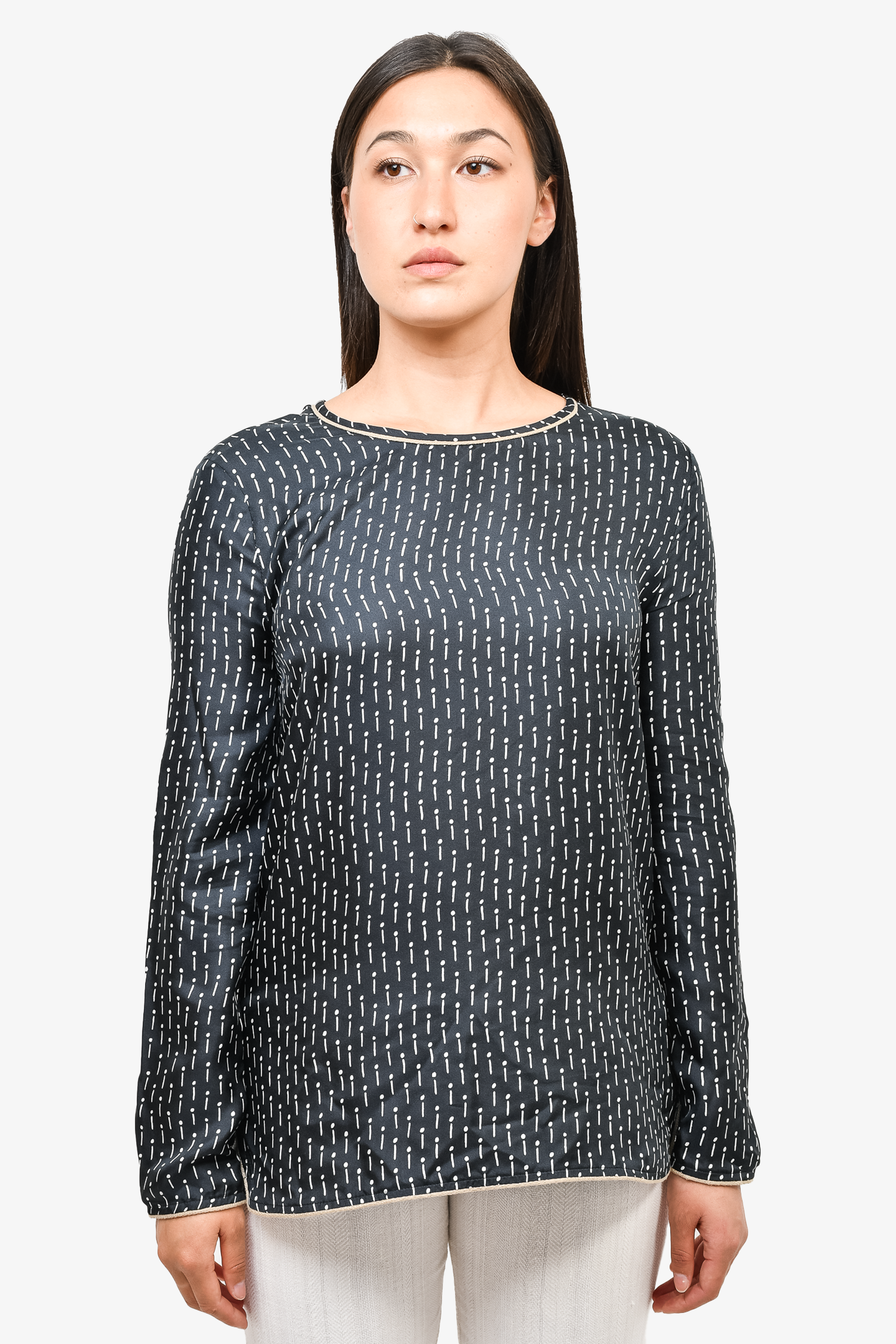 Refresh availabilityMax Mara Black/White Patterned Silk Long-Sleeved Blouse. Round neckline. Tonal stitching.