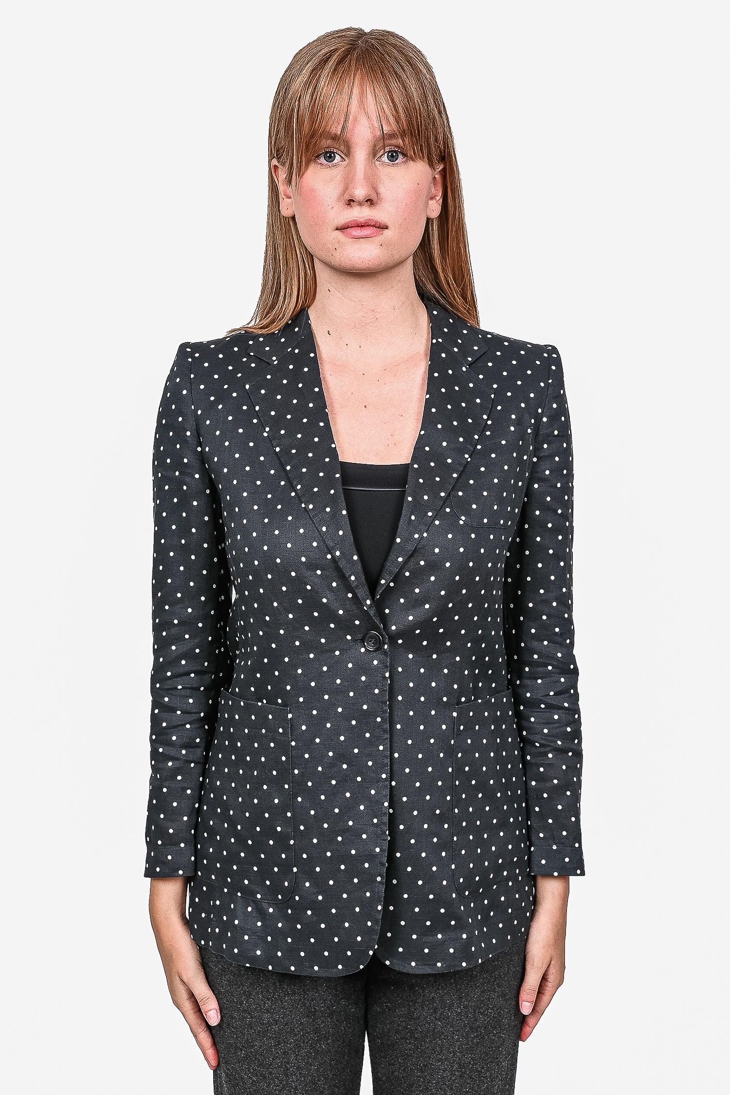 Refresh availabilityMax Mara Black/White Polka Dot Blazer with Shoulder Pads. Single front button-up closure. Front pockets. Unlined. Tonal stitching.