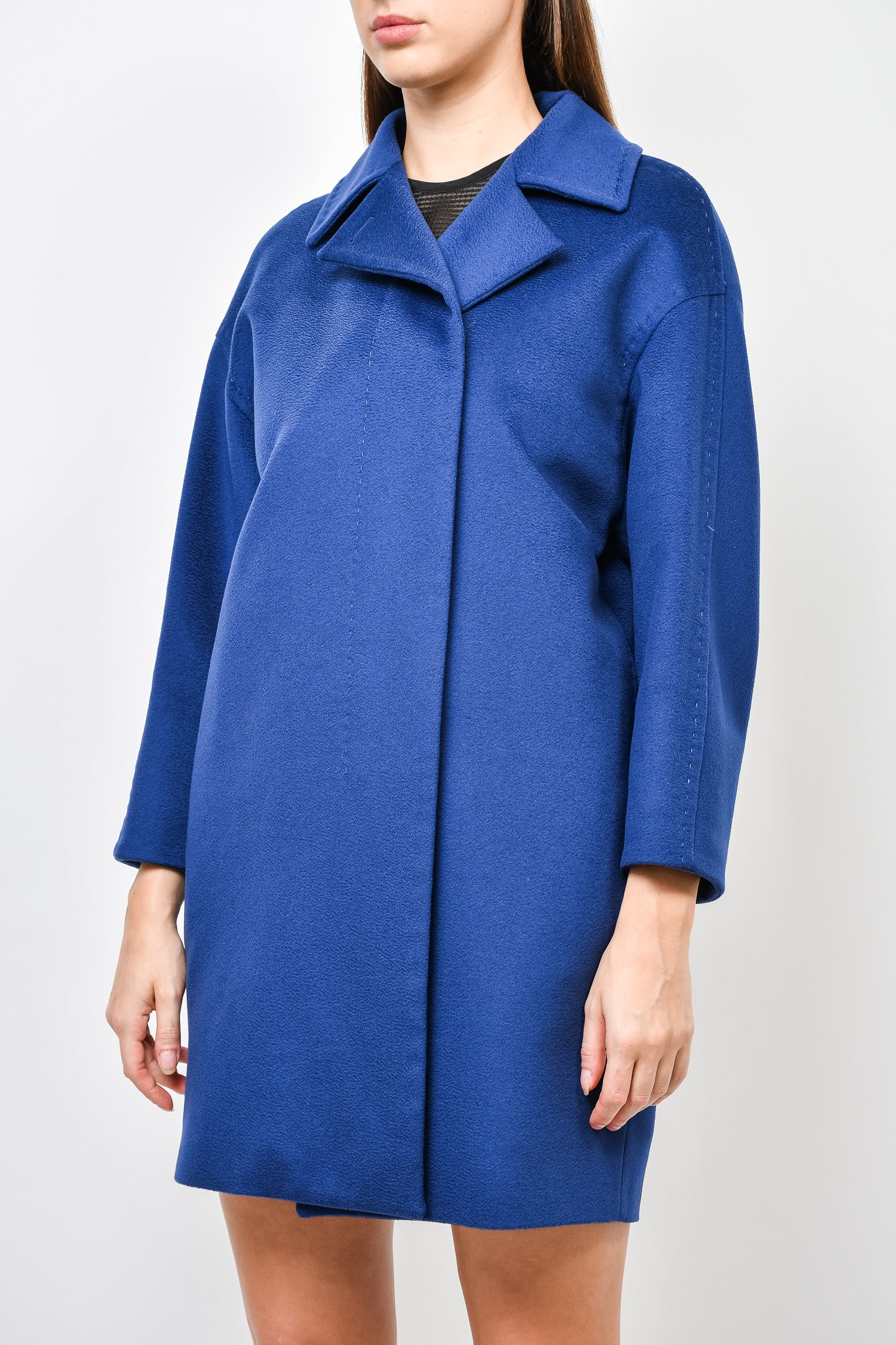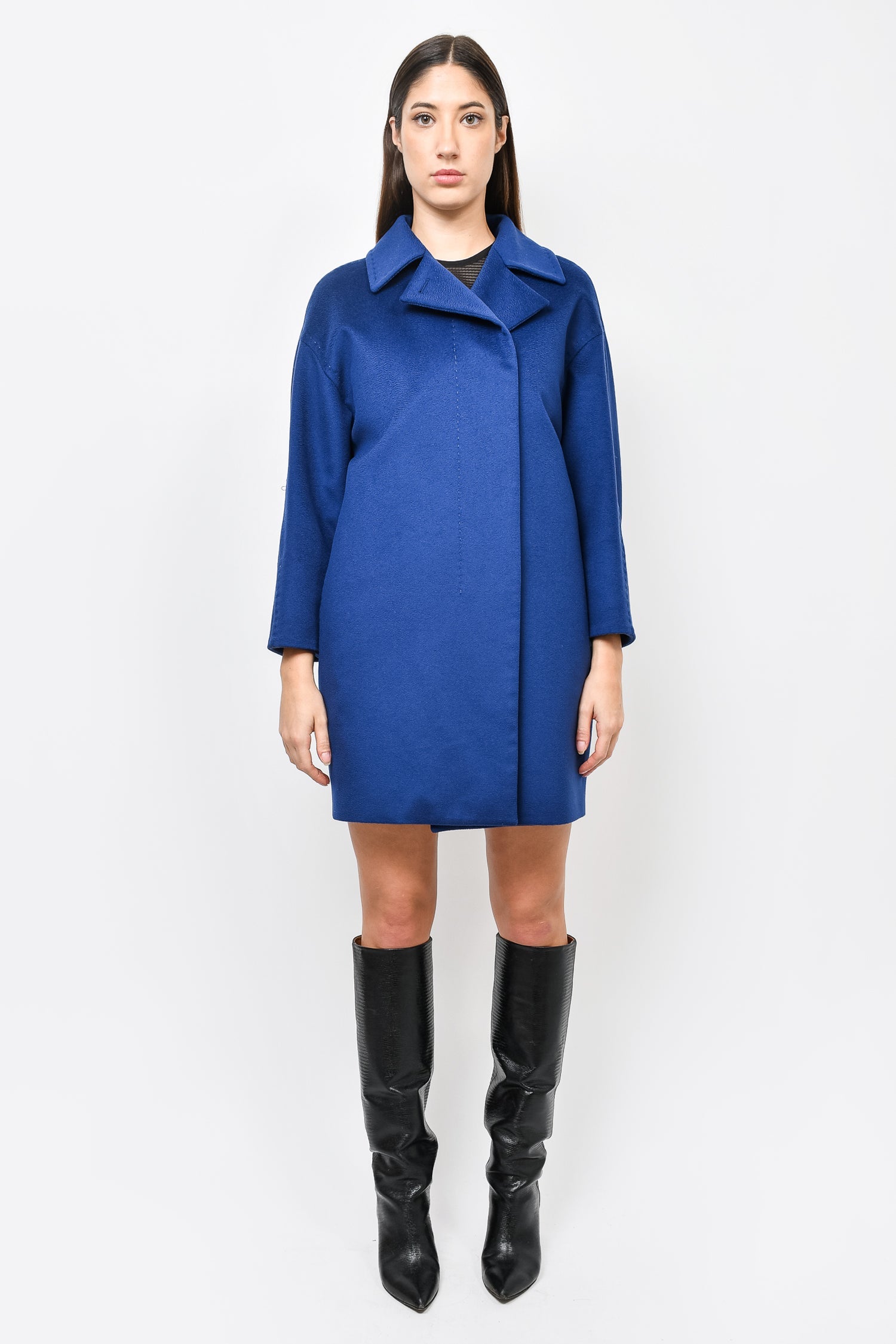 Refresh availabilityMax Mara Blue Wool Oversized Coat. Front button closure. Pointed collar and lapels. Blue interior lining. 2 exterior slip pockets. Tonal stitching.