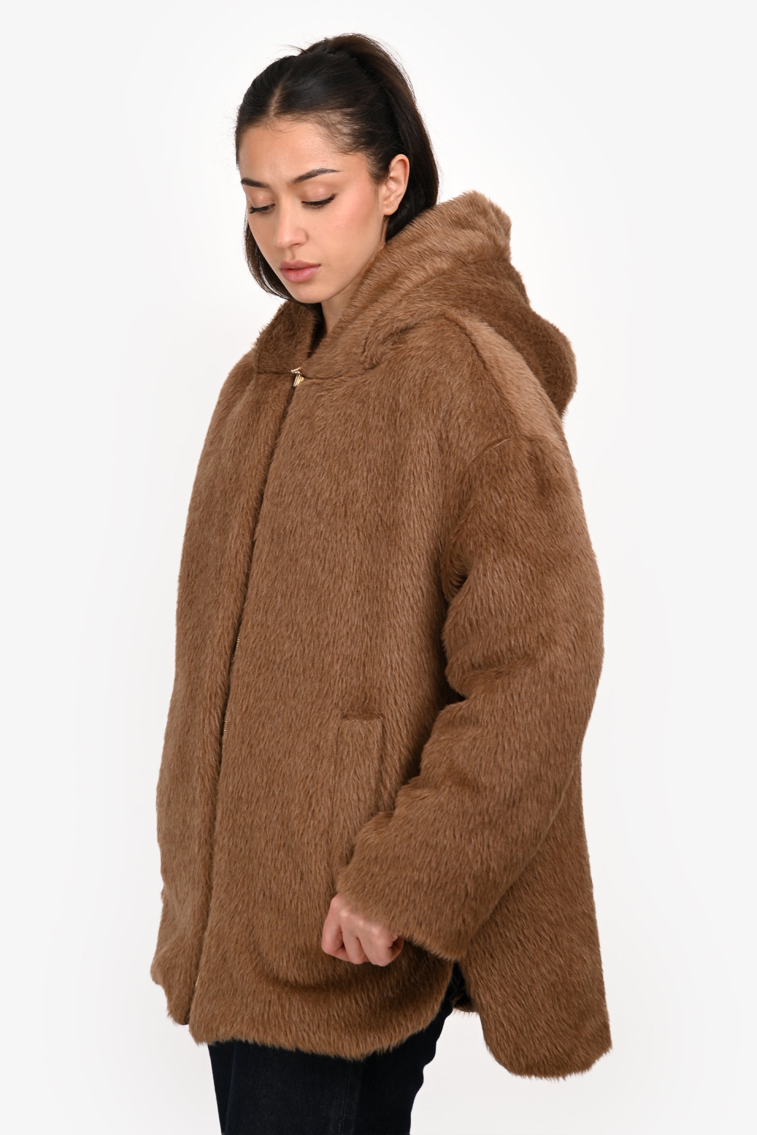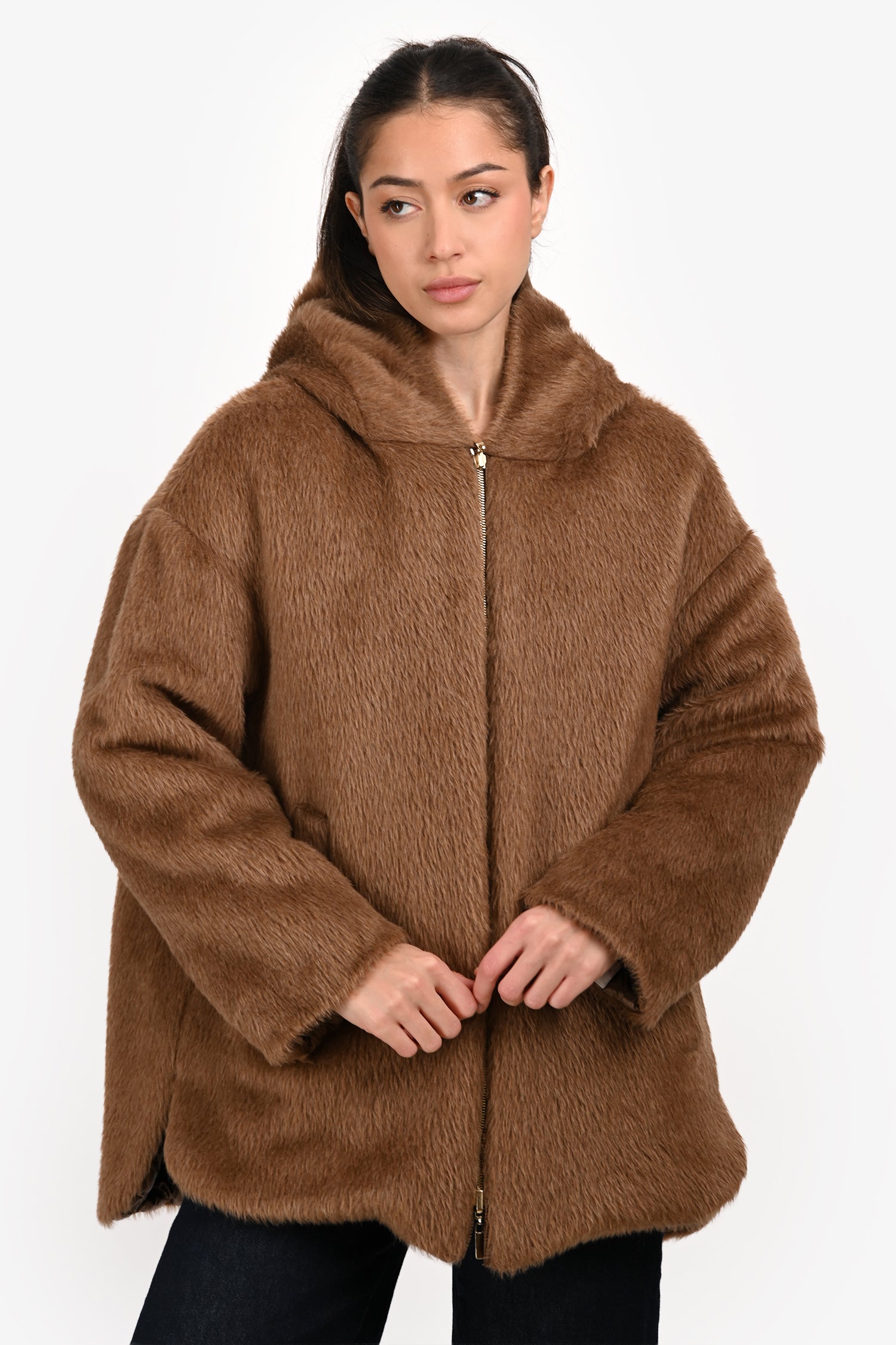 Refresh availabilityMax Mara Brown Alpaca/Wool Blend Reversible Nylon 'The Cube' Hooded Jacket. Front 2-way zip closures. 2 side slip pockets. Lined interior. Tonal stitching.