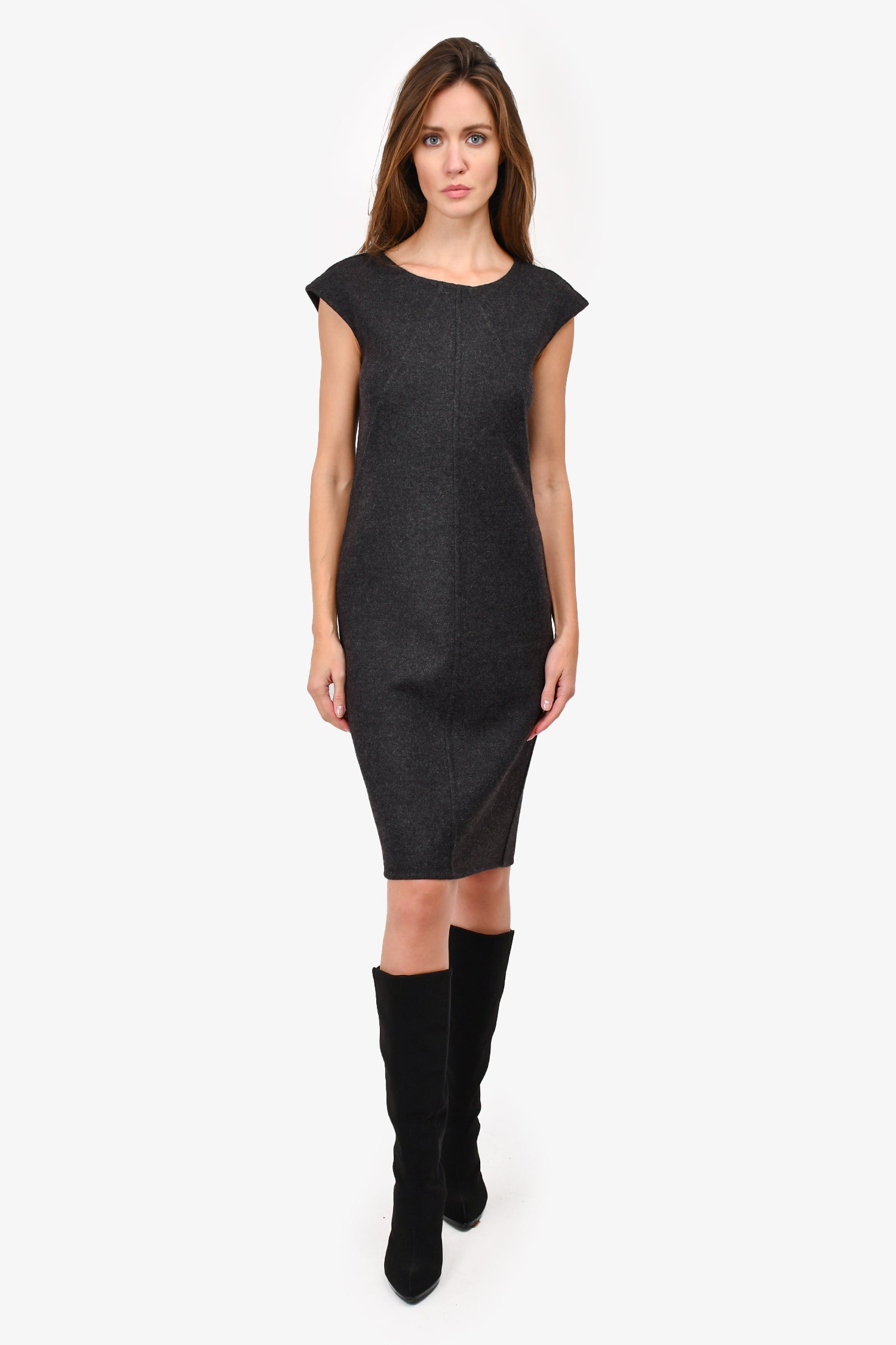 Max Mara Dark Grey Wool/Angora Cap Sleeve Shift Dress Size 8