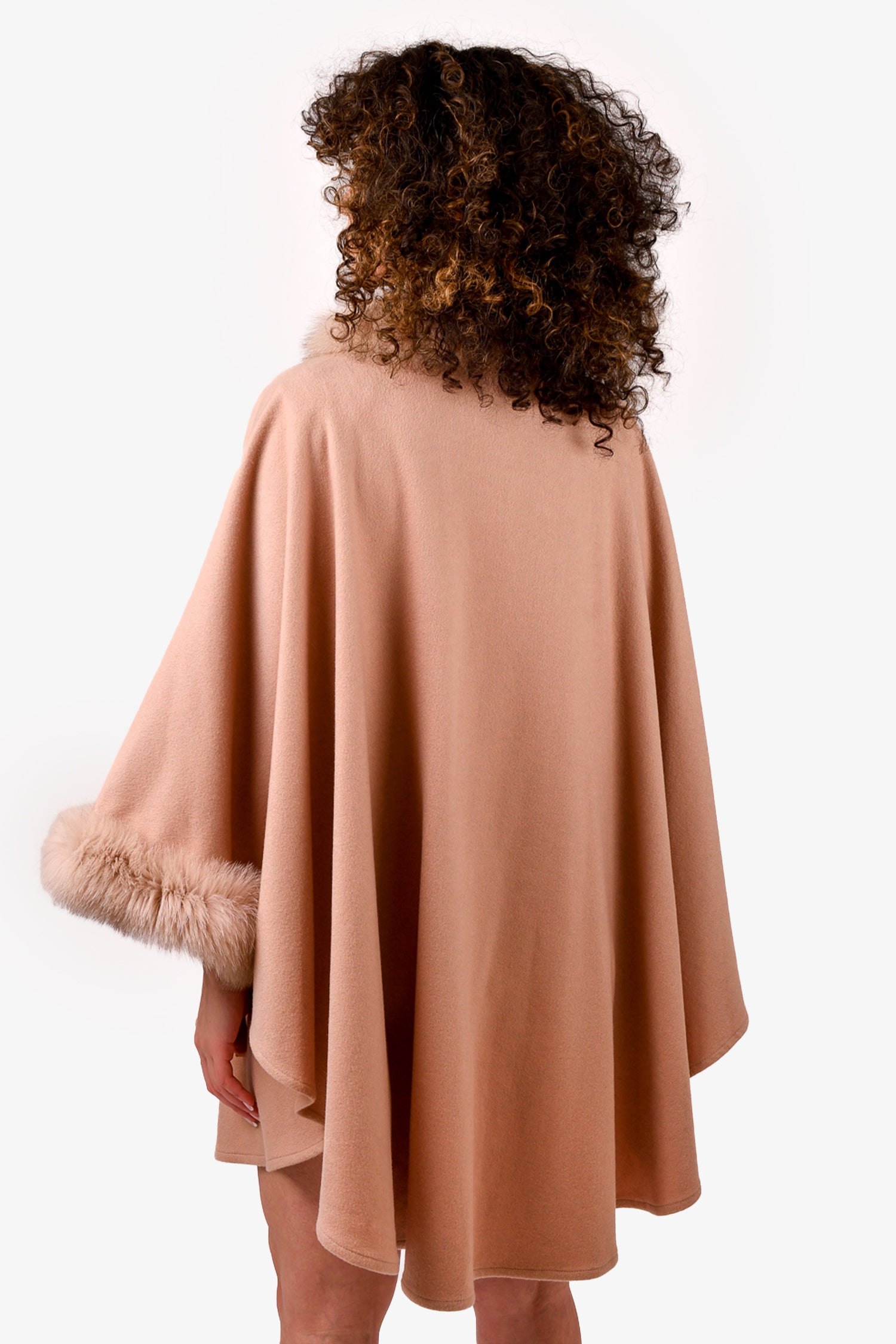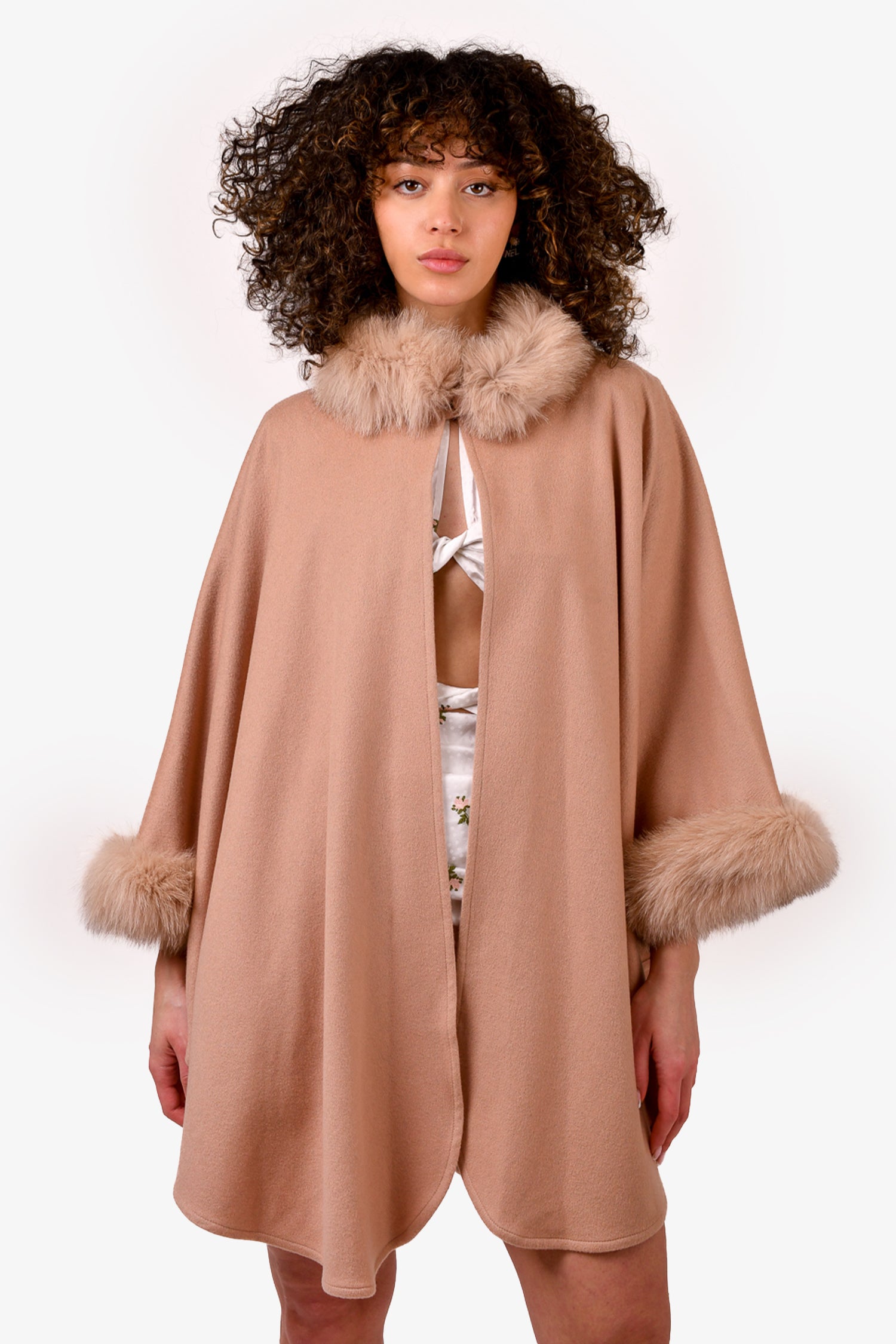 Max Mara Dusty Rose Cashmere Fox Trimmed Cape Size O/S