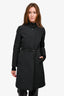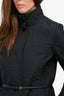 Max Mara Studio Black Floral Quilted Coat with Thin Leather Belt Size 8 US