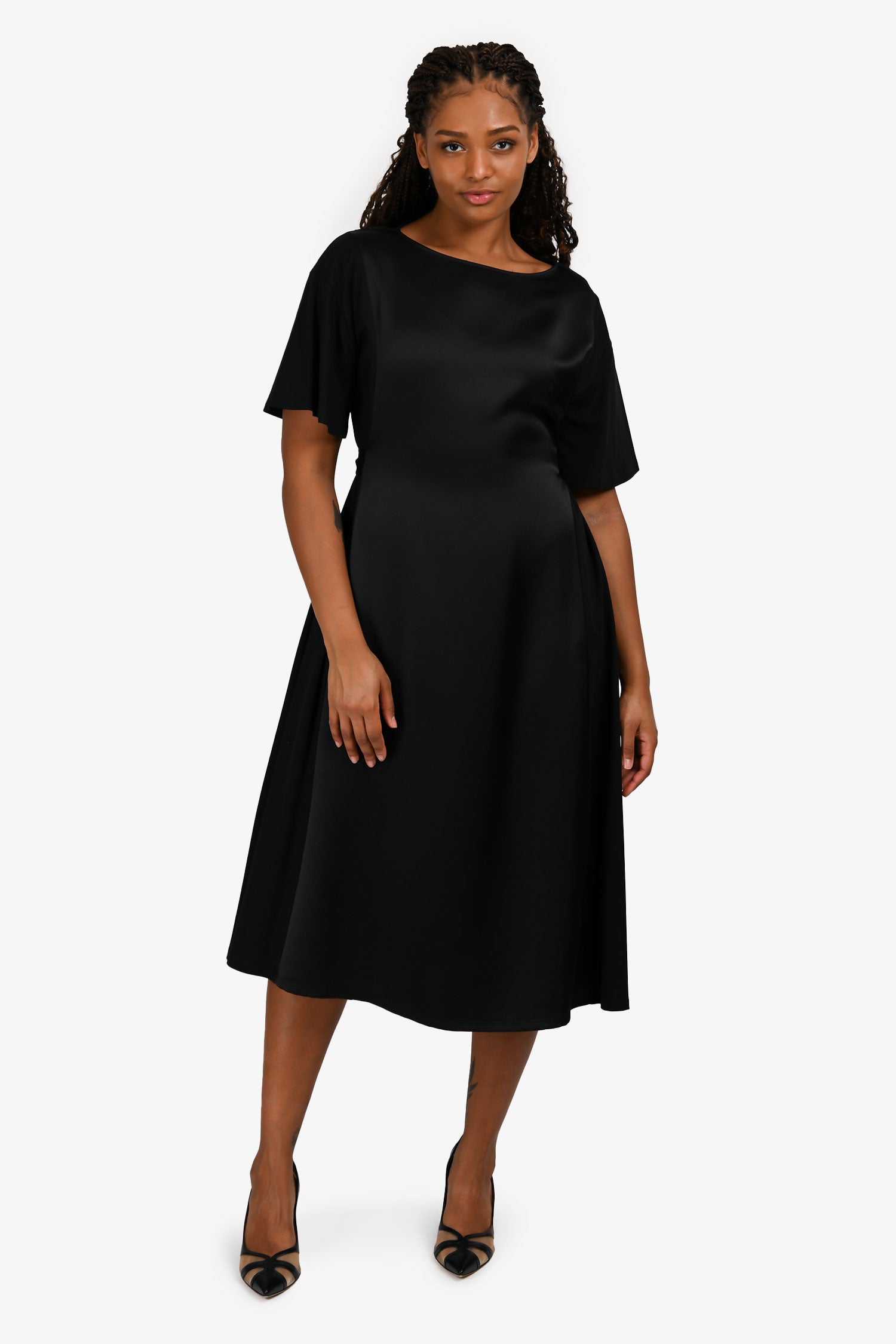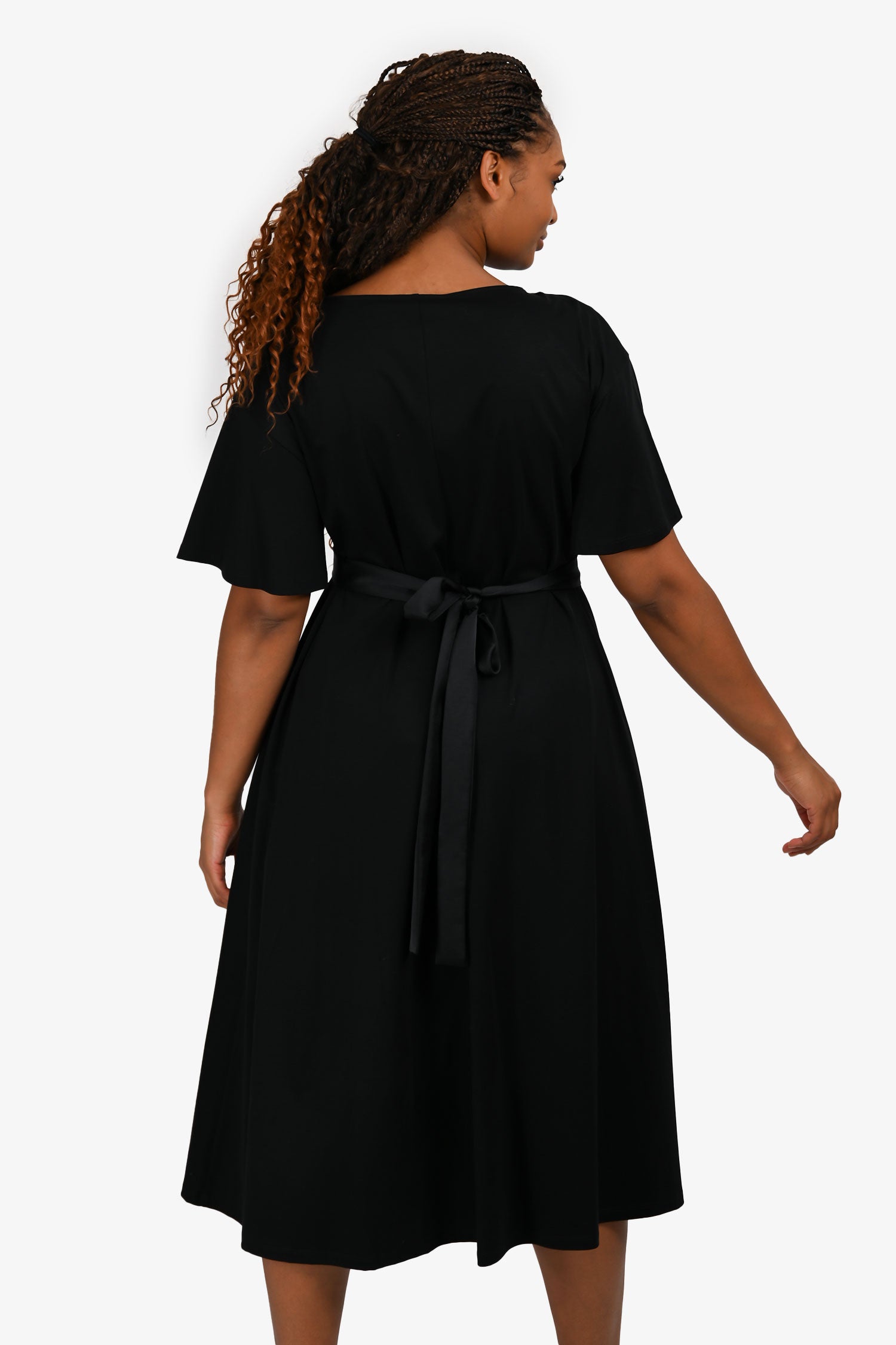 Refresh availabilityMax Mara The Weekend Black Jersey Short Sleeve Belted Midi Dress. Pull-on. Round neckline. Rear waist tie-up closure. Tonal stitching.