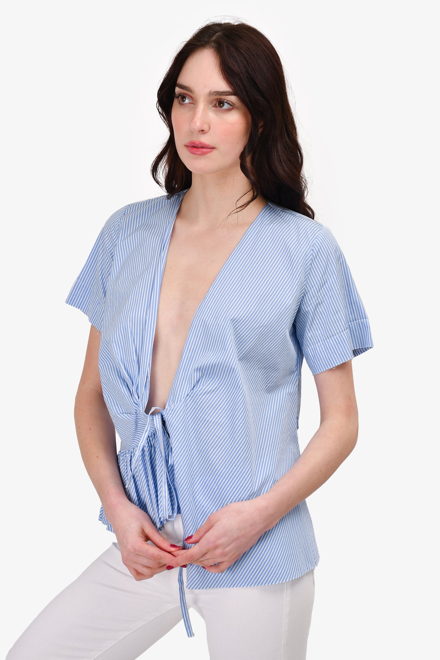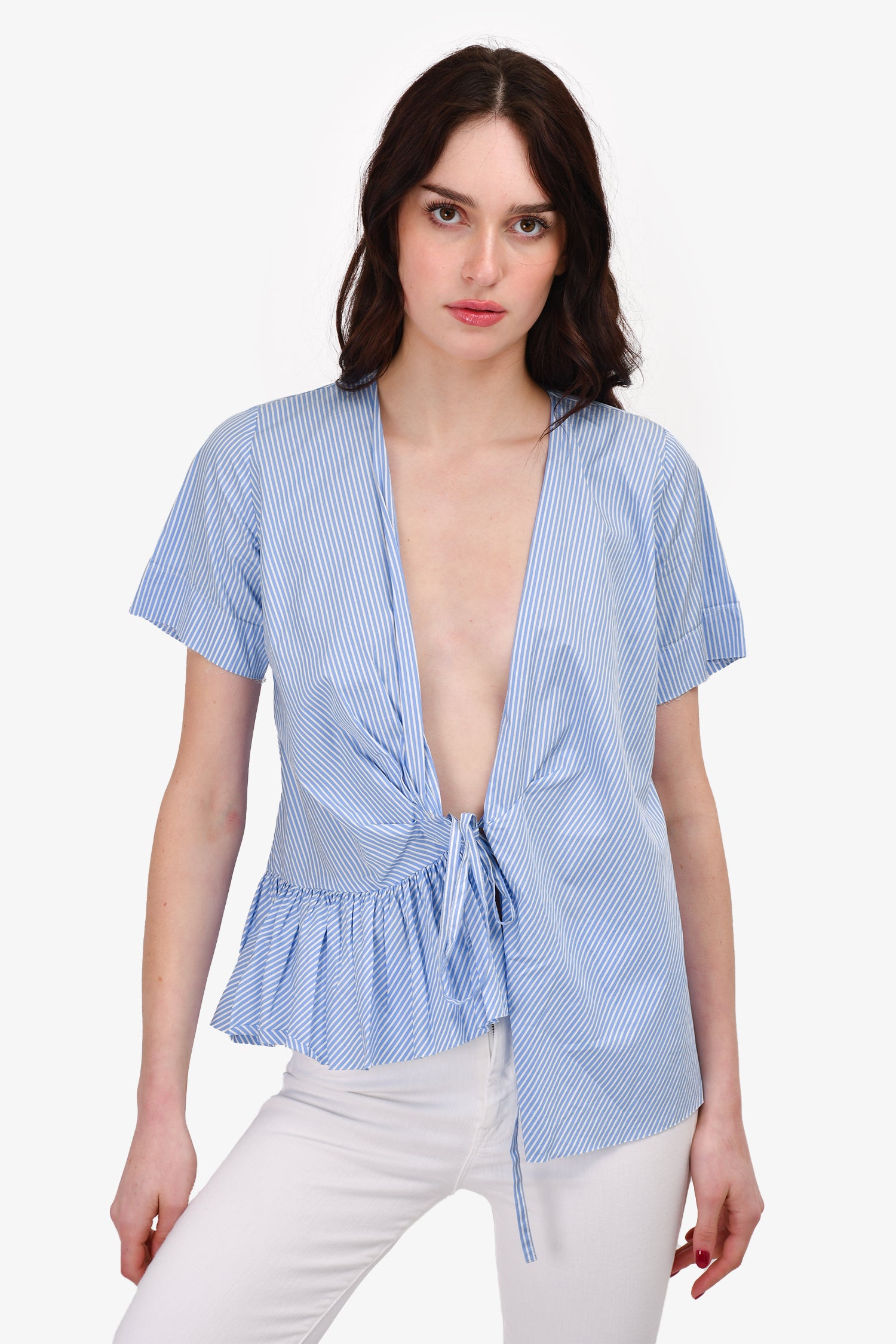 Refresh availabilityMax Mara The Weekend Blue/White Stripe Tie Top. Ruffled hem.