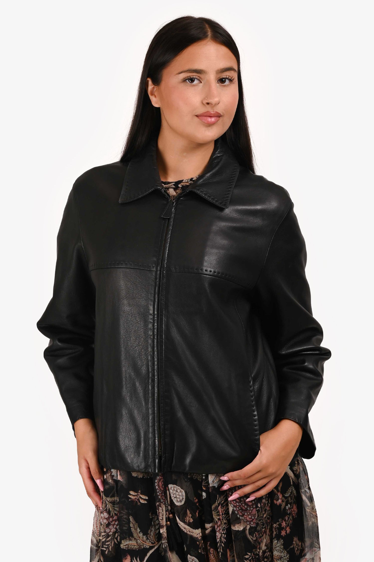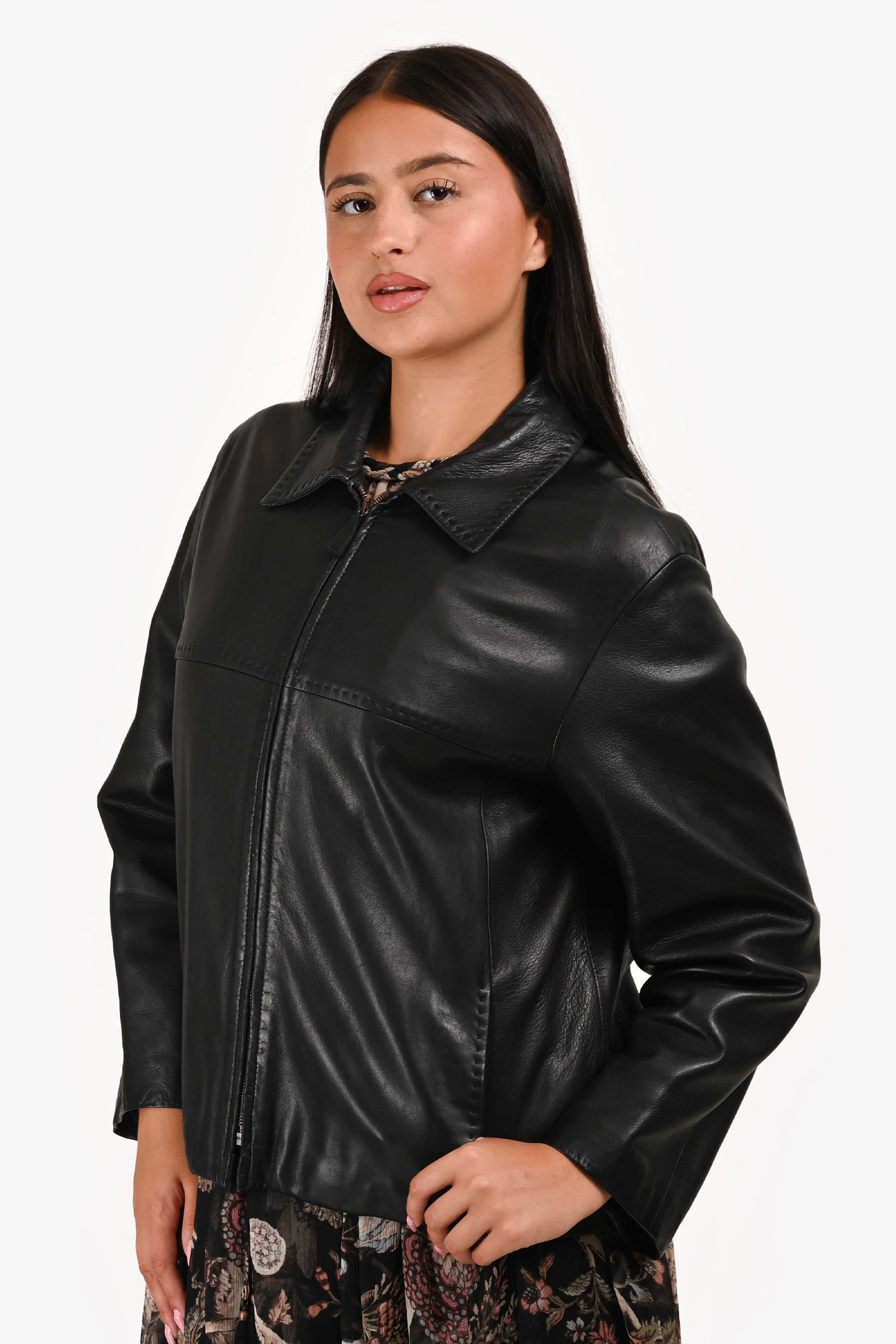 Refresh availabilityMax Mara Vintage Black Leather Jacket. Front zip closure. Front pockets. Lined.