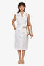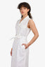 Max Mara White Cotton Button Down Belted Sleeveless Dress Size 8