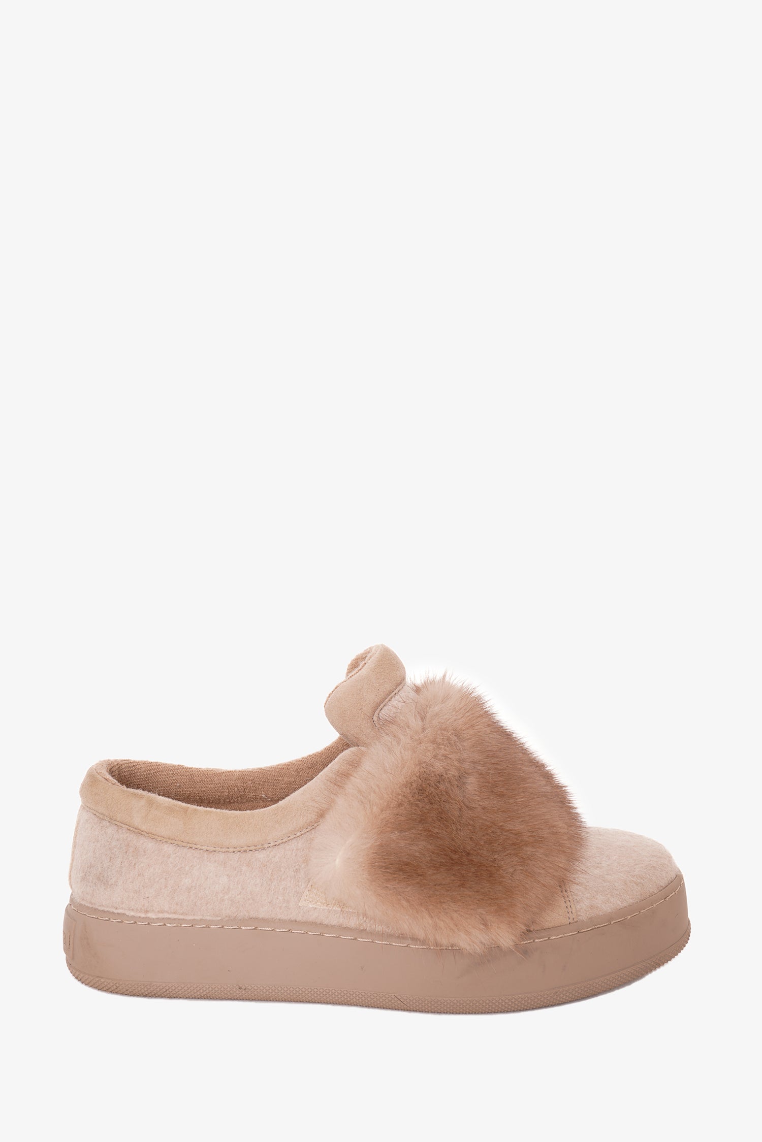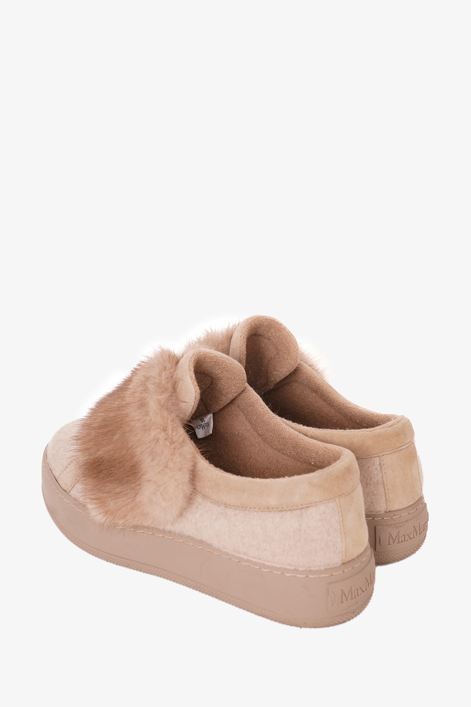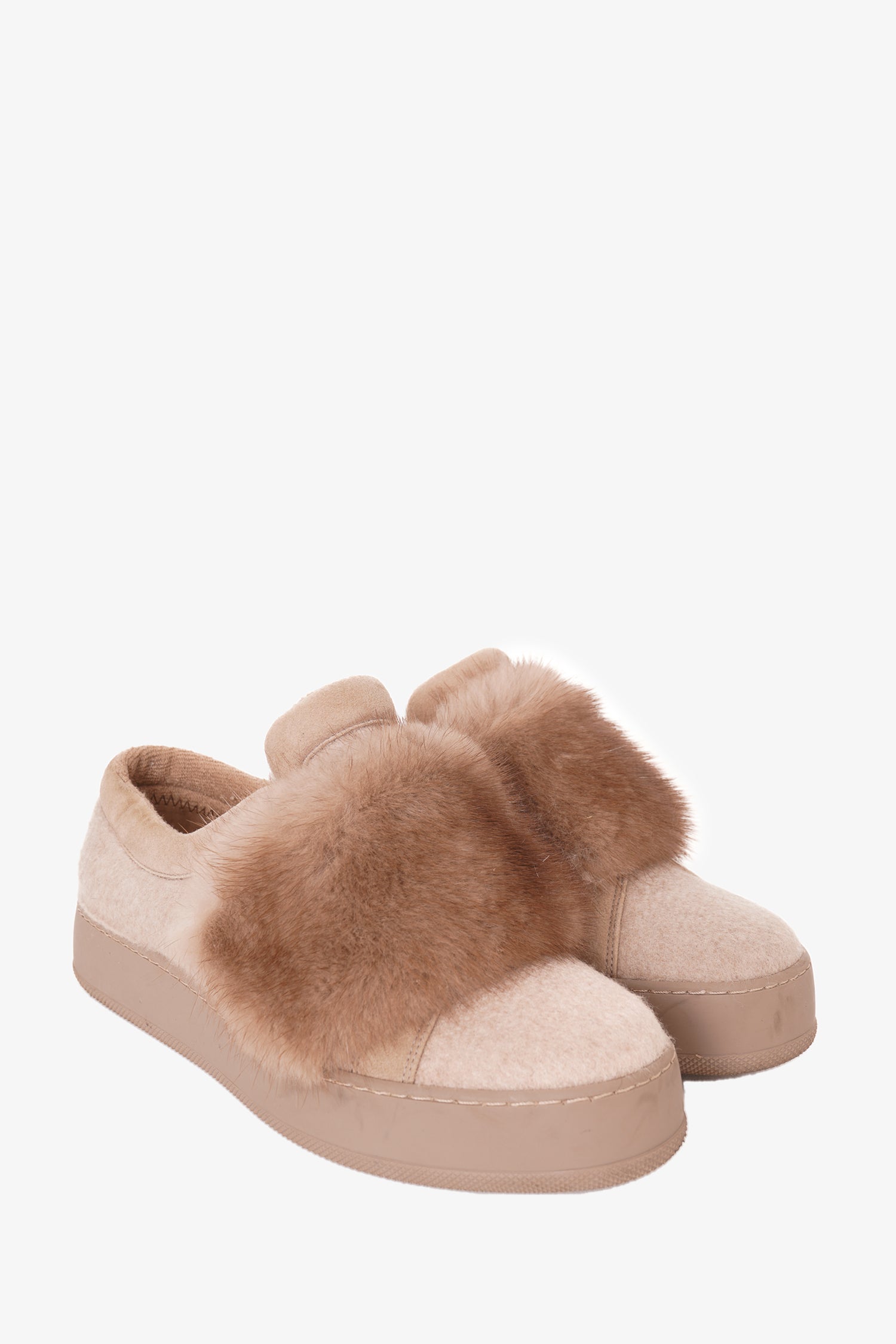 Refresh availabilityMax Max Beige Shearling / Fur Sneakers. Round toe. Slip on. Tonal stitching.
