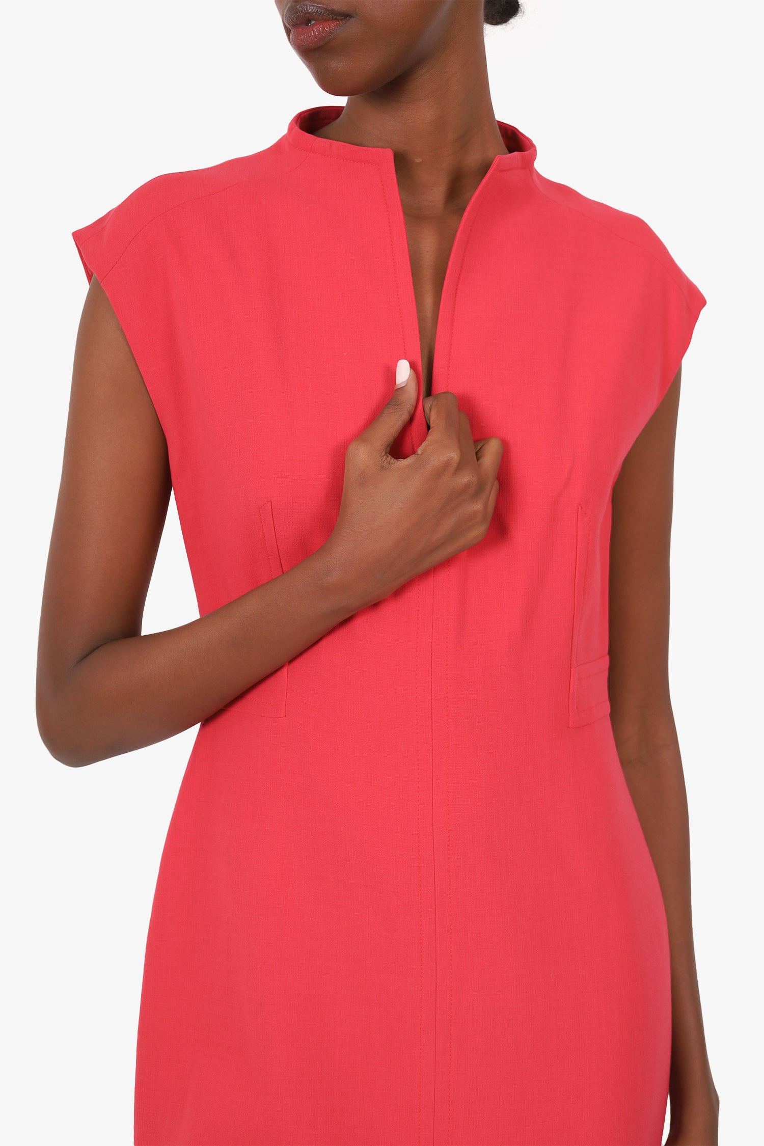 Refresh availabilityMaxMara Pink Virgin Wool Sleeveless Knee Length Dress. Slip-on. High V-neckline. Rear zip-closure. Tonal stitching.