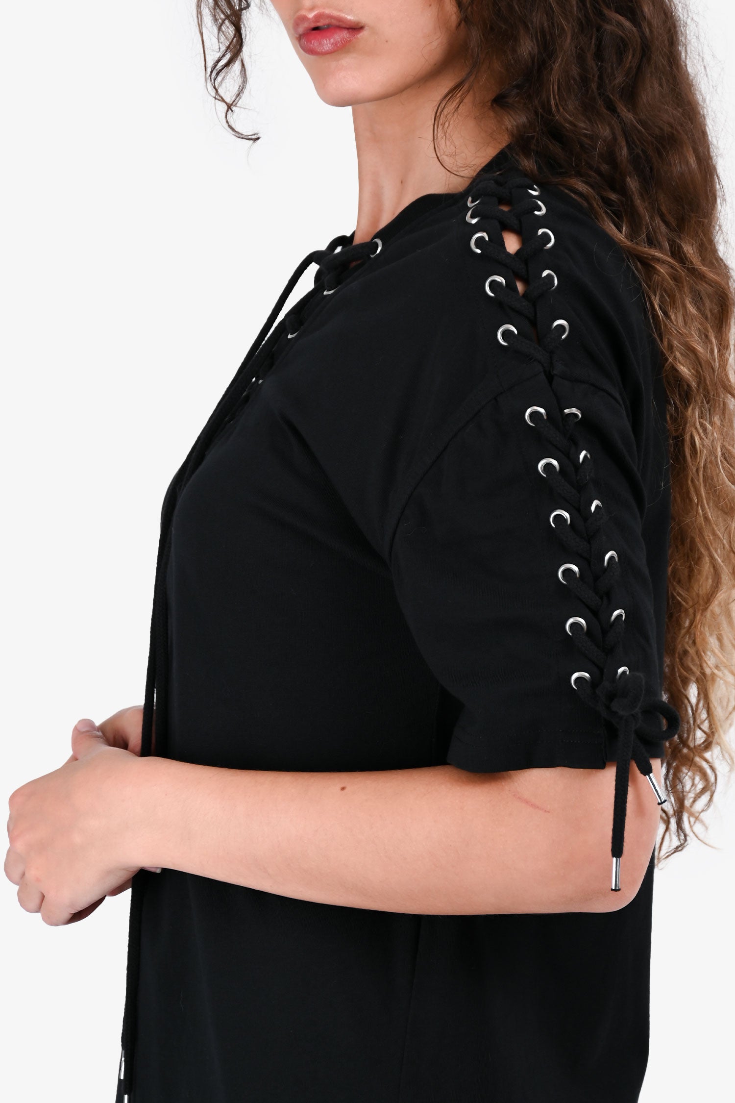 Refresh availabilityMcQ By Alexander McQueen Black Lace Up Detailed Short Sleeves Dress. Lace-up detailing at front and sleeves. Short sleeves. Tonal stitching.