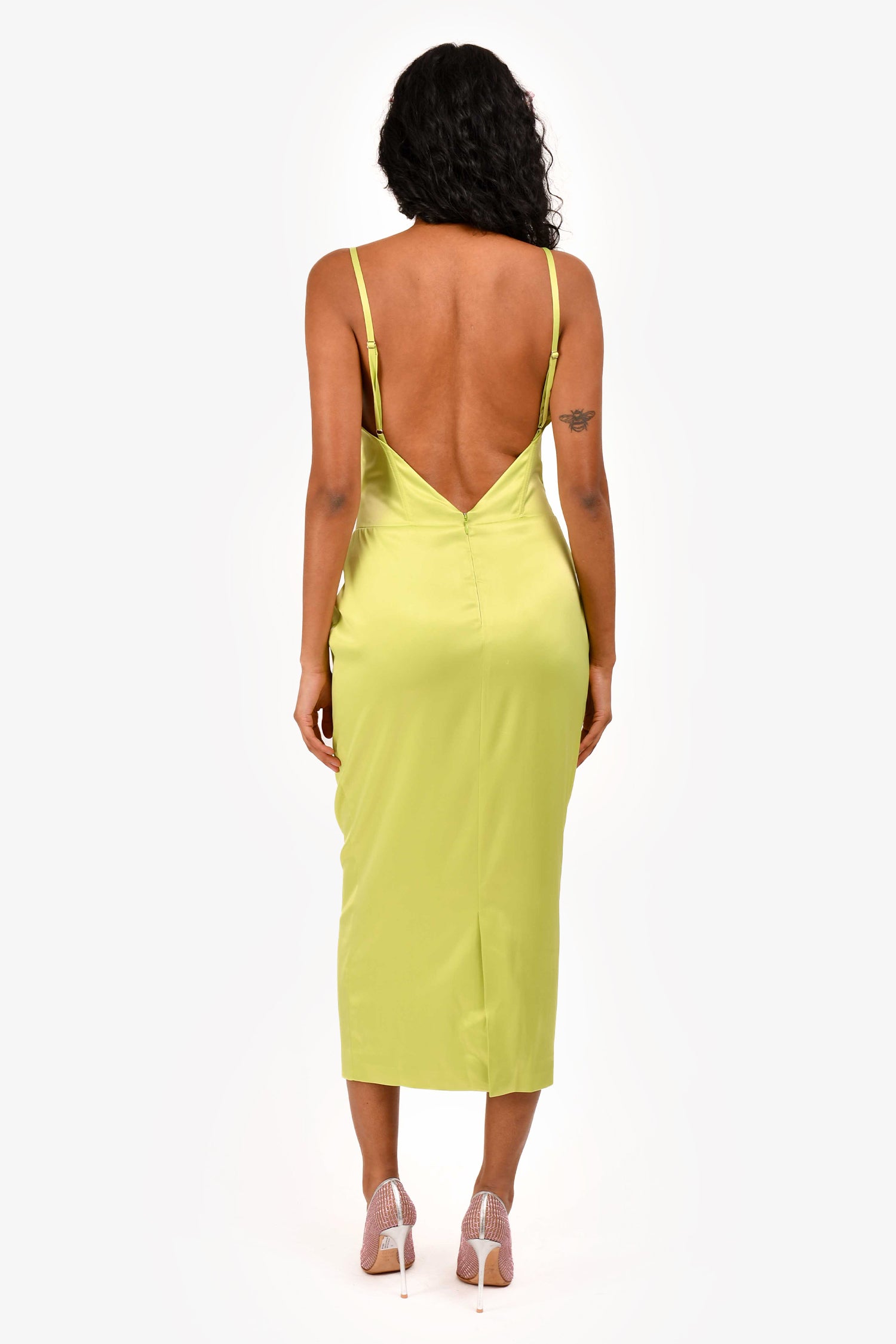 Refresh availabilityMeshki Neon Green Corset Maxi Dress. Fitted silhouette with flared maxi-length skirt. Hidden back zip closure. Thin adjustable shoulder straps. Tonal stitching.