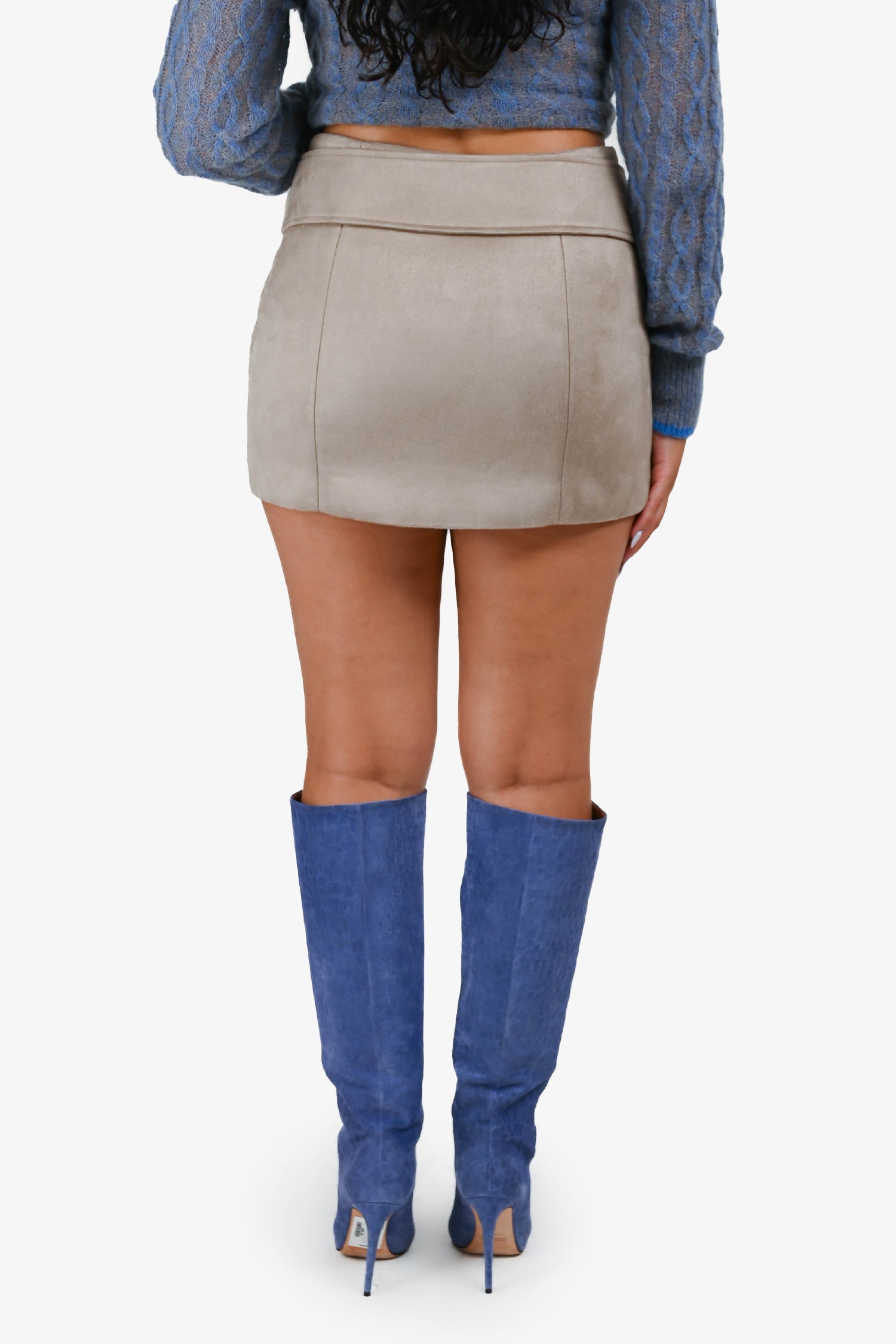 Meshki Taupe Faux Suede Belted Pleated Mini Skirt Size S