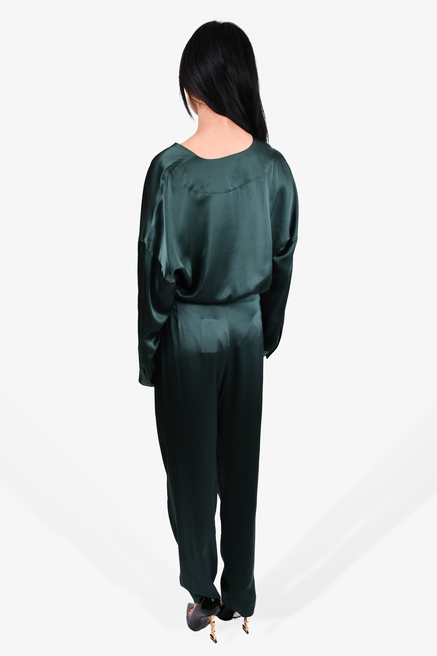 Michelle Mason Green Silk Bodysuit + Pant Set Size 8
