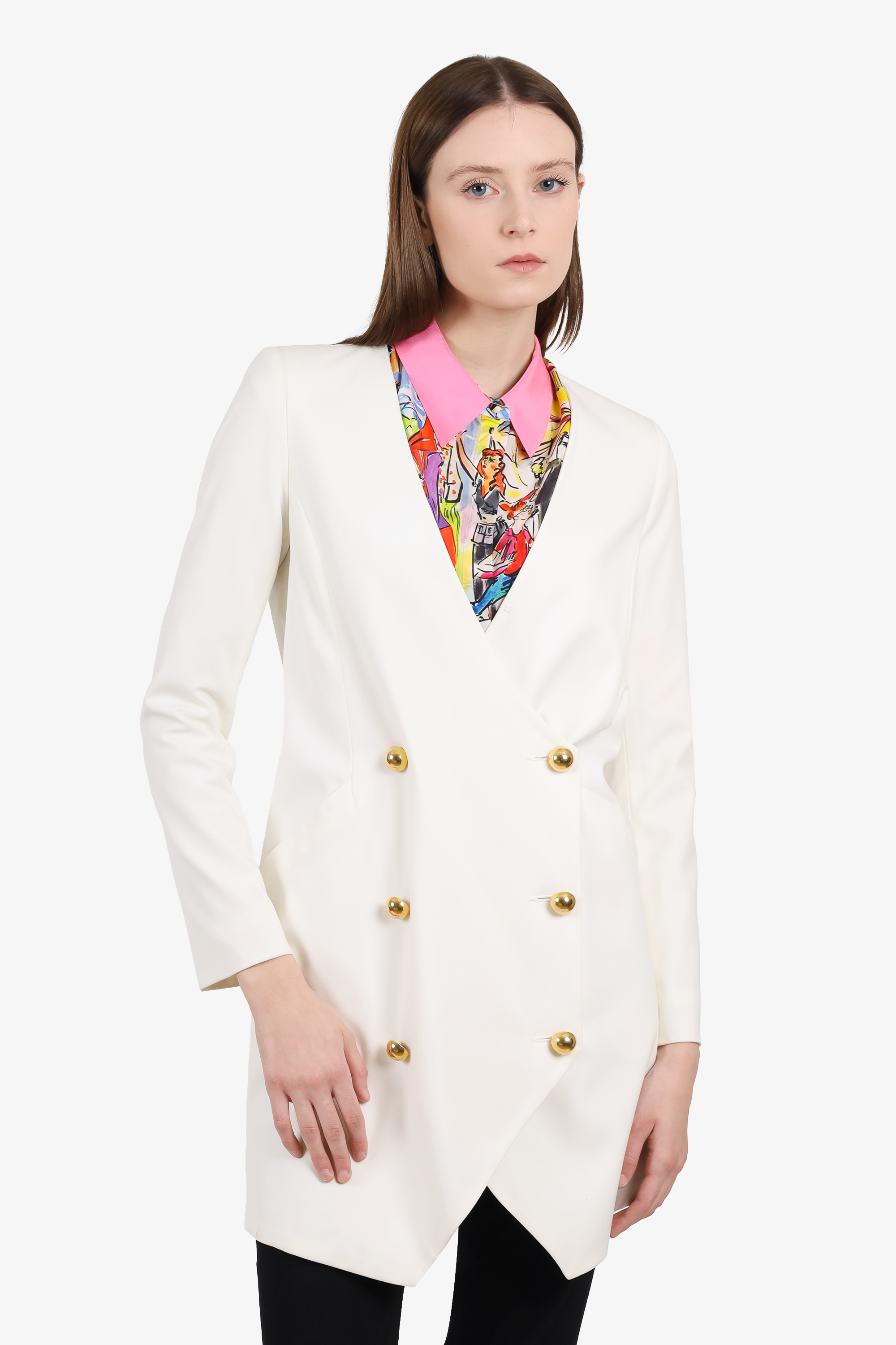 Michelle Mason White Double-Breasted Blazer Dress Size 2