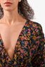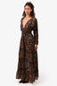 MISA Los Angeles Teal/Yellow Floral Print Maxi Dress with Ruched Sleeves Size XS
