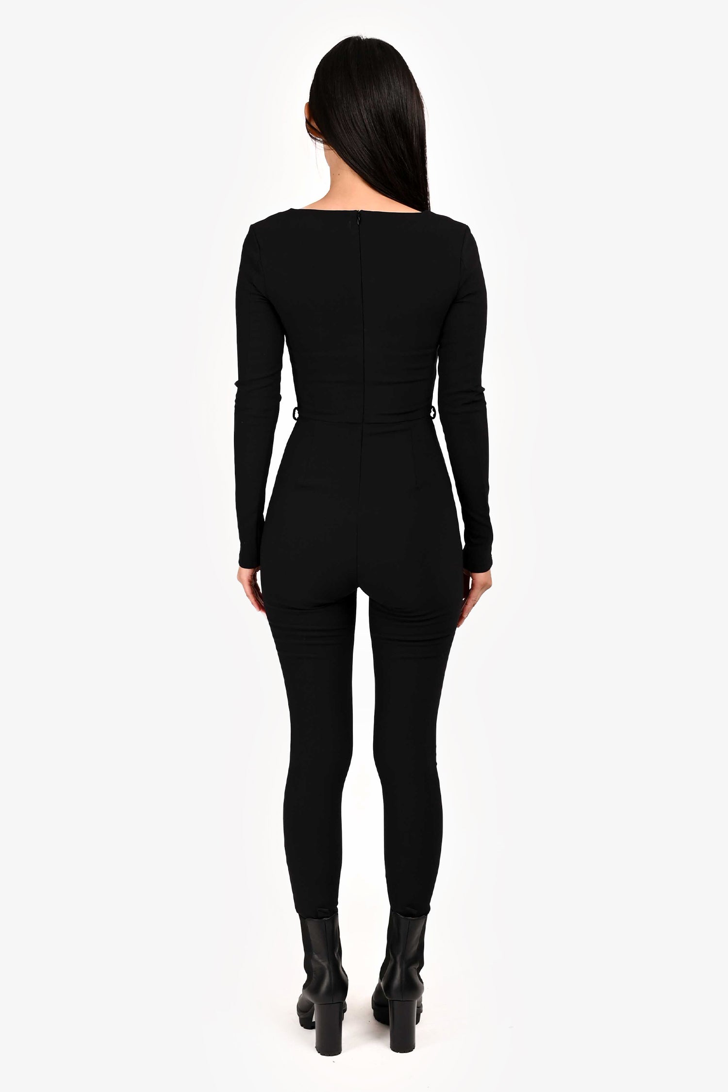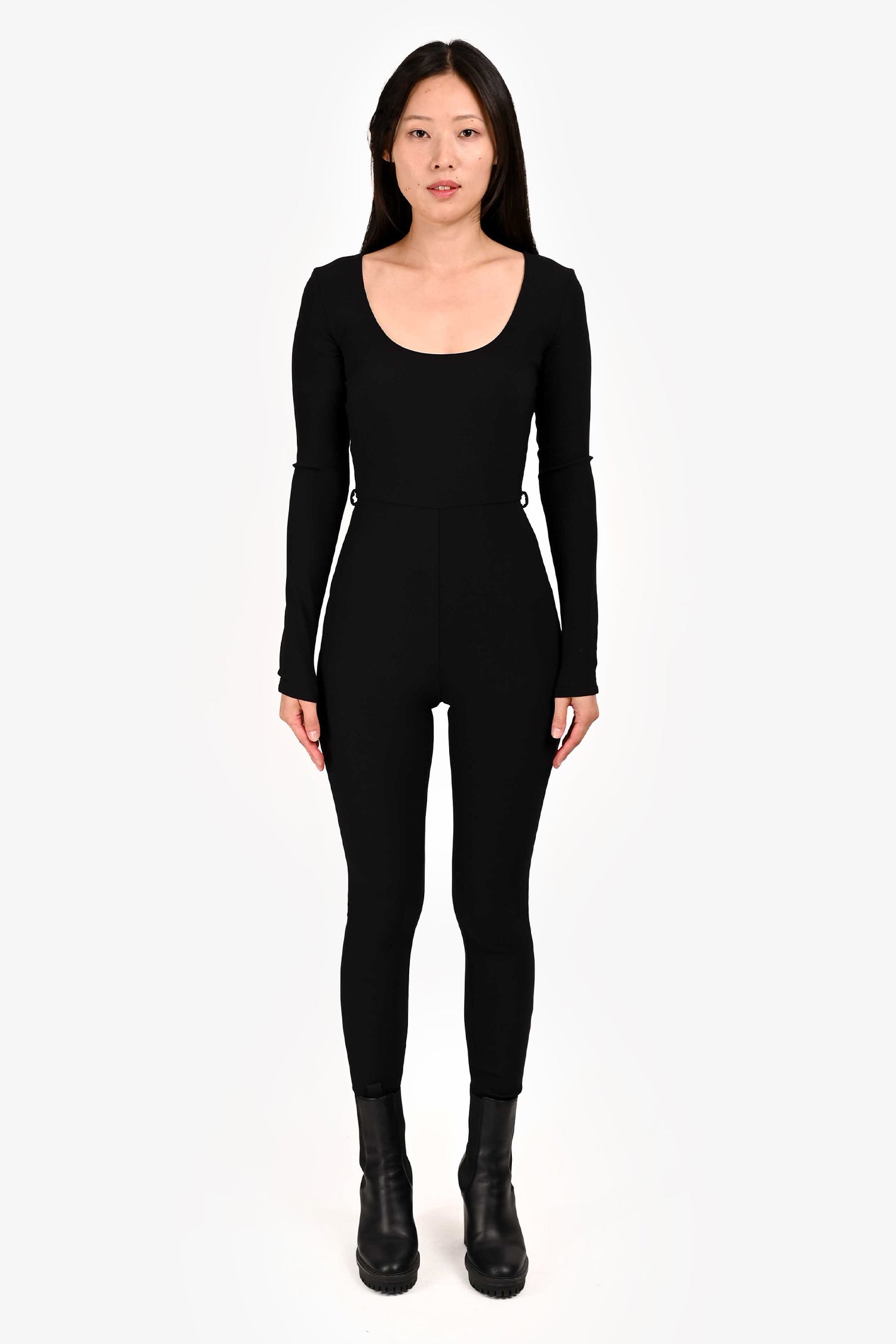 Refresh availabilityMisha Black Ribbed Fitted Bodysuit. Round neck. Pull-on. Rear zip and hook closure. Waist belt loops.