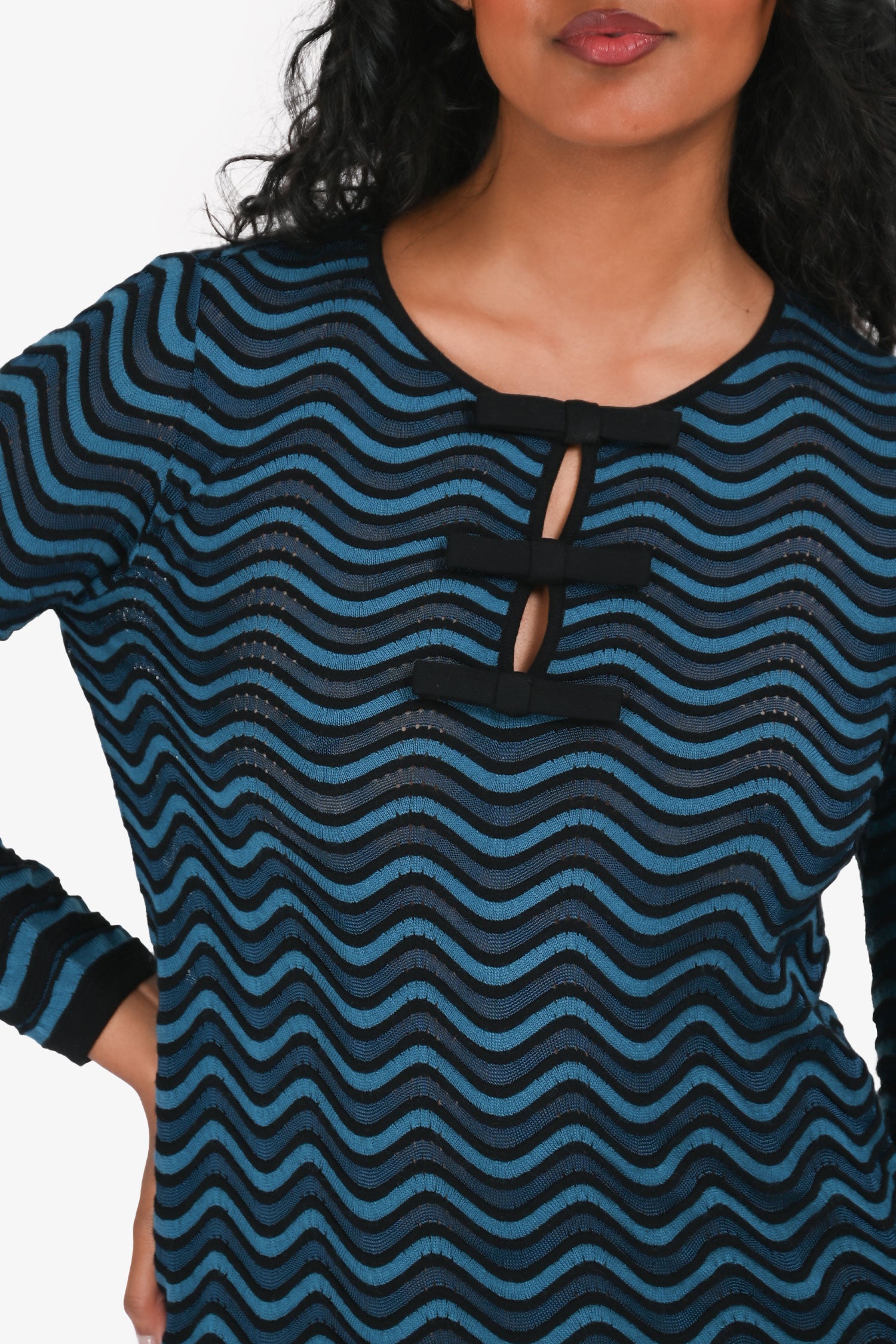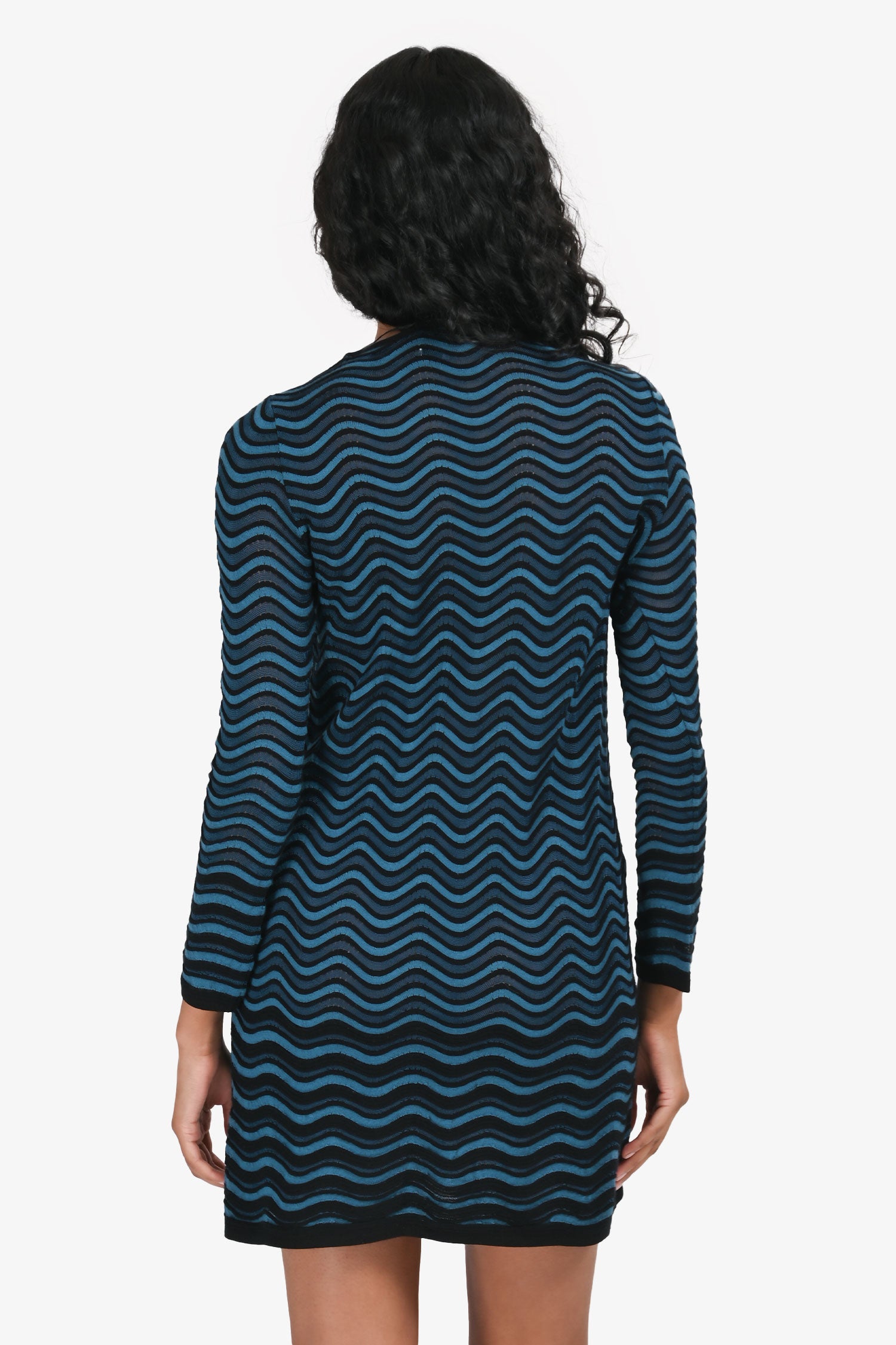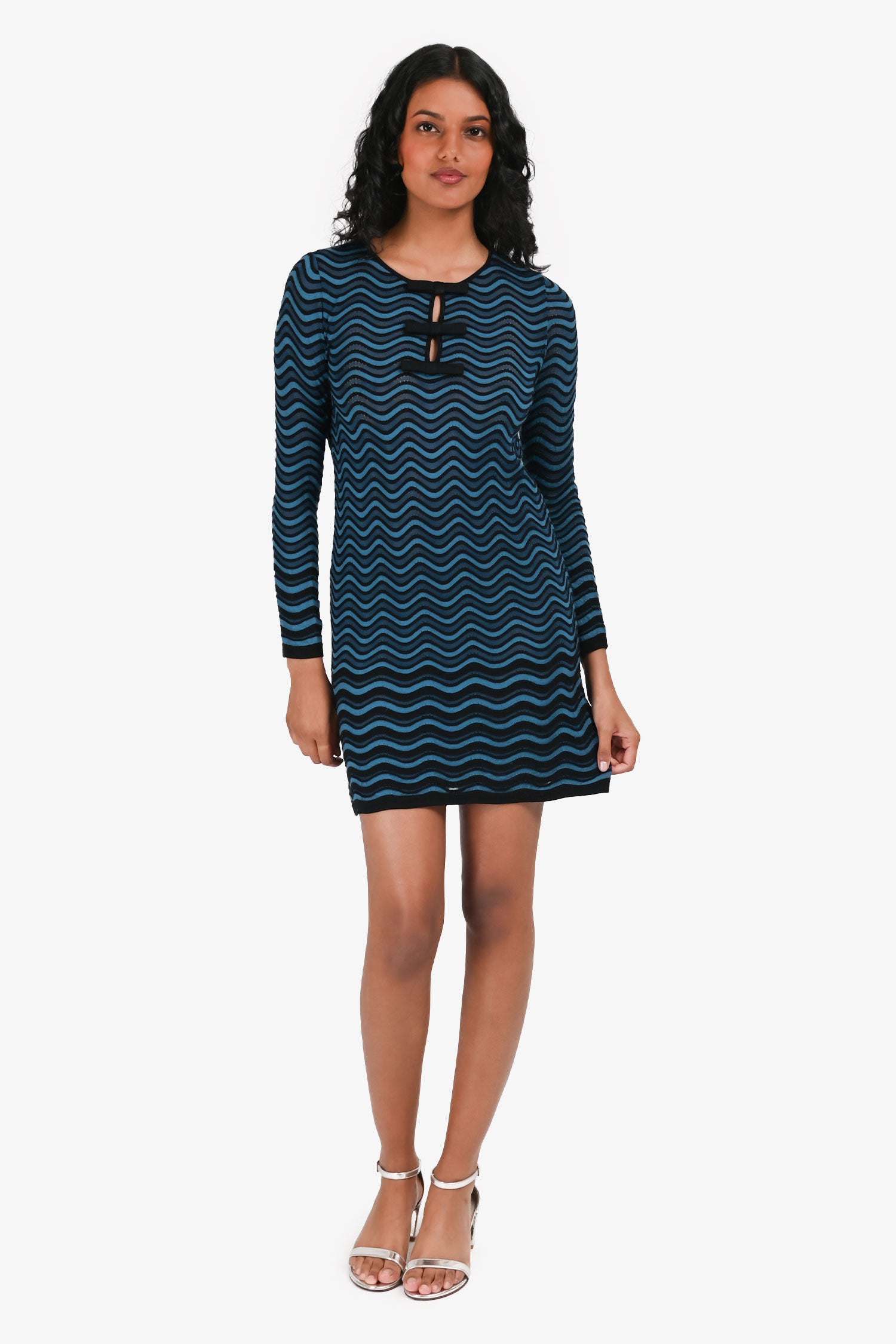 Missoni Blue Knitted Wave Patterned Bow Detailed Long Sleeves Dress Size 40