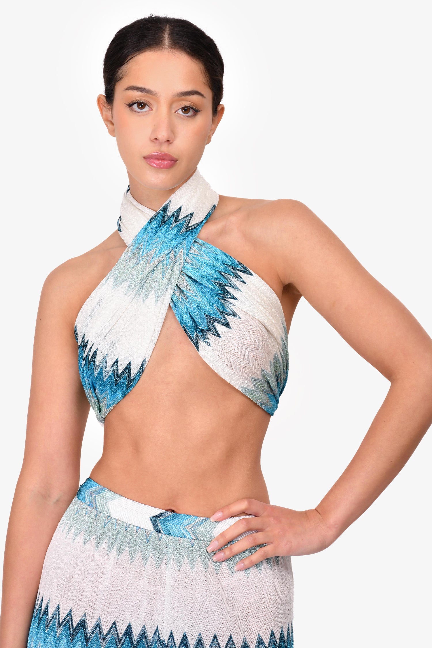 Refresh availabilityMissoni Blue/White Chevron Fringe Shawl. Fringe ends.