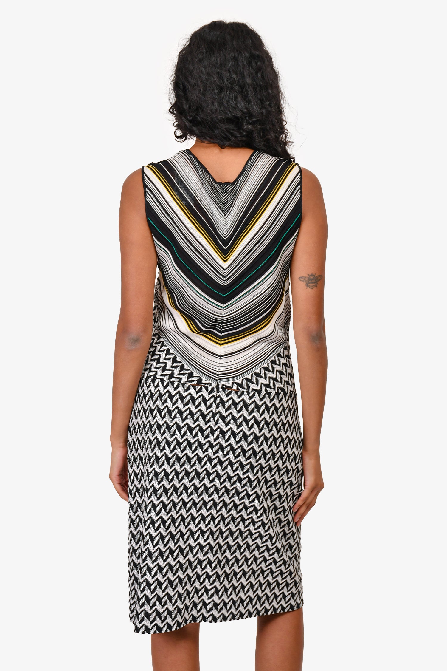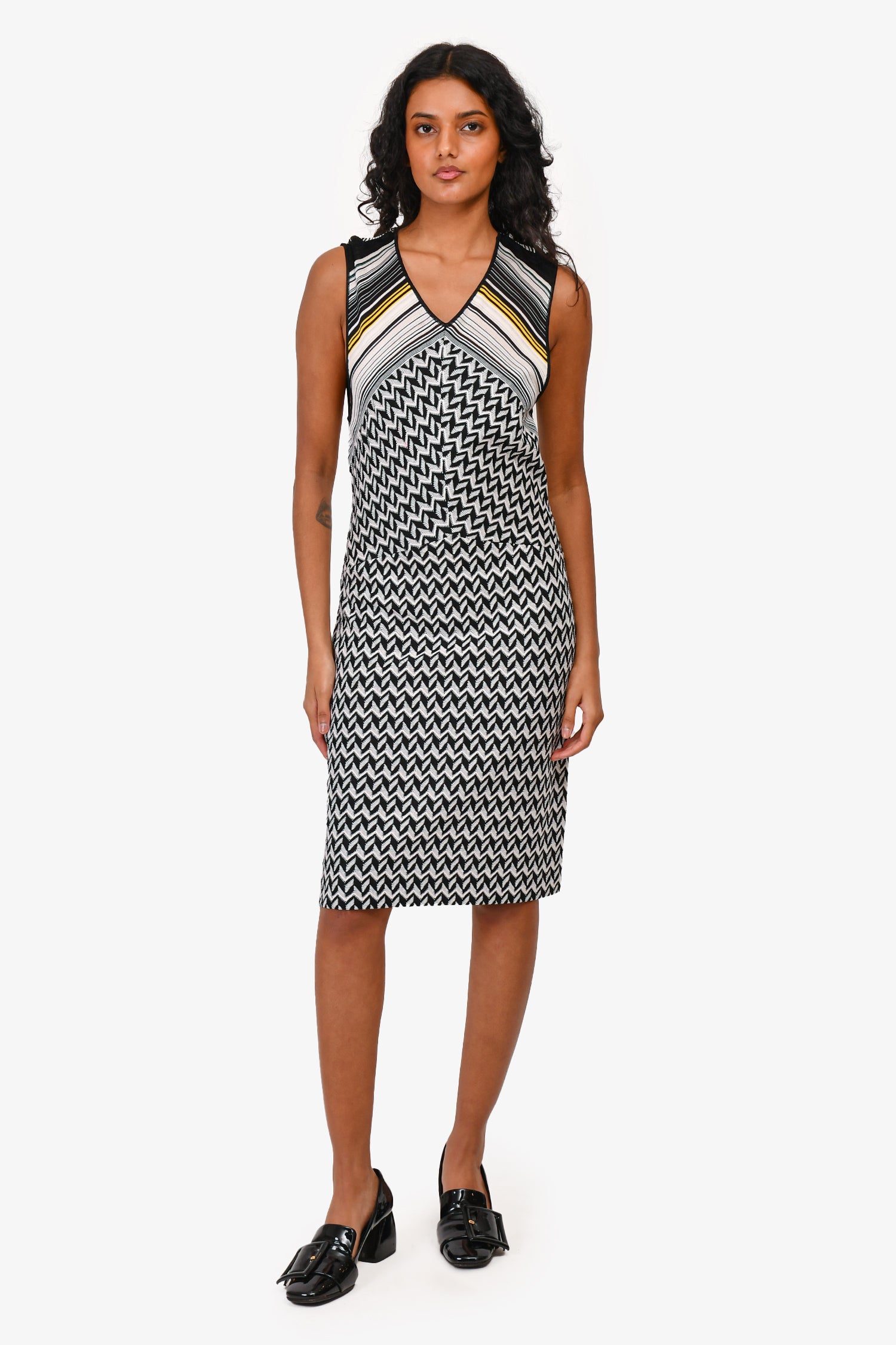 Refresh availabilityMissoni White/Black Striped Sleeveless Midi Dress. Round neck. Rear zip closure. Tonal stitching.