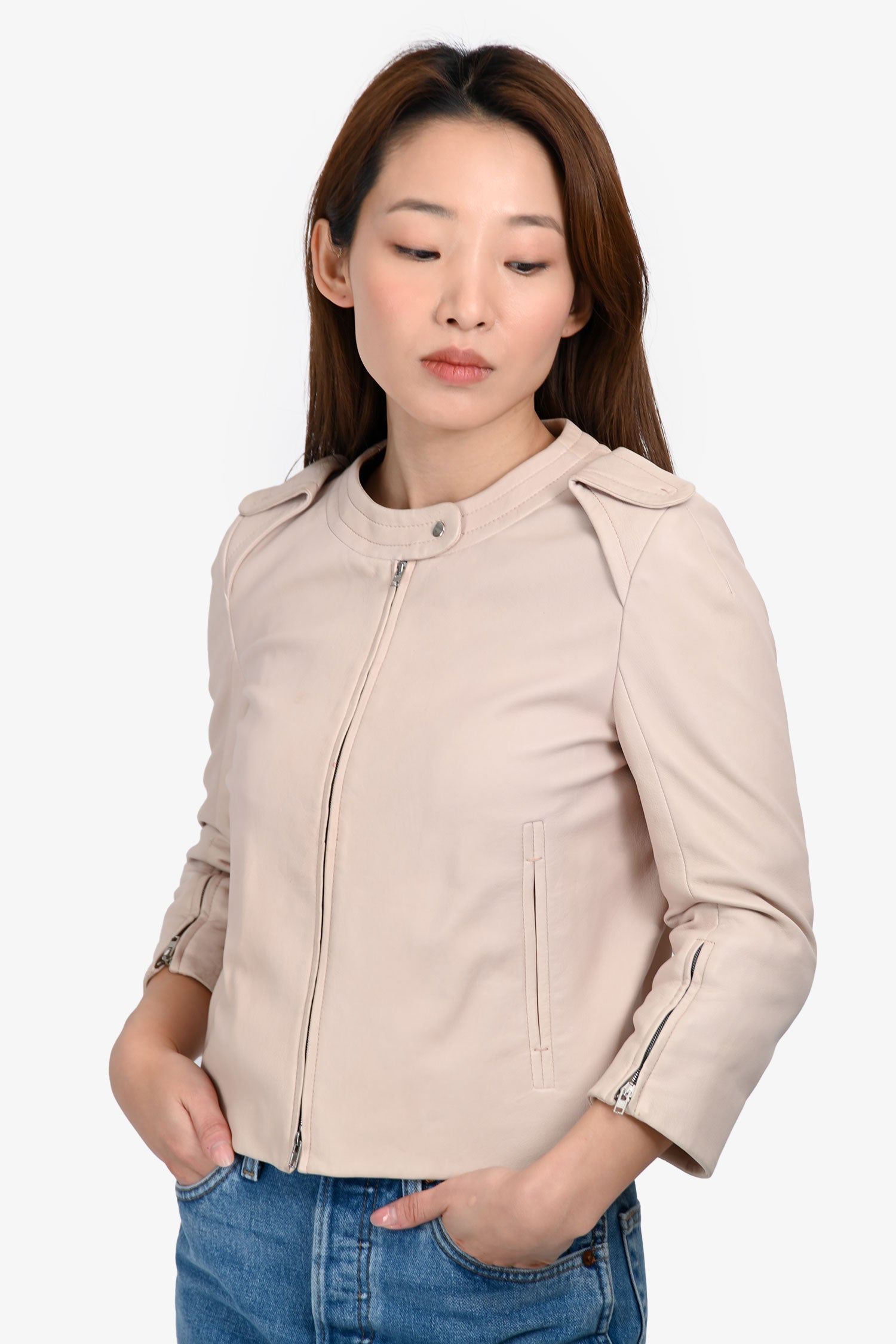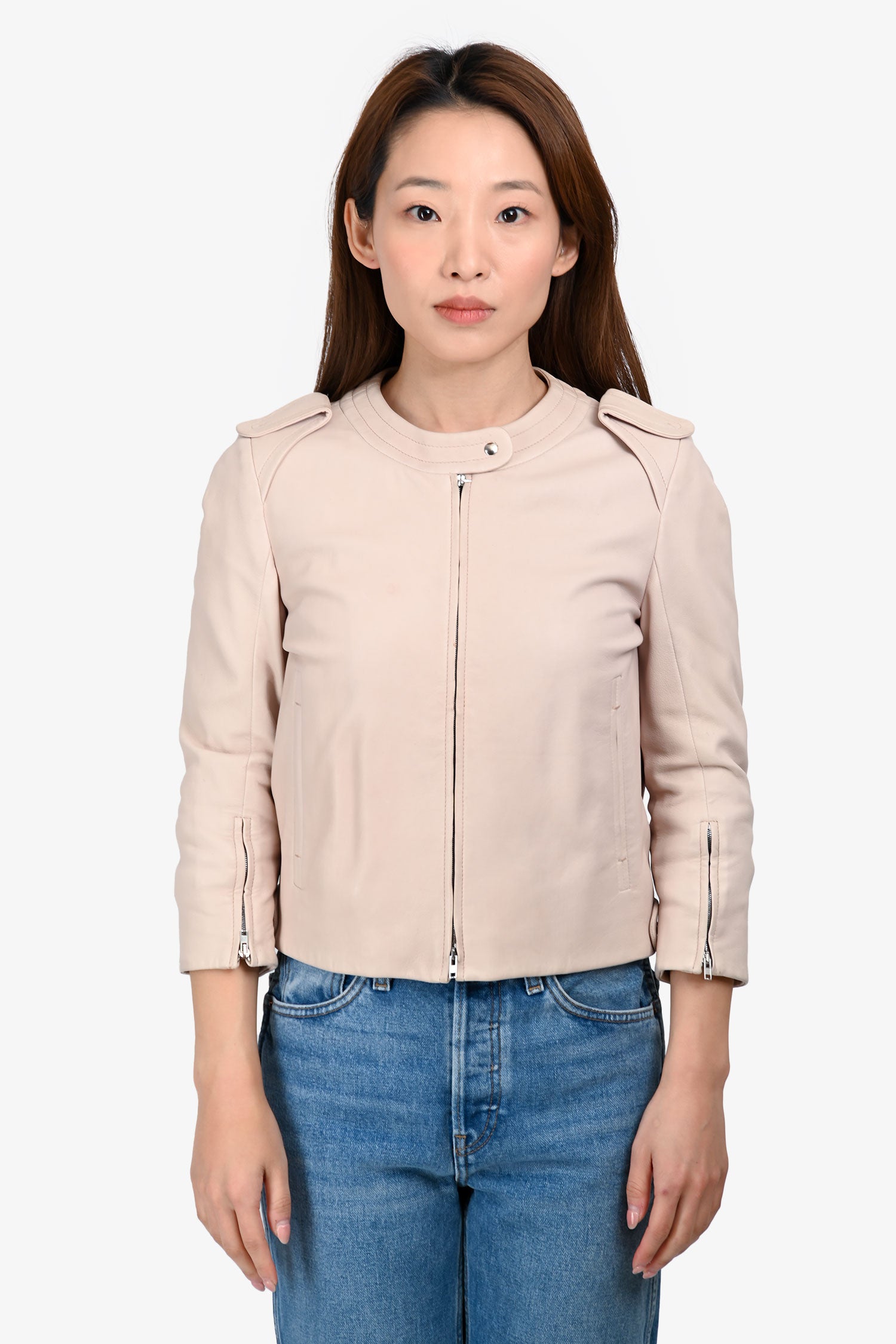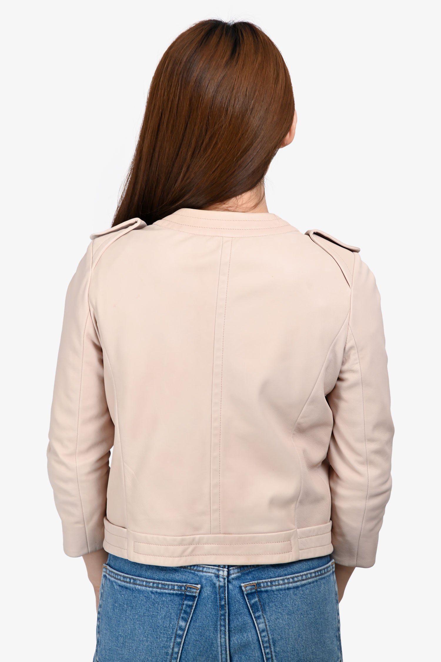 Miu Miu 2009 Pink Lambskin Leather Bike Style 3/4 Sleeve Jacket Size 38