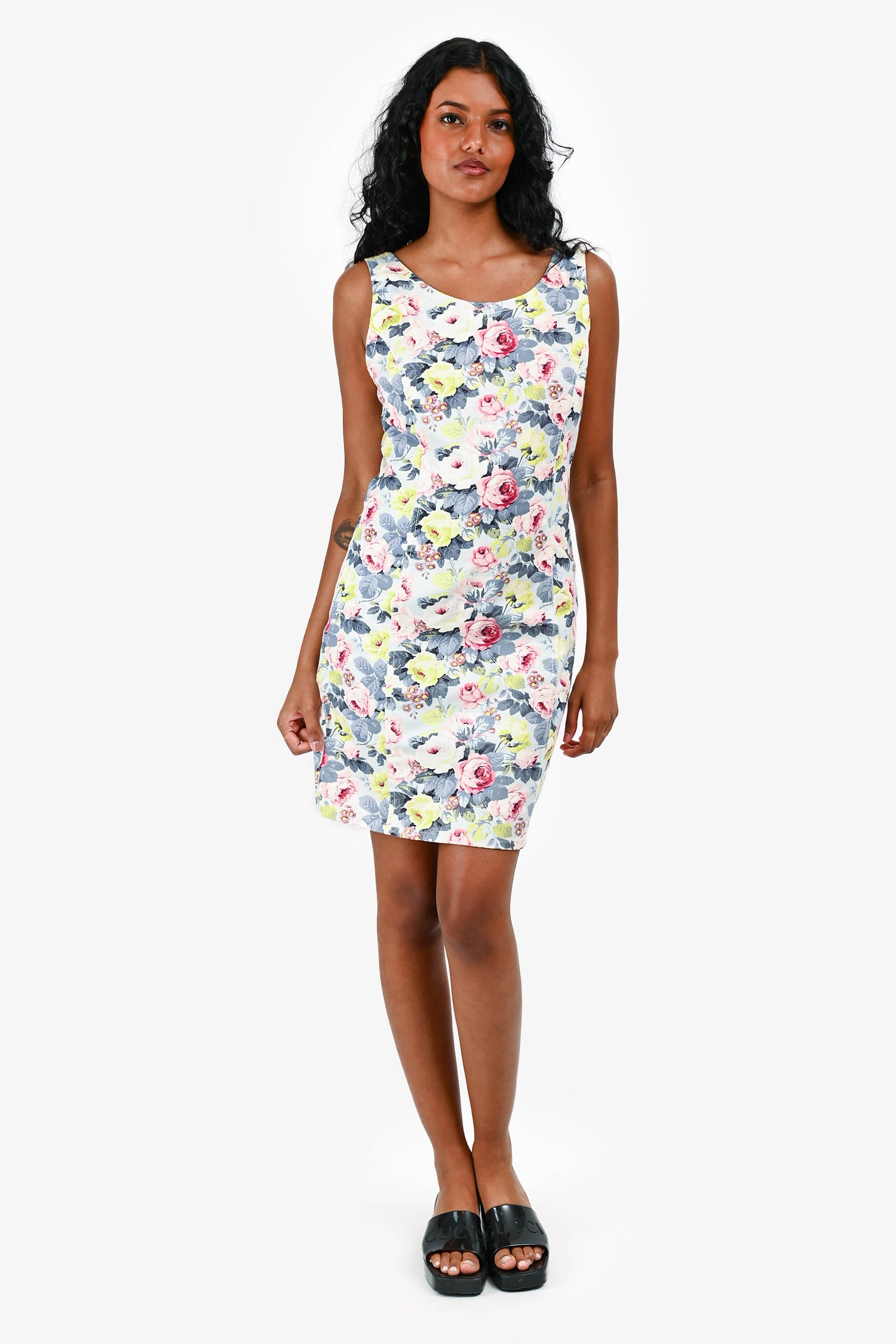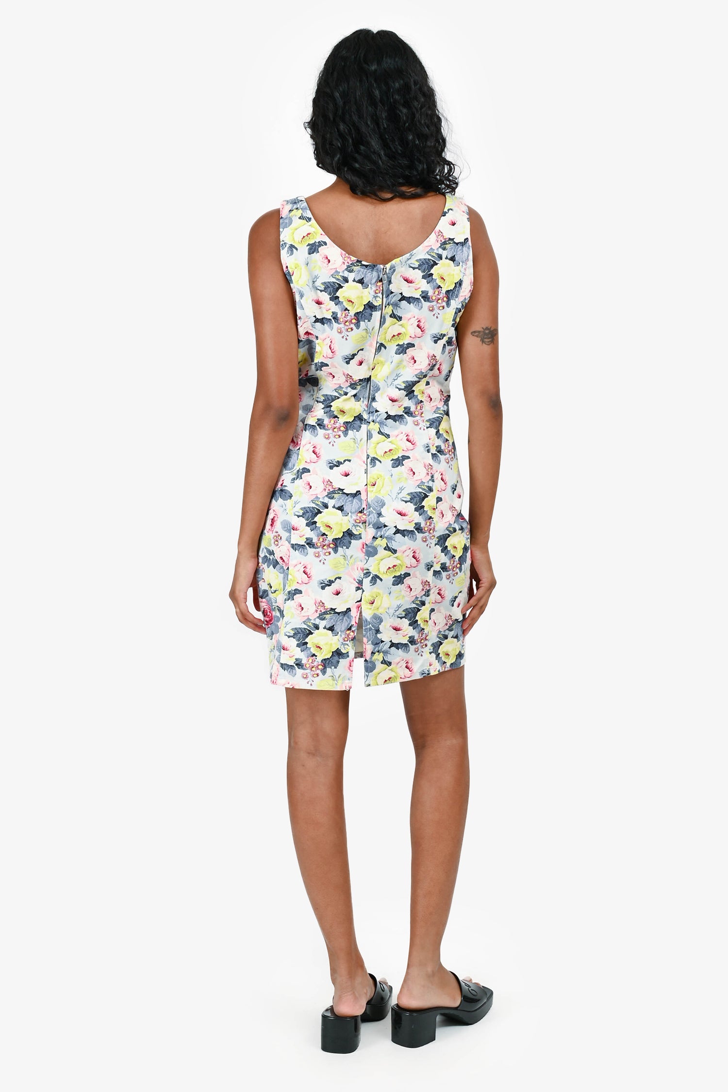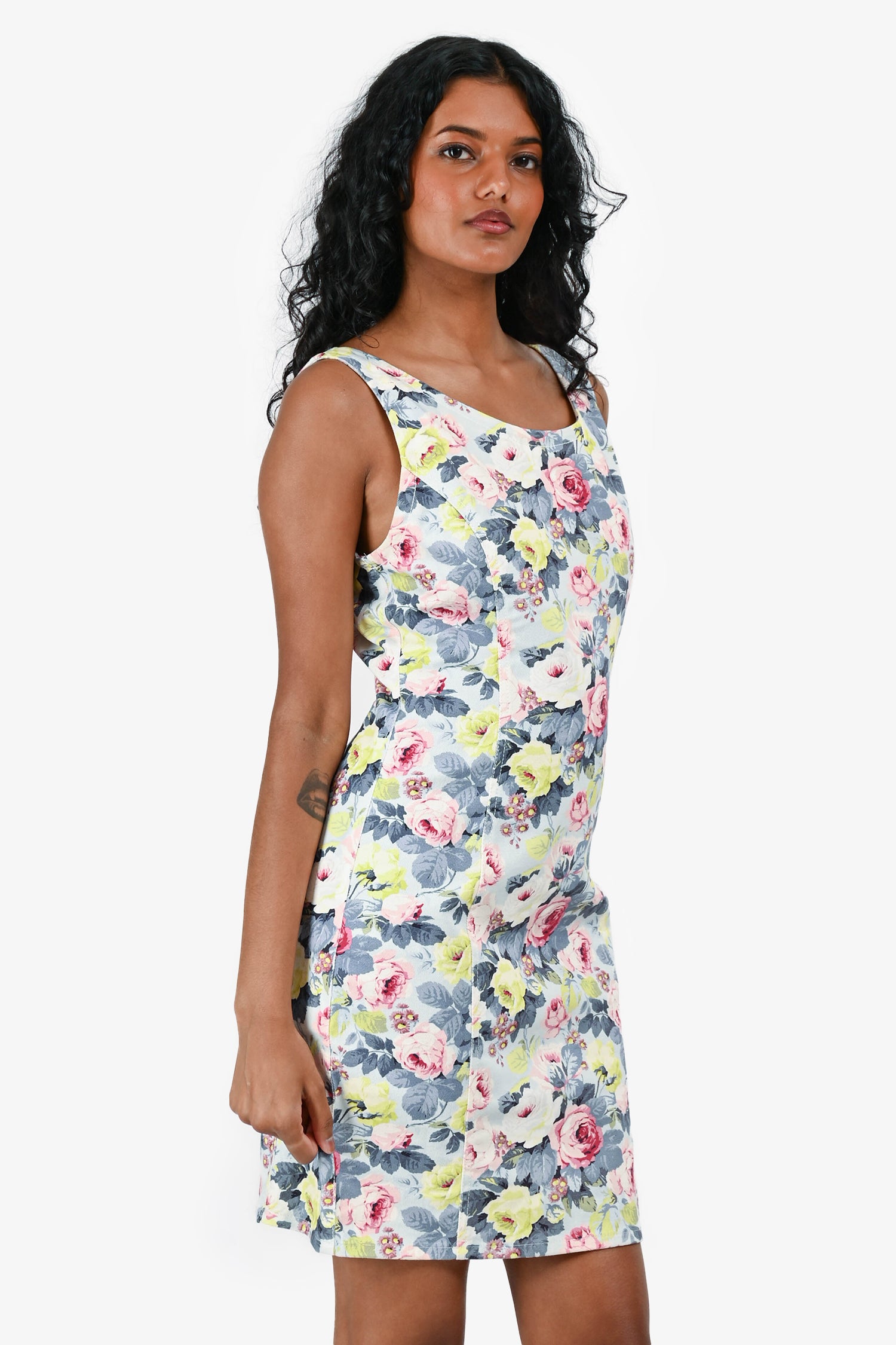 Refresh availabilityMiu Miu 2013 Multicolour Denim Floral Printed Sleeveless Mini Dress. Scoop neckline. Sleeveless design. Back zip closure. Tonal stitching.
