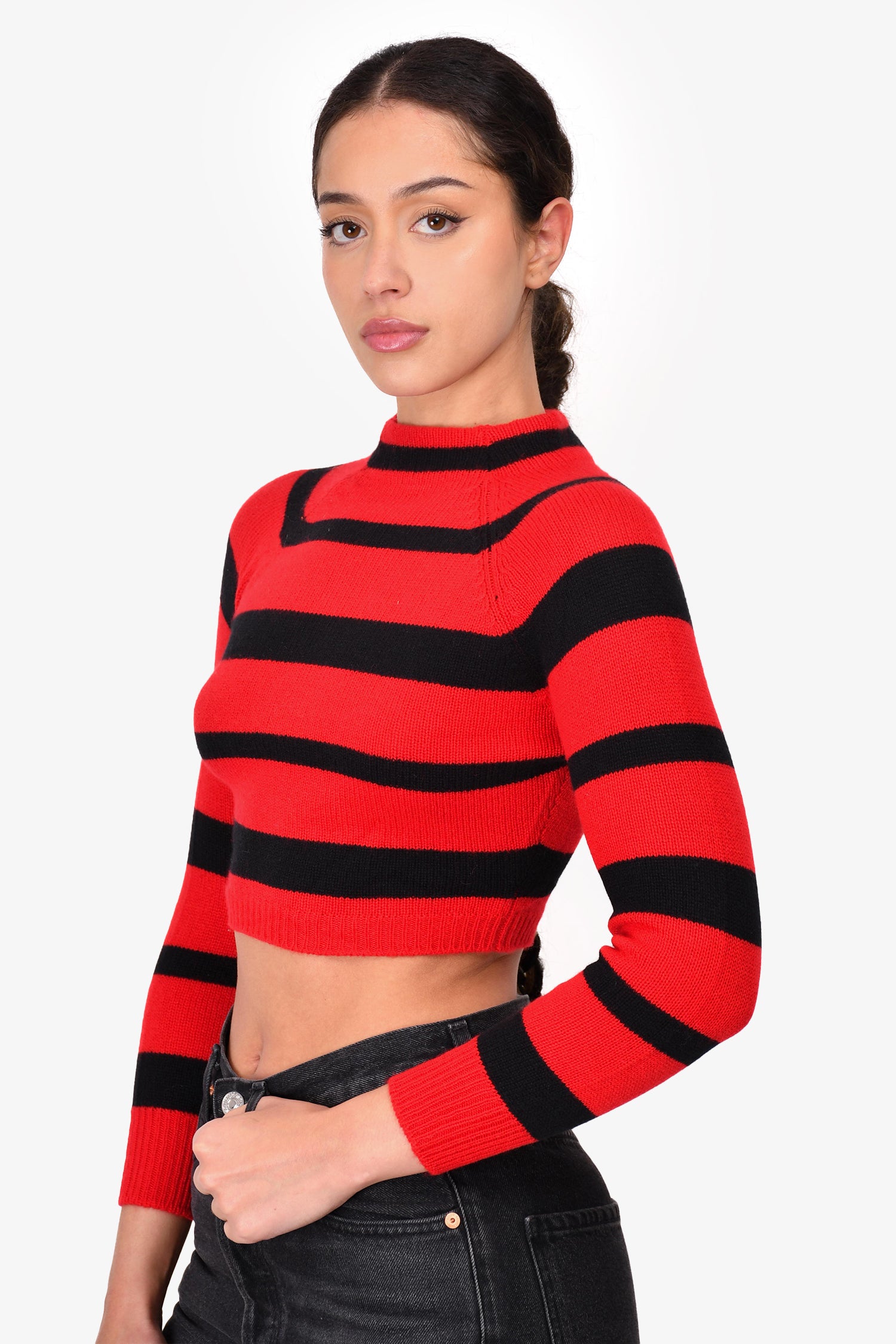 Miu Miu 2019 Red & Black Cashmere Striped Cropped Top Size 36