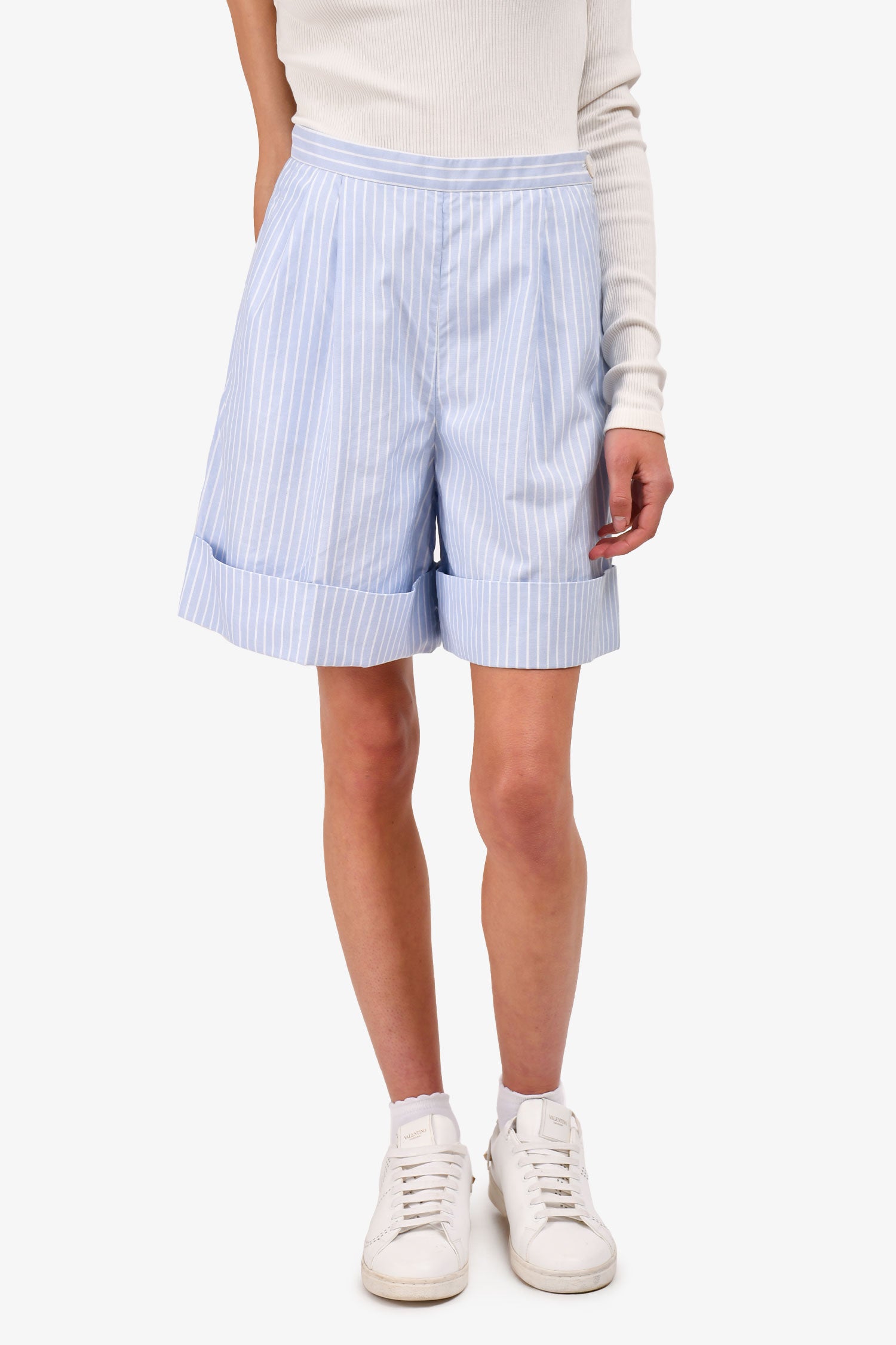 Miu Miu 2020 Light Blue Striped Cotton Cuffed Shorts Size 40