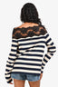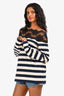 Miu Miu 2020 Navy Cream Striped Lace Detailed Off Shoulder Long Sleeve Top Size M
