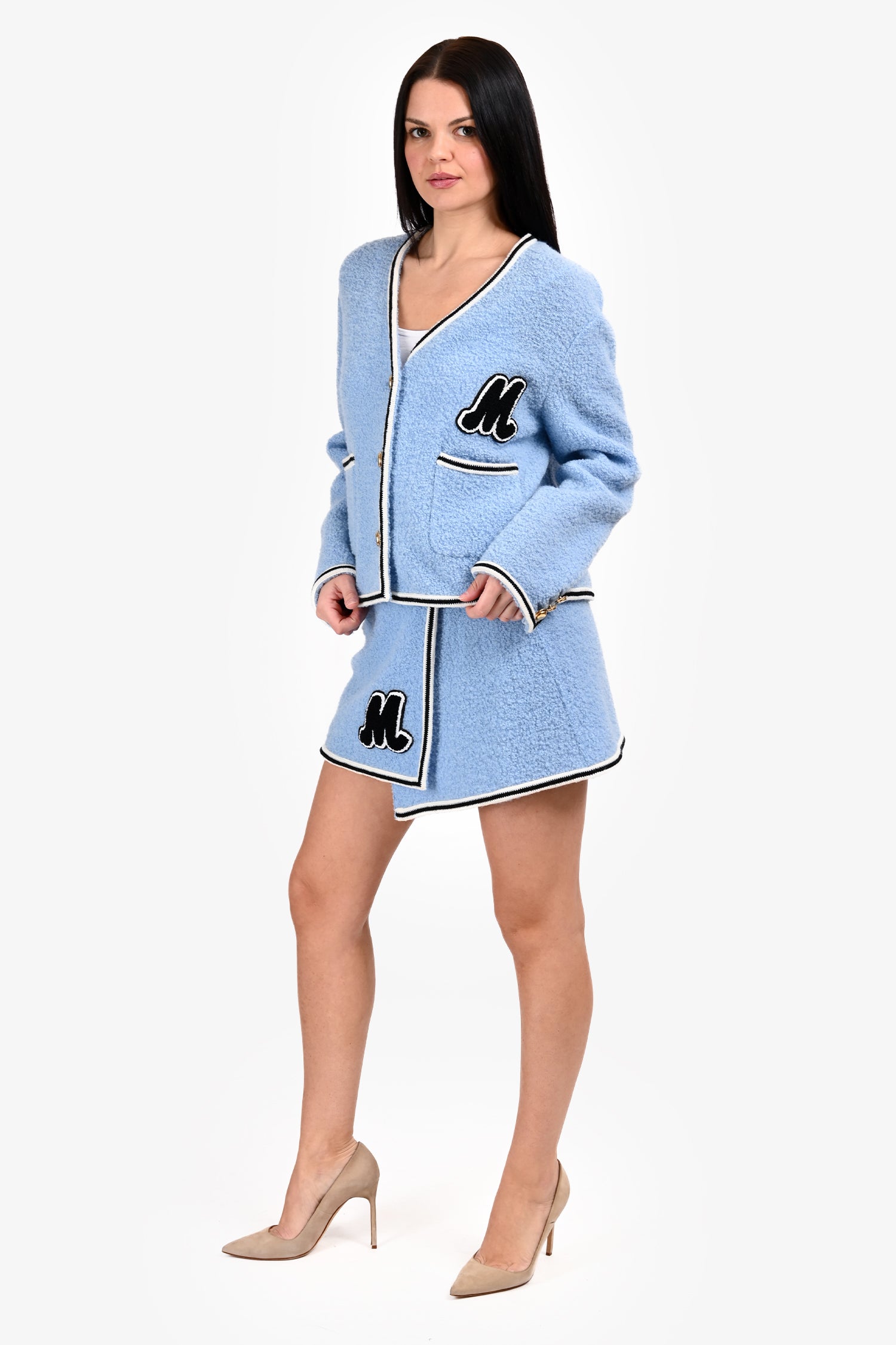 Miu Miu 2021 Blue Wool 'M' Logo Cardigan + Mini Skirt Set Size 38/36 IT