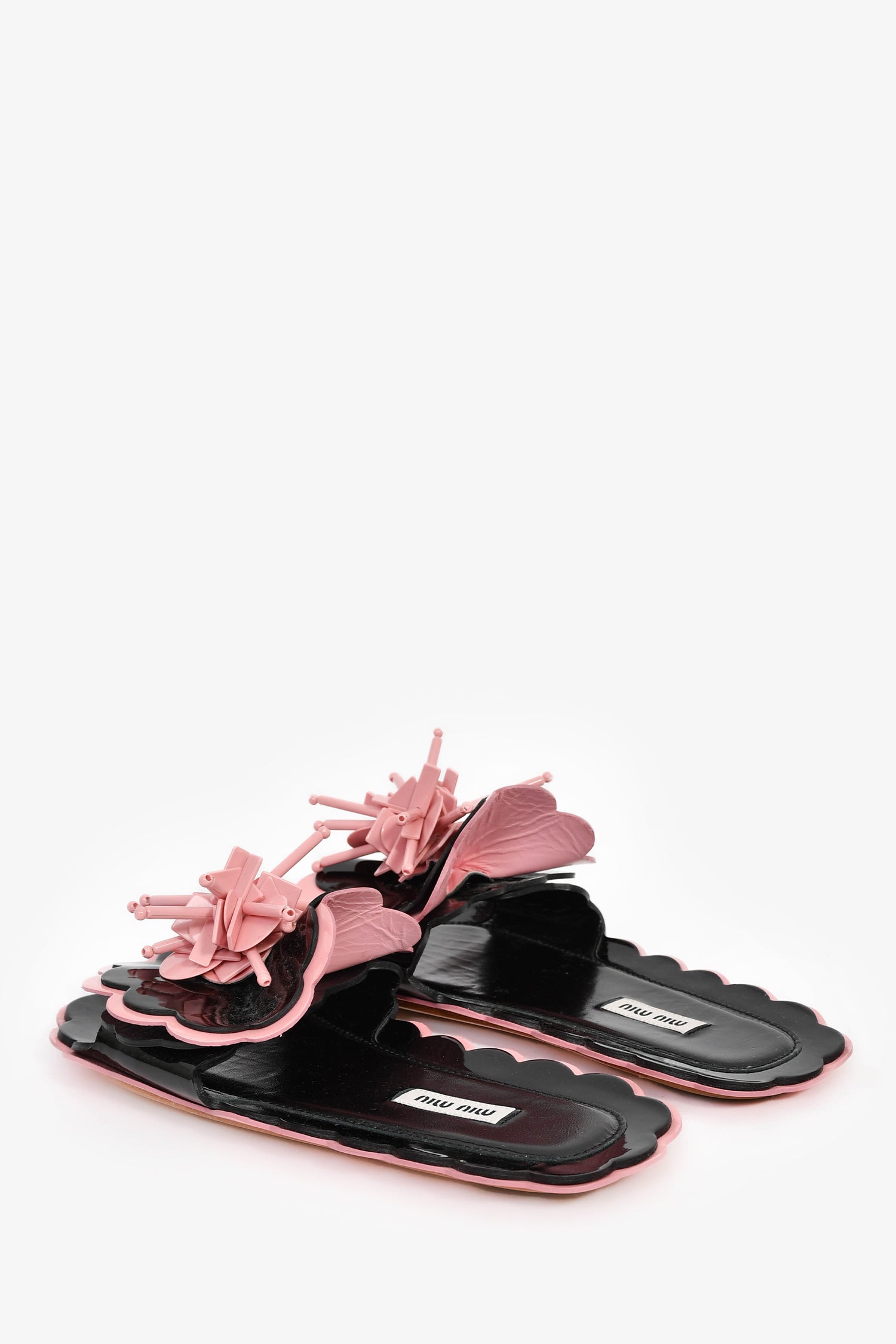 Miu Miu Black/Pink Patent Flower Sandals Size 35