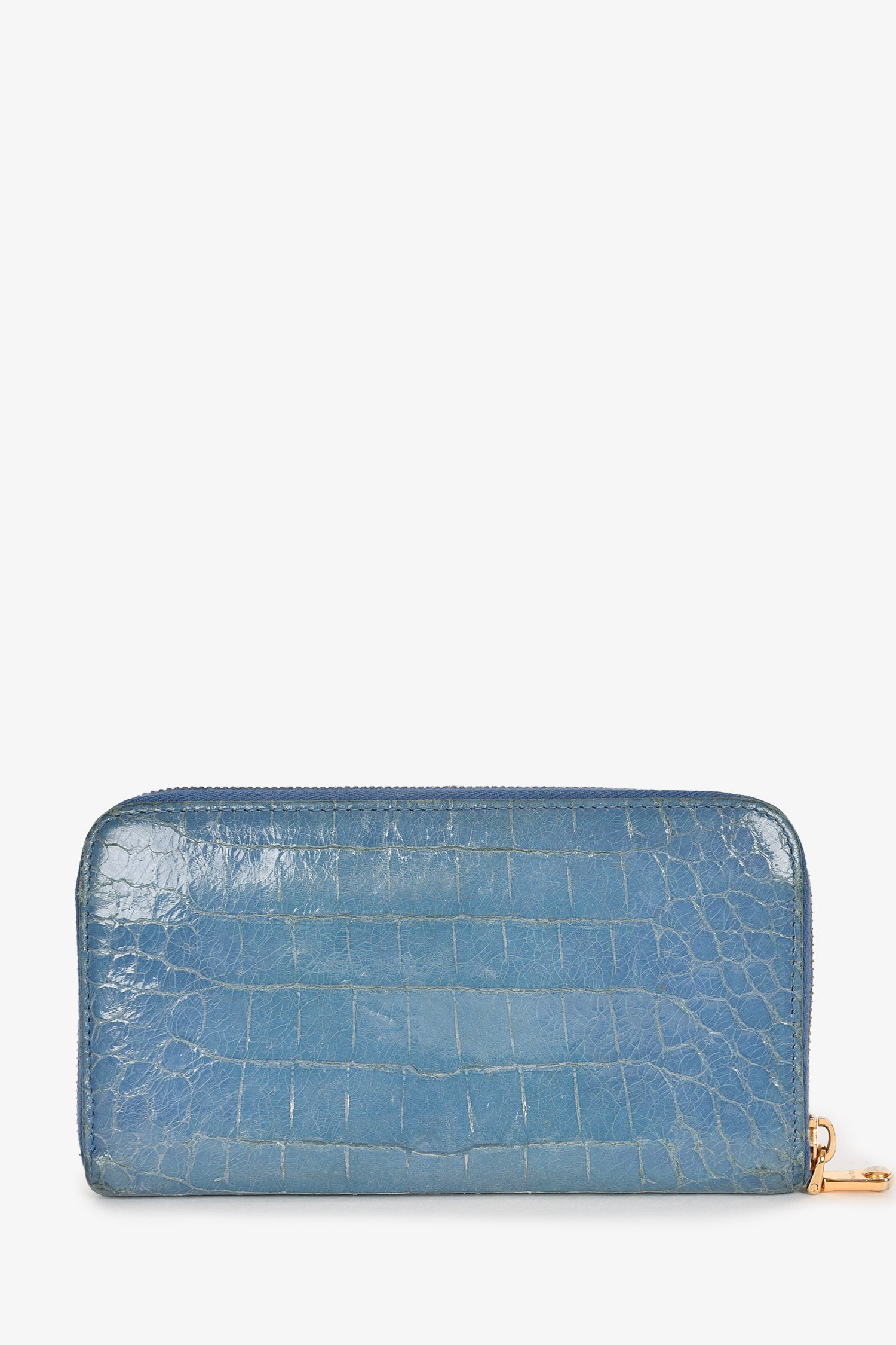 Miu Miu Blue Leather Croc Embossed Zip Wallet (As Is)