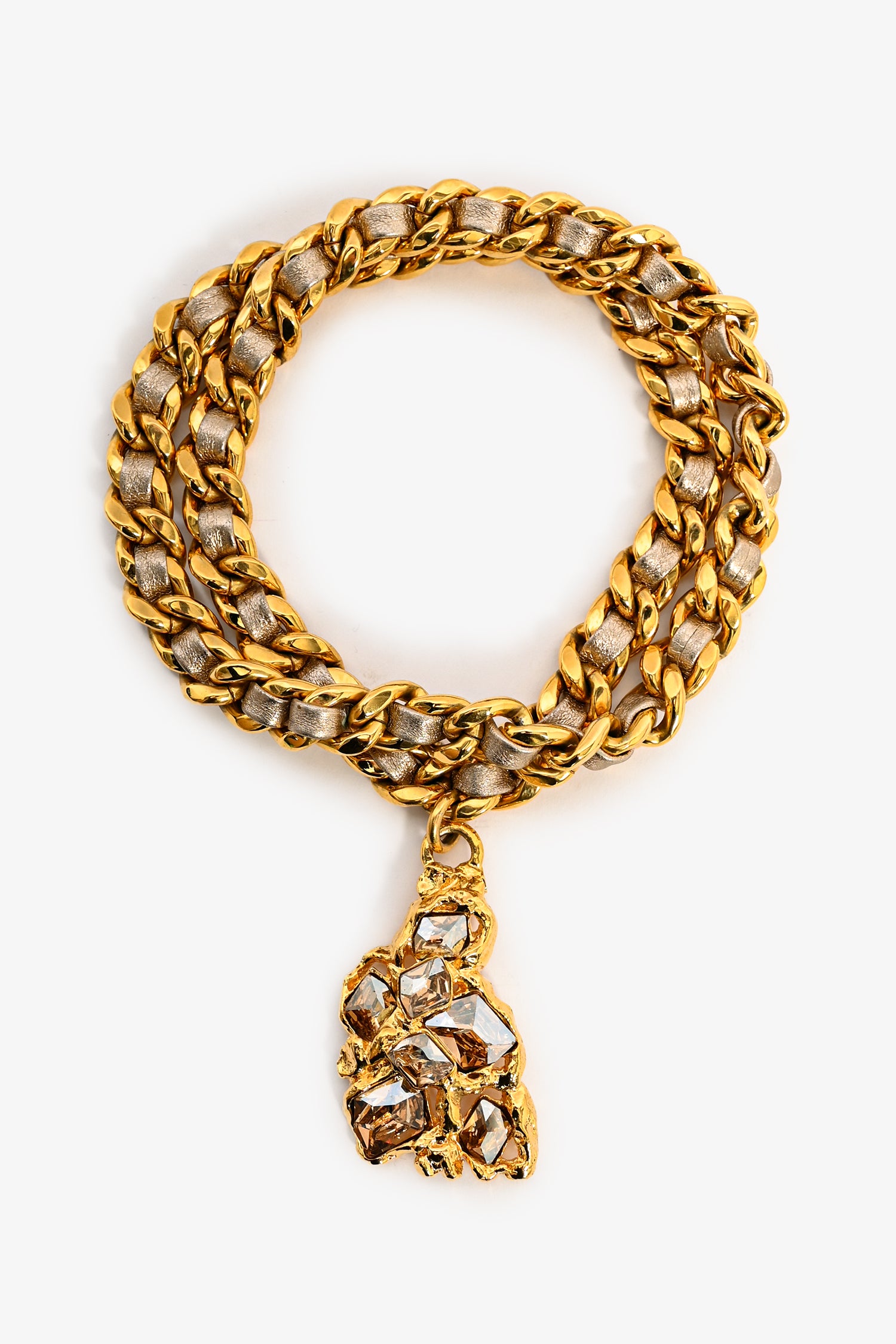Refresh availabilityMiu Miu Gold-Toned Woven Leather Crystal Pendant Necklace.
