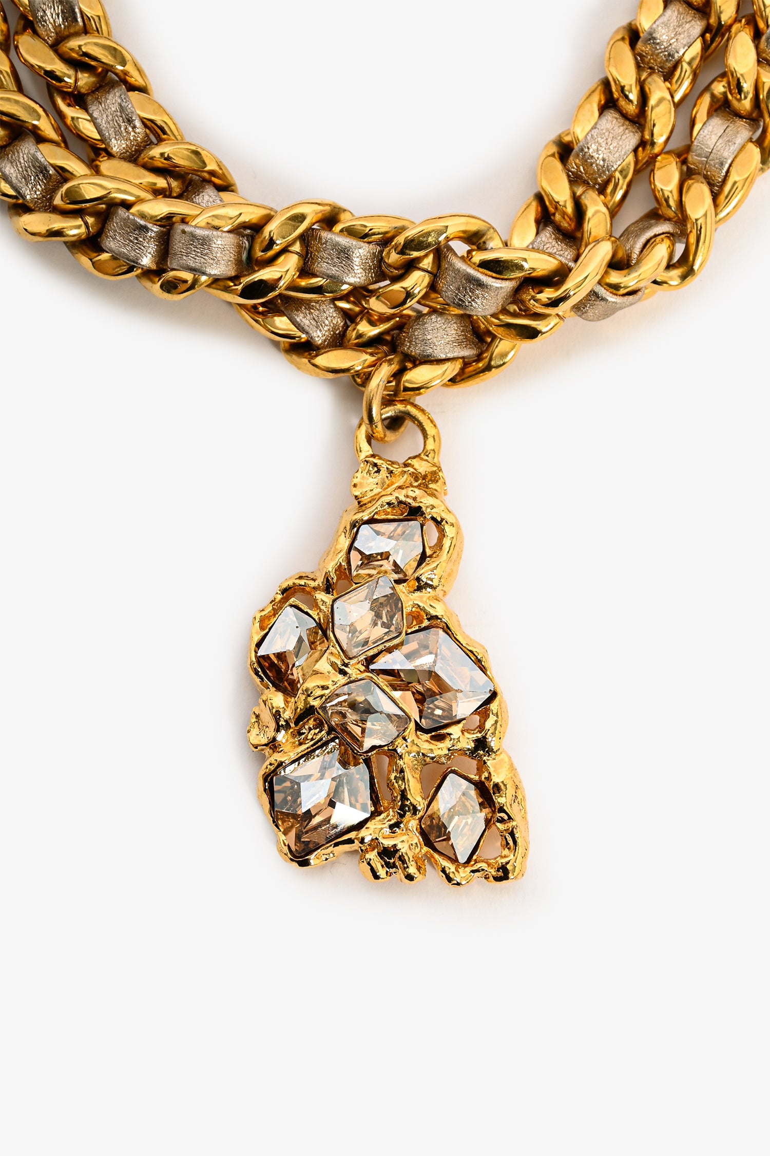 Miu Miu Gold-Toned Woven Leather Crystal Pendant Necklace