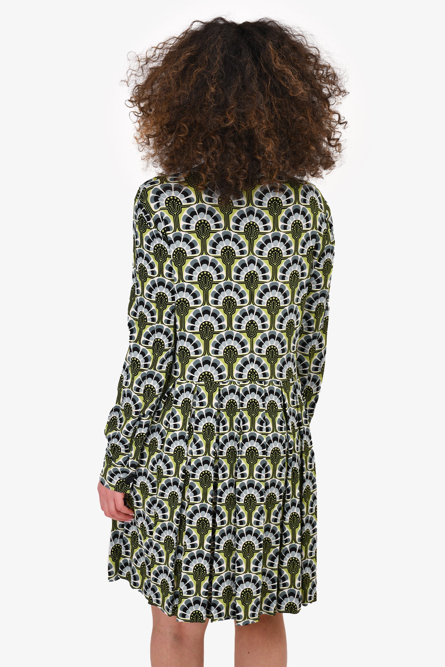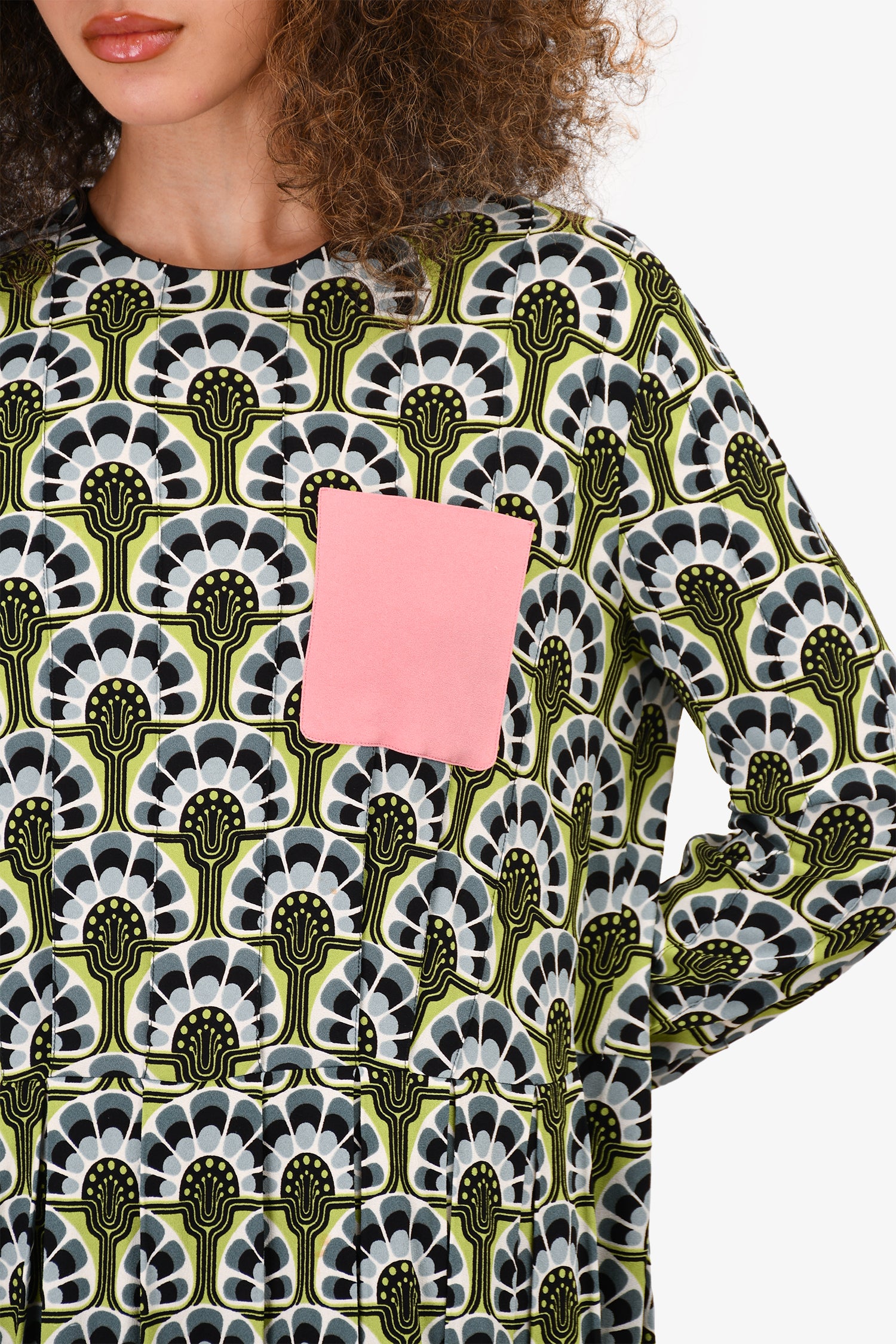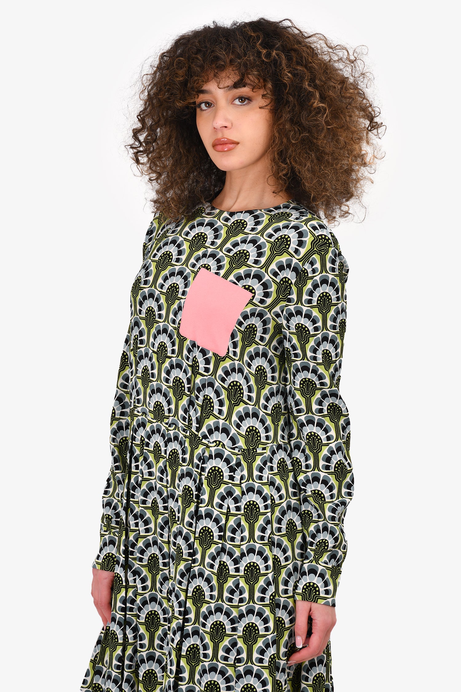 Refresh availabilityMiu Miu Green/Blue Patterned Dress. Round neck. Rear zip closure. Single front chest pocket.
