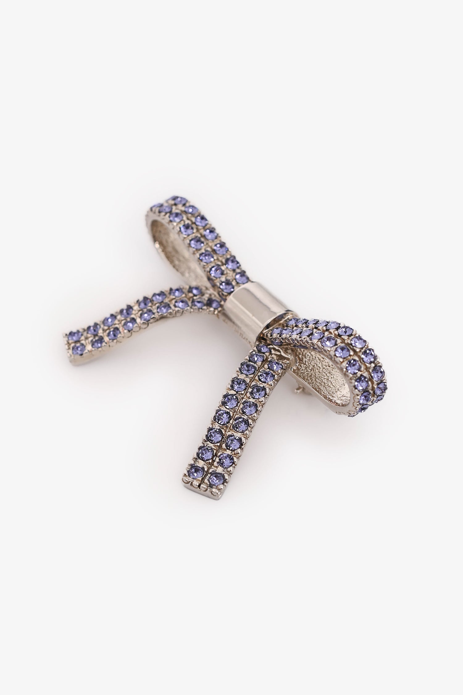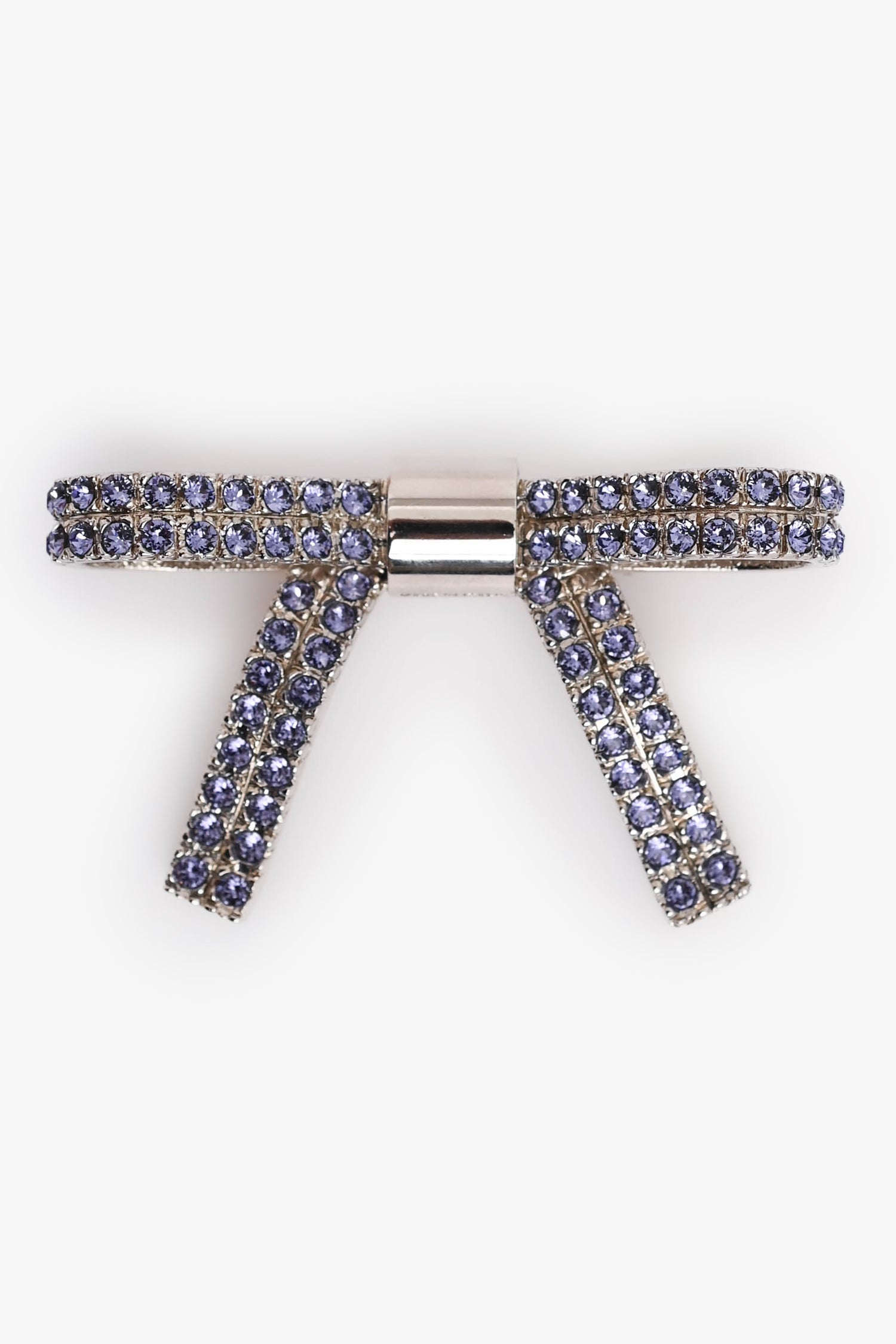 Refresh availabilityMiu Miu Lilac Rhinestone Ribbon Brooch. Pin closure. Silver-tone hardware.