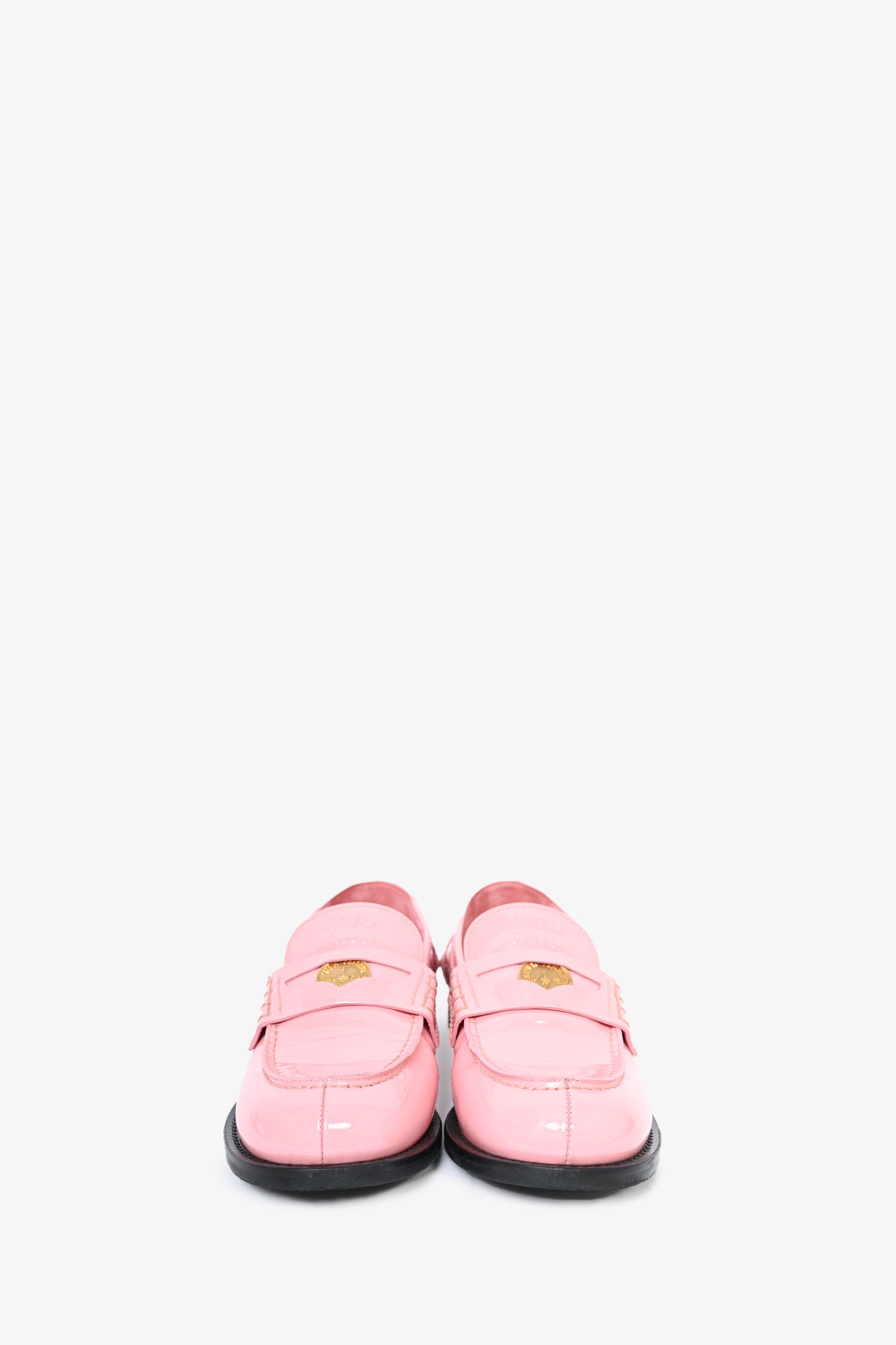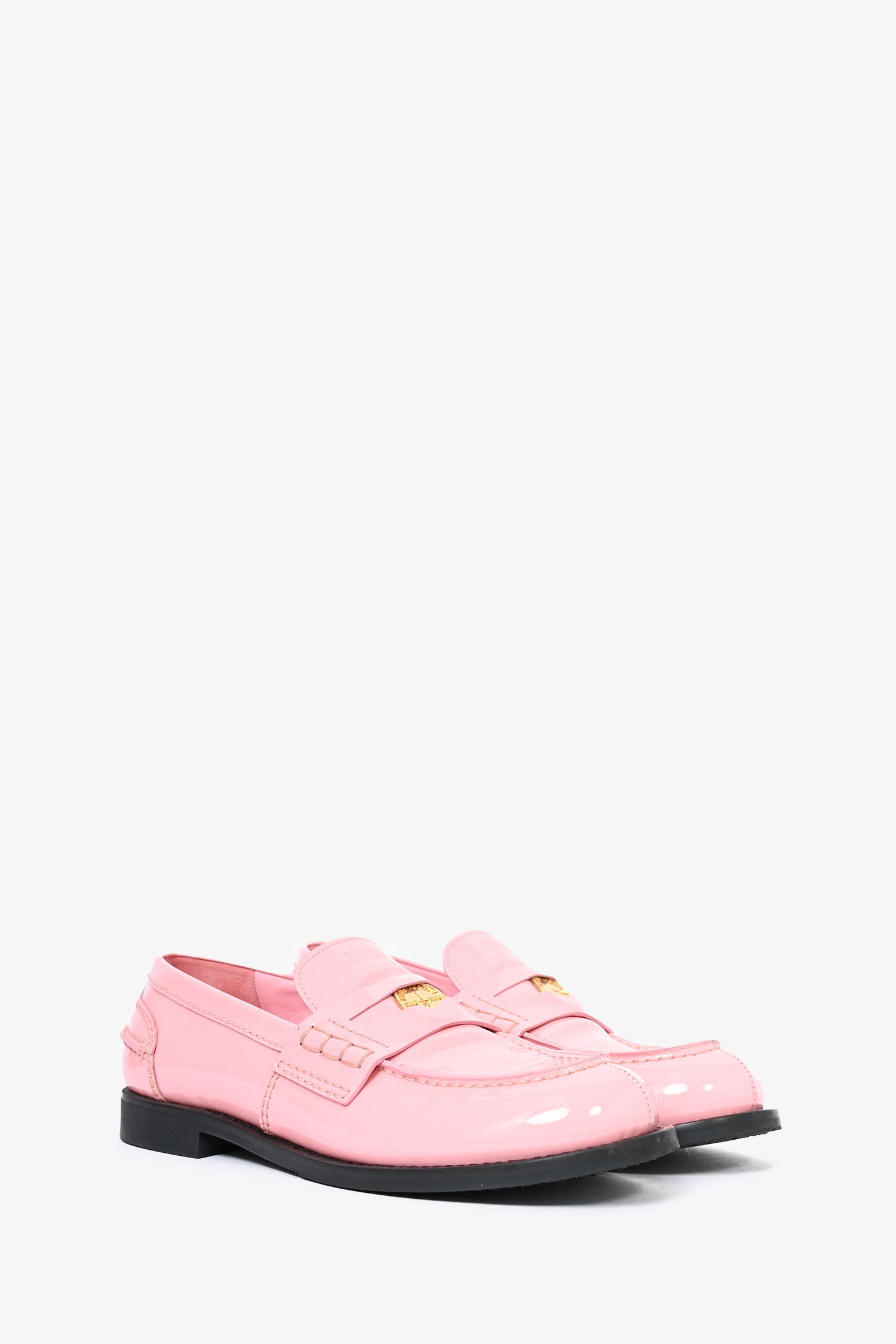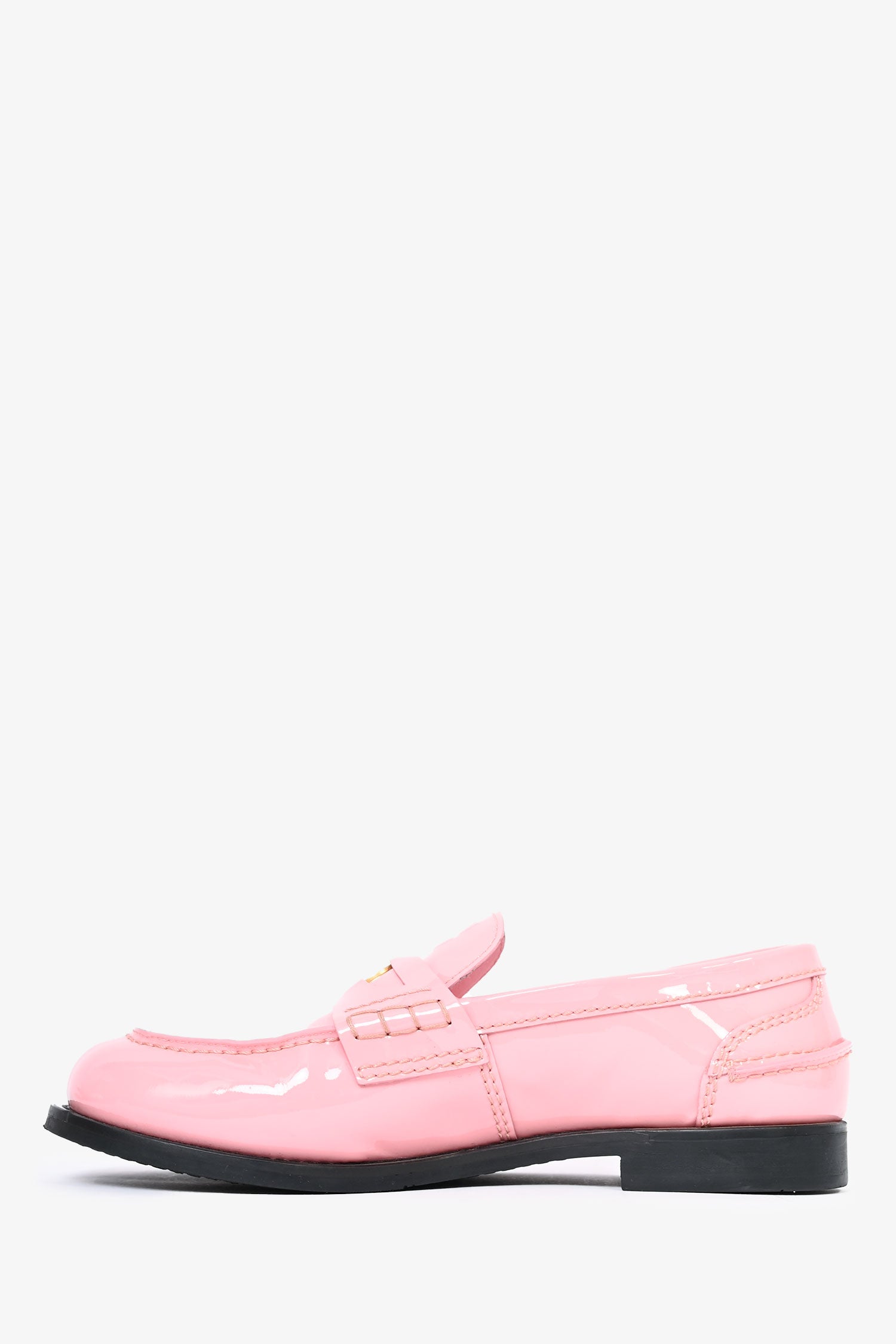 Refresh availabilityMiu Miu Pink Patent Leather Penny Loafers. Round toe. Slip-on. Glossy finish.