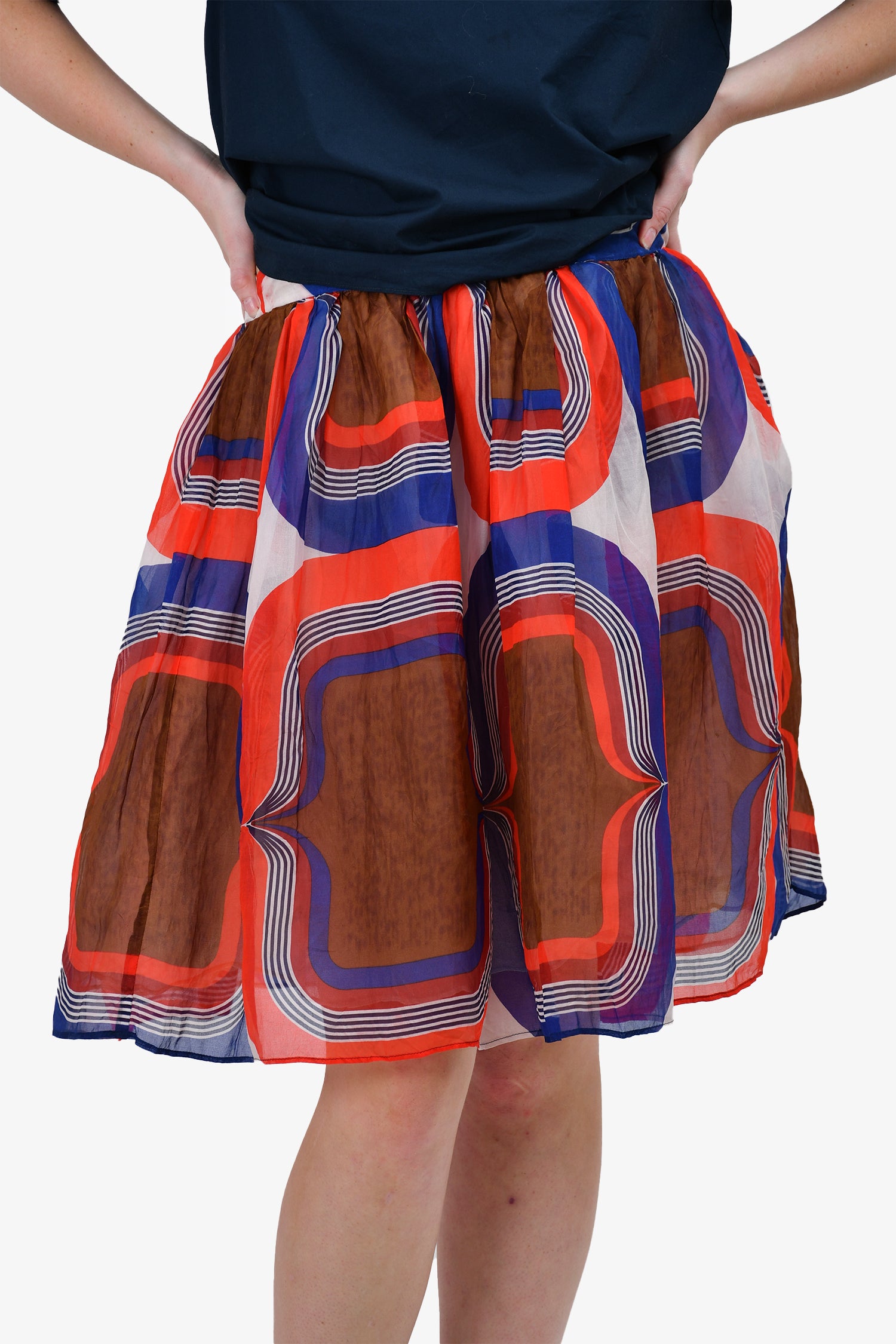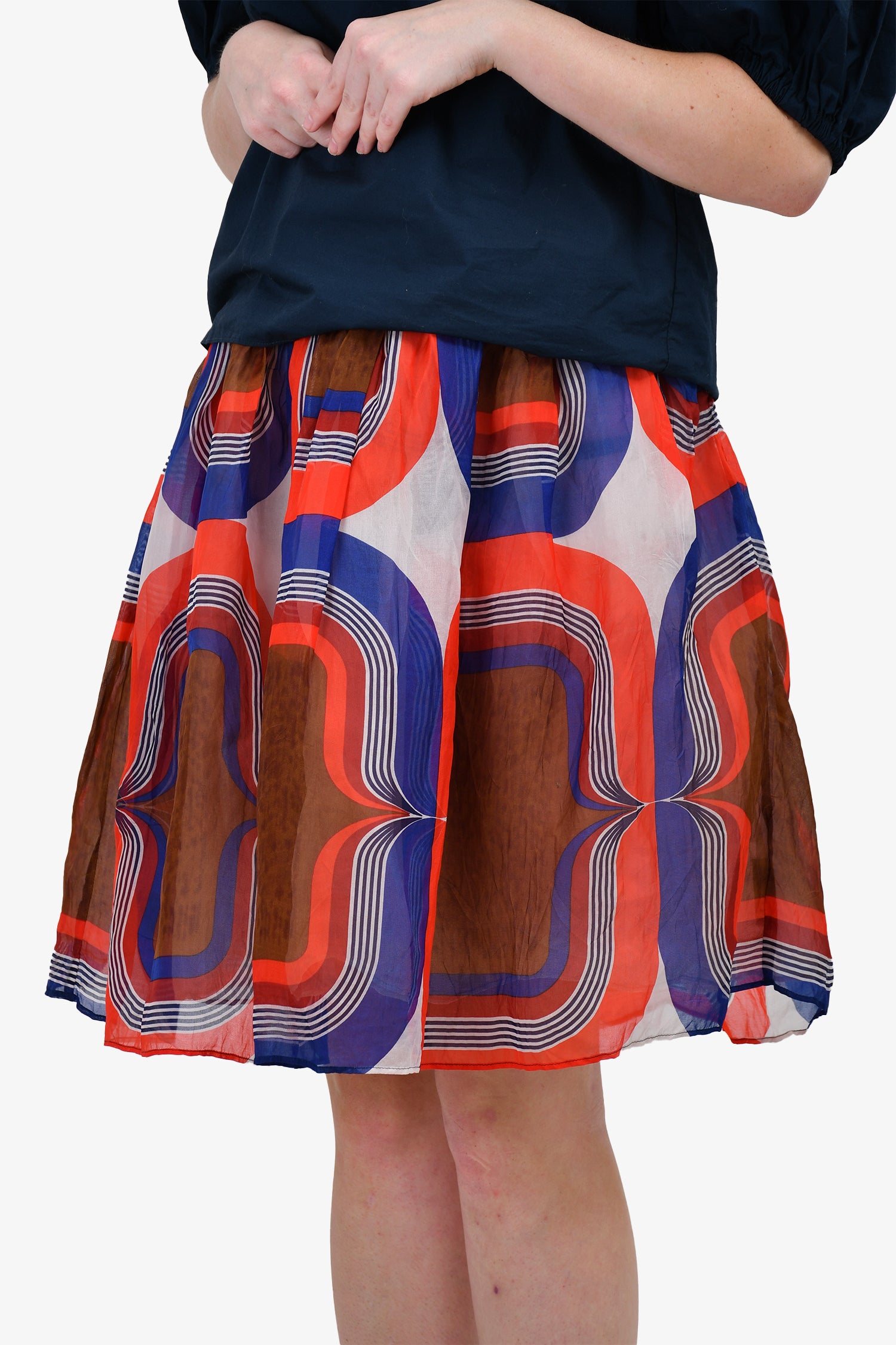 Miu Miu Red/Blue/Brown Silk Patterned Skirt Size 42
