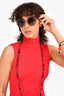 Miu Miu Silver Tone/Black Acrylic Crystal Embellished Round Sunglasses