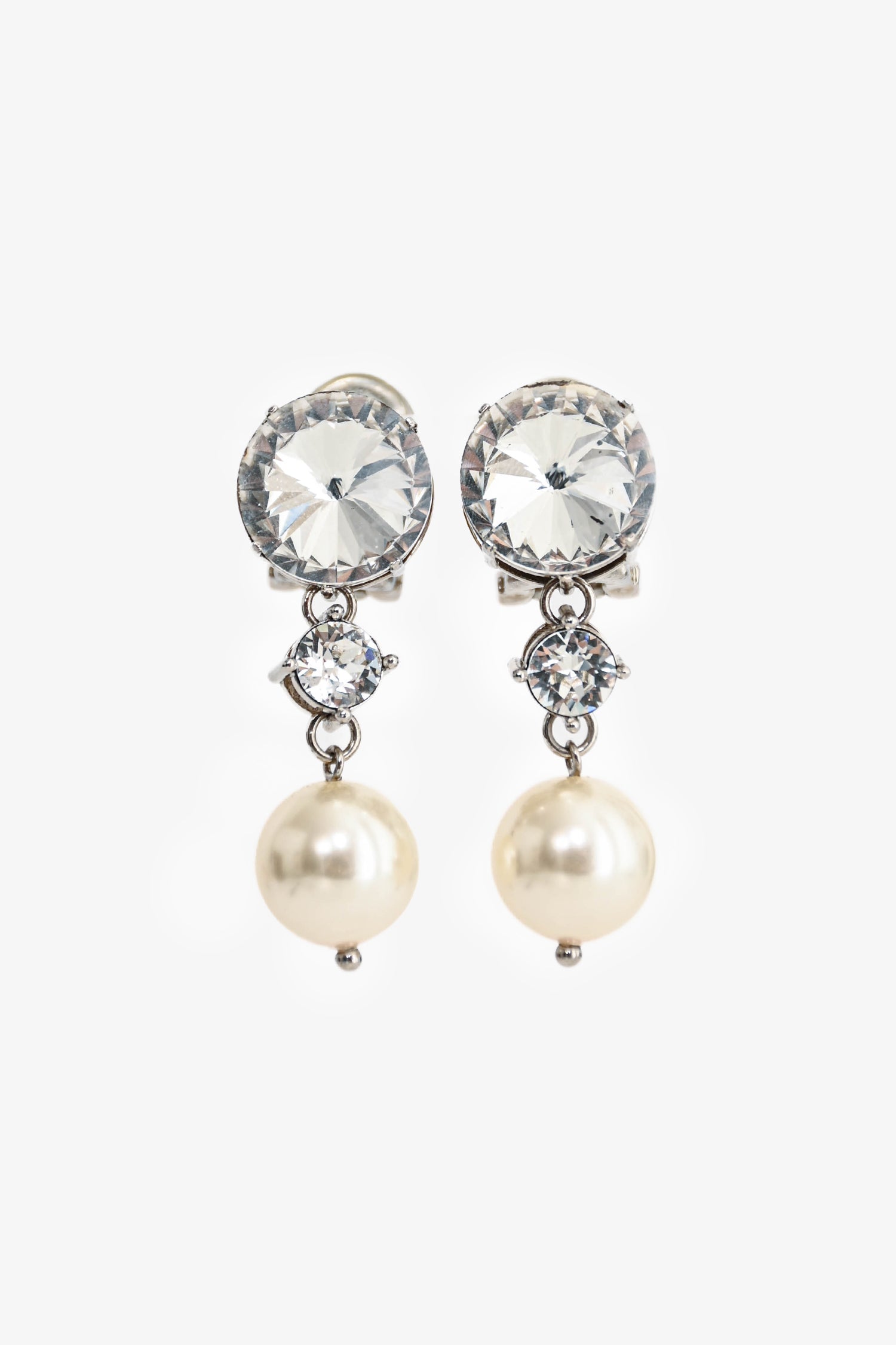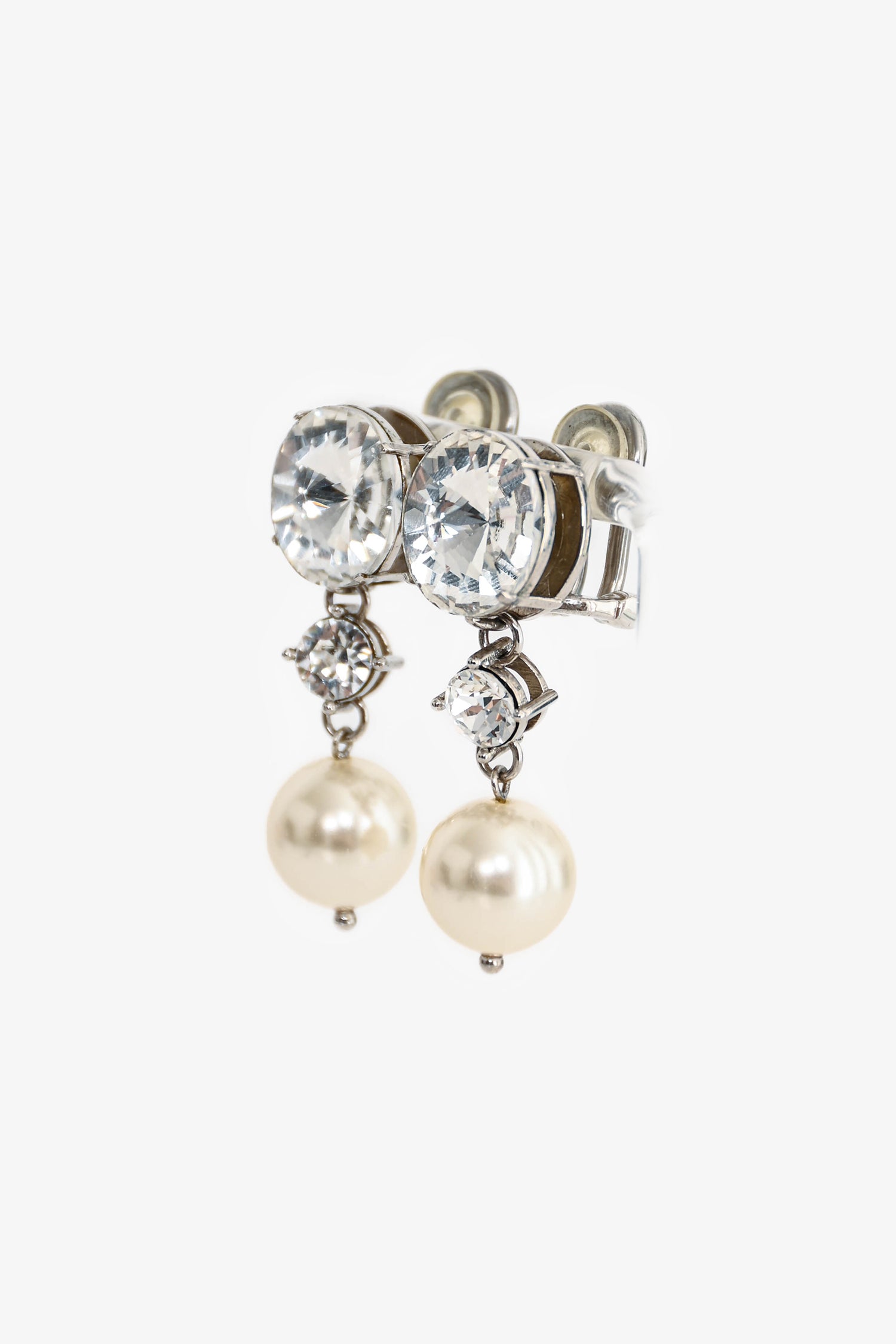 Miu Miu Silver Tone Metal Crystal/Faux Pearl Ear Pendants