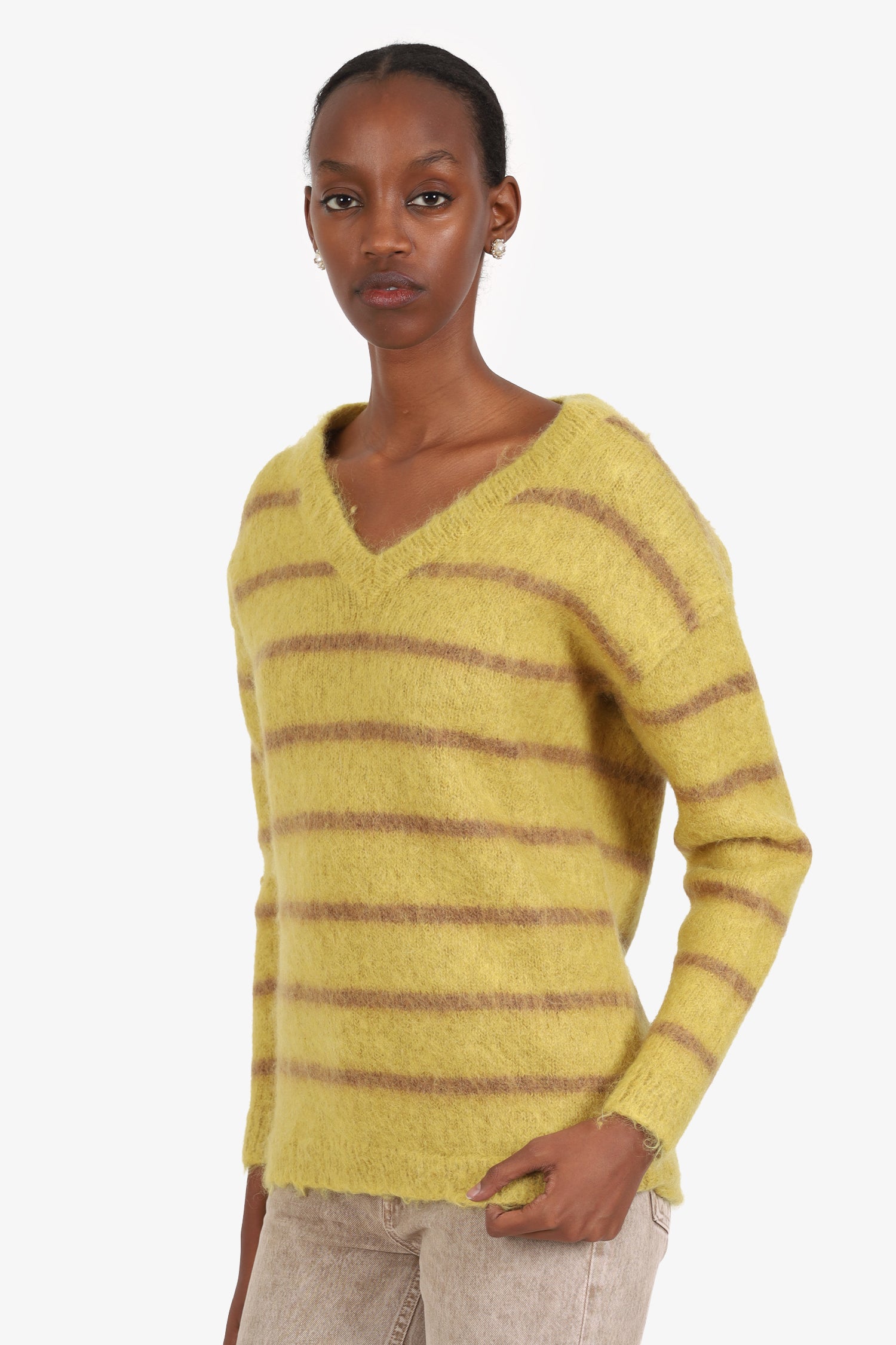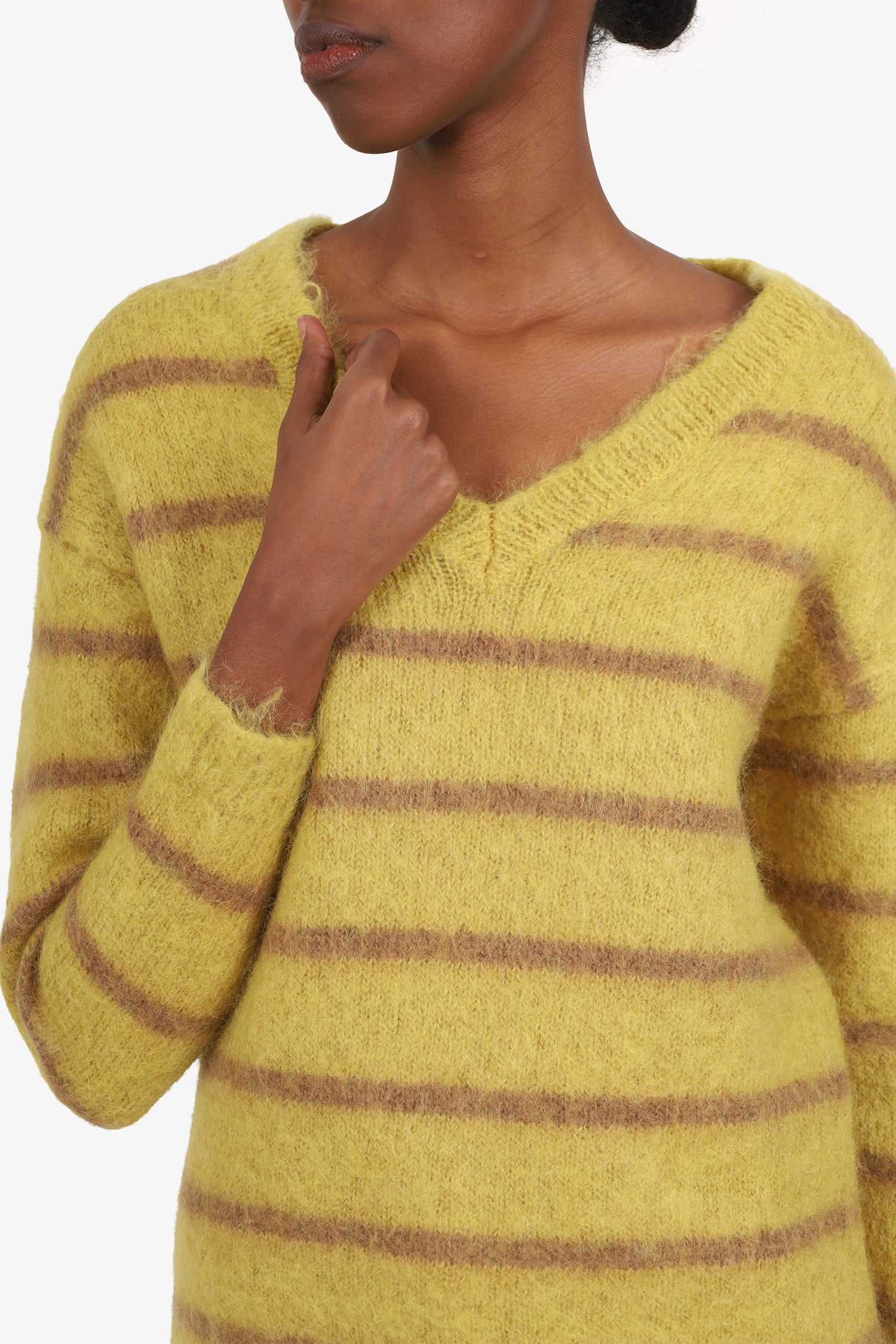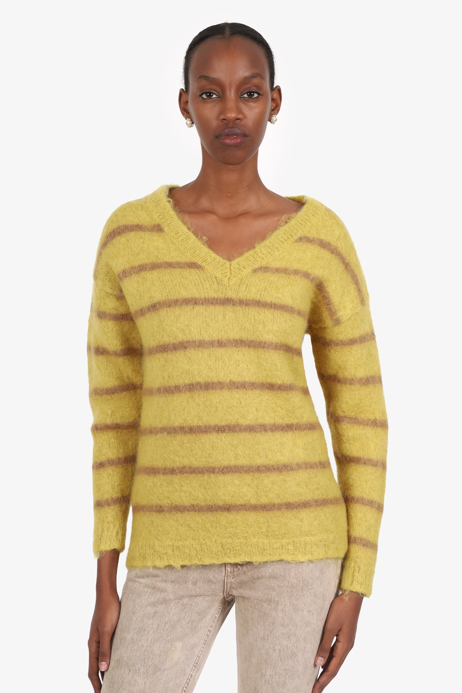Refresh availabilityMiu Miu Yellow Mohair Sweater. Pull-on. V-neckline. Tonal stitching.